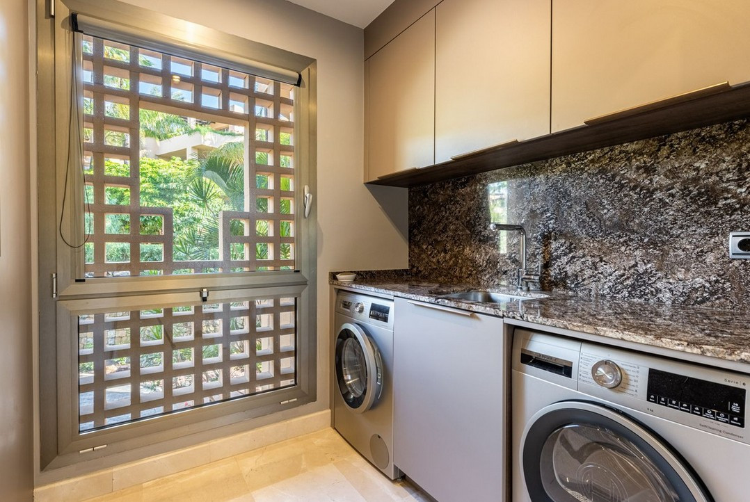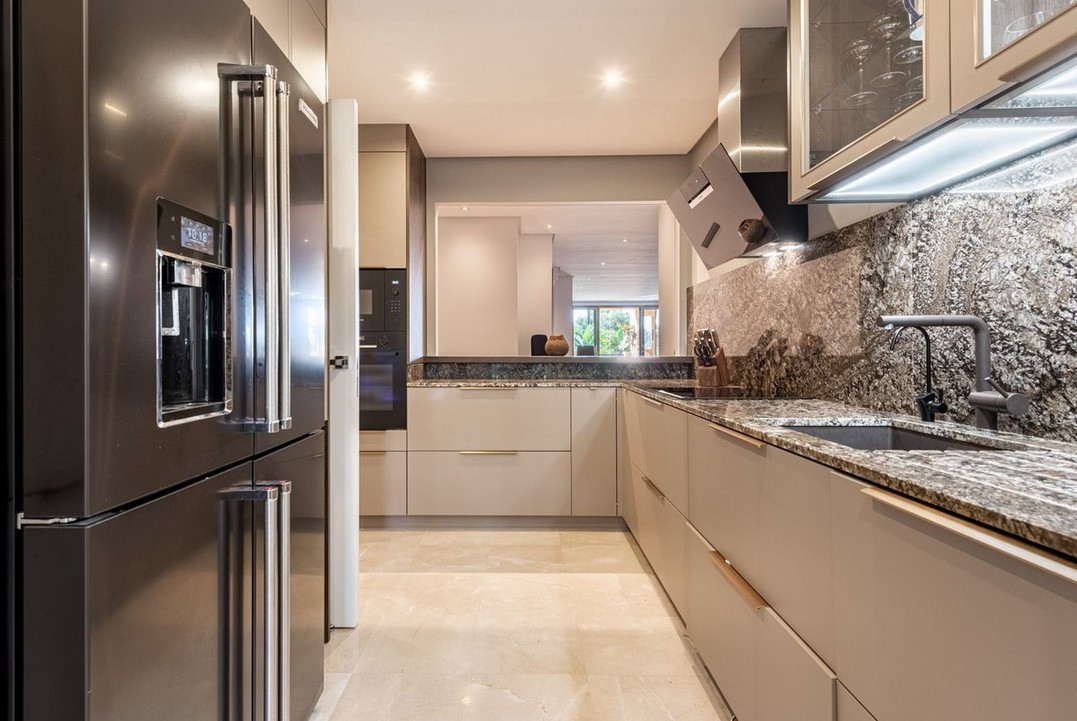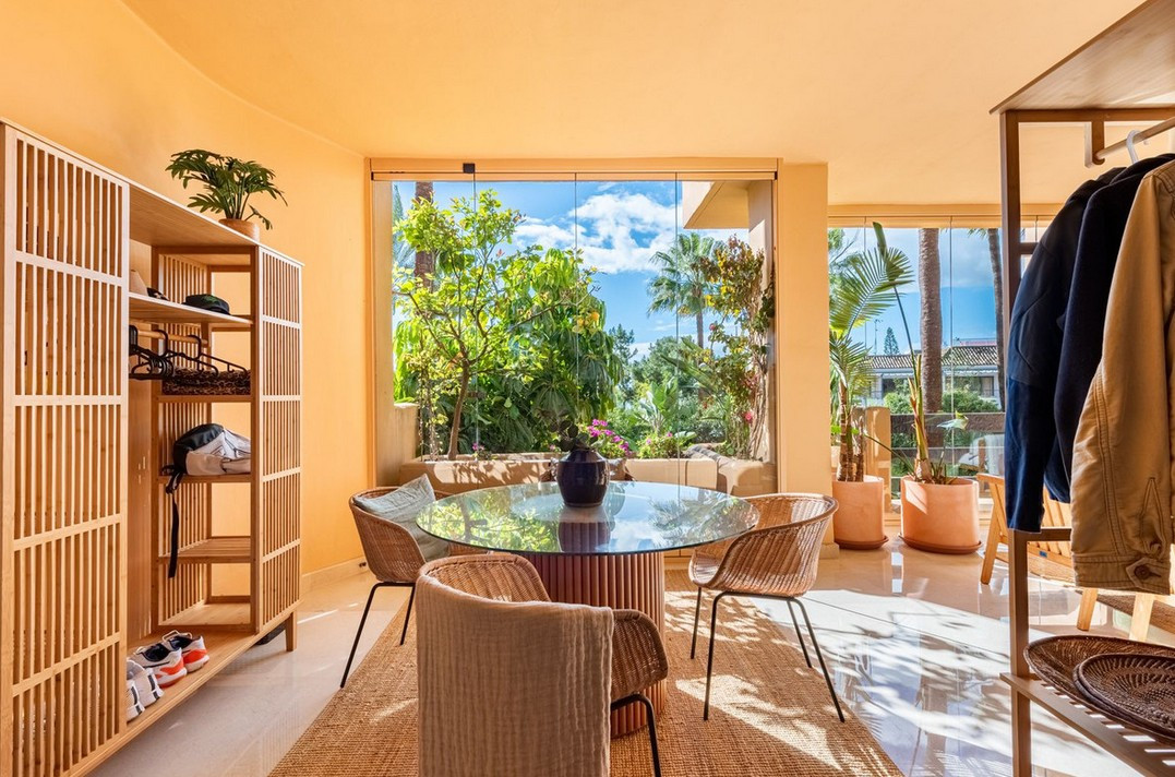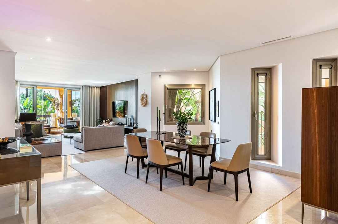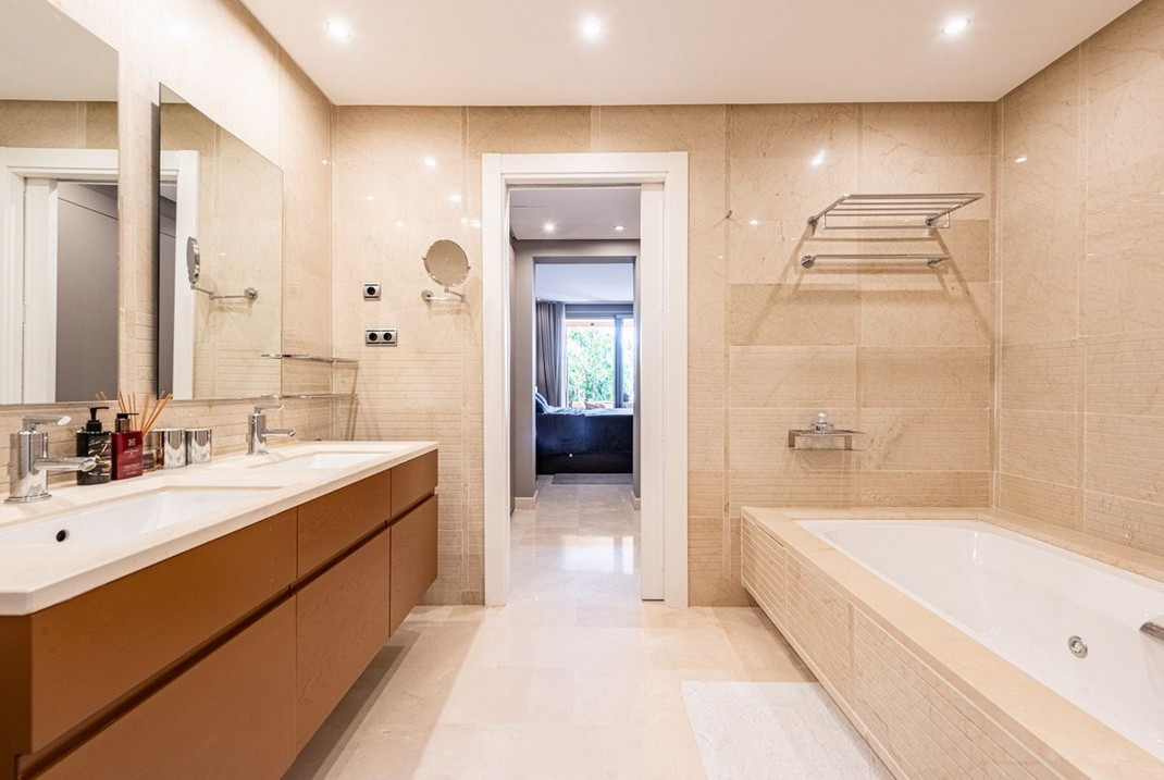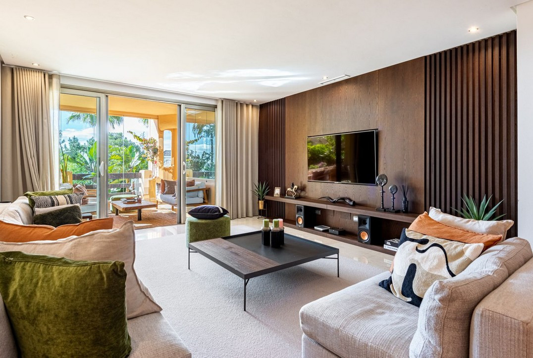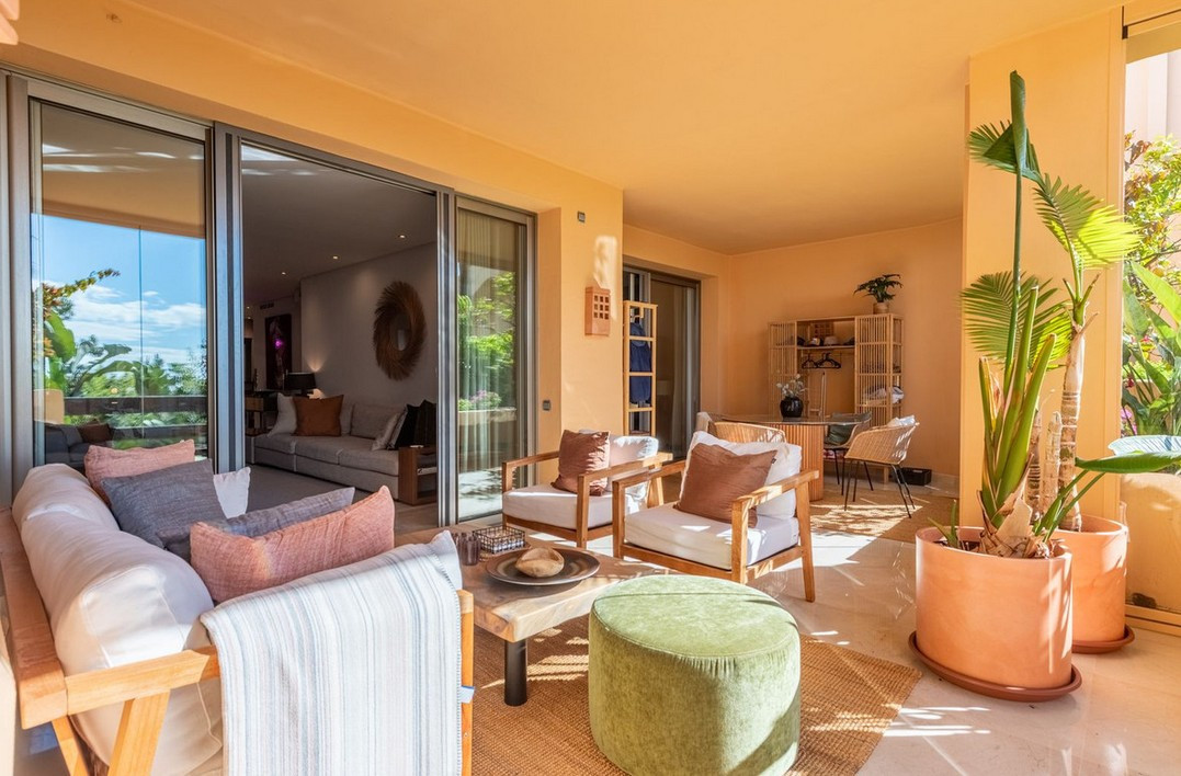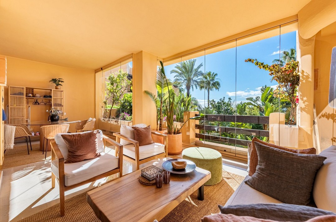 Wohnung, Mansion Club – This beautifully renovated first-floor apartment offers an exceptional lifestyle in one of Marbella’s most coveted locations. Set along the renowned Golden Mile, the property combines modern luxury with partial sea views, lush gardens, and a serene atmosphere, placing you in the heart of the Costa del Sol’s most desirable area. The apartment features a sleek, contemporary design with a newly installed kitchen, custom-built wardrobes, and an advanced air conditioning system for maximum comfort. The open-plan layout includes a welcoming hallway, a spacious living and dining area, a fully equipped kitchen, a master bedroom with an en-suite bathroom, and a guest bedroom with access to a private terrace. Both bedrooms offer ample space and privacy. The property’s 41 m² south-facing terrace is a standout feature, providing a relaxing outdoor space with partial views of the sea and the beautifully landscaped gardens, enclosed with glass for year-round enjoyment. Underfloor heating ensures that the apartment remains cozy during cooler months. Sold fully furnished, this residence also includes a private parking space and a 50 m² storage room, offering plenty of space for additional storage needs. The gated community provides top-notch amenities, including tropical-style swimming pools, an indoor heated pool, a gym, sauna, and a Turkish bath, ensuring residents can fully enjoy their luxurious surroundings. The property is secured with 24/7 surveillance, offering both privacy and peace of mind. Marbella is famous for its luxurious lifestyle, golden beaches, and vibrant social scene. The Golden Mile is home to some of the most exclusive properties, as well as renowned restaurants, five-star hotels, and high-end boutiques, all just minutes from the glamorous Puerto Banús and Marbella’s Old Town.