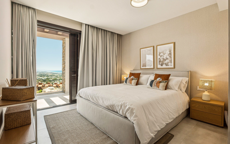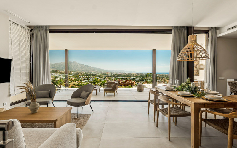 Villa, Be Lagom – We’re in a peaceful residential area, part of a small and secure complex of just 13 villas. It’s quiet, yet only about 11 kilometres from Puerto Banús, close enough to enjoy everything it offers, but far enough to escape the hustle and bustle. As we step inside, you’ll notice the house is laid out across four levels. The main floor is all about open living, a spacious living and dining room flows seamlessly into the modern, open-plan kitchen. From here, wide glass doors lead you straight out to the outdoor living areas, over 100 square metres of both covered and uncovered space, perfect for dining, lounging or entertaining. And of course, there’s the beautiful infinity pool with sweeping views over the Mediterranean. There’s also a guest toilet on this floor for added convenience. Heading upstairs, we find the main sleeping area. There are three bedrooms here, two of them share a bathroom, and all have access to a lovely terrace where you can enjoy the morning sun or relax in the evening. The solarium is ideal for relaxing, sunbathing, or watching the sunset. There’s even space to install a jacuzzi for up to six people, a great feature if you’re thinking about entertaining or just unwinding in privacy. Downstairs in the basement, there’s a lot of flexibility. You’ll find a fully equipped ensuite loft-style bedroom with its own kitchen and living area, perfect for guests, extended family, or even staff. There’s also a storage room, a technical room, and a multi-purpose space you could easily turn this into a gym and spa, a home cinema, games room, or whatever suits your lifestyle best. And to make life even easier, there’s a lift that connects all four floors.