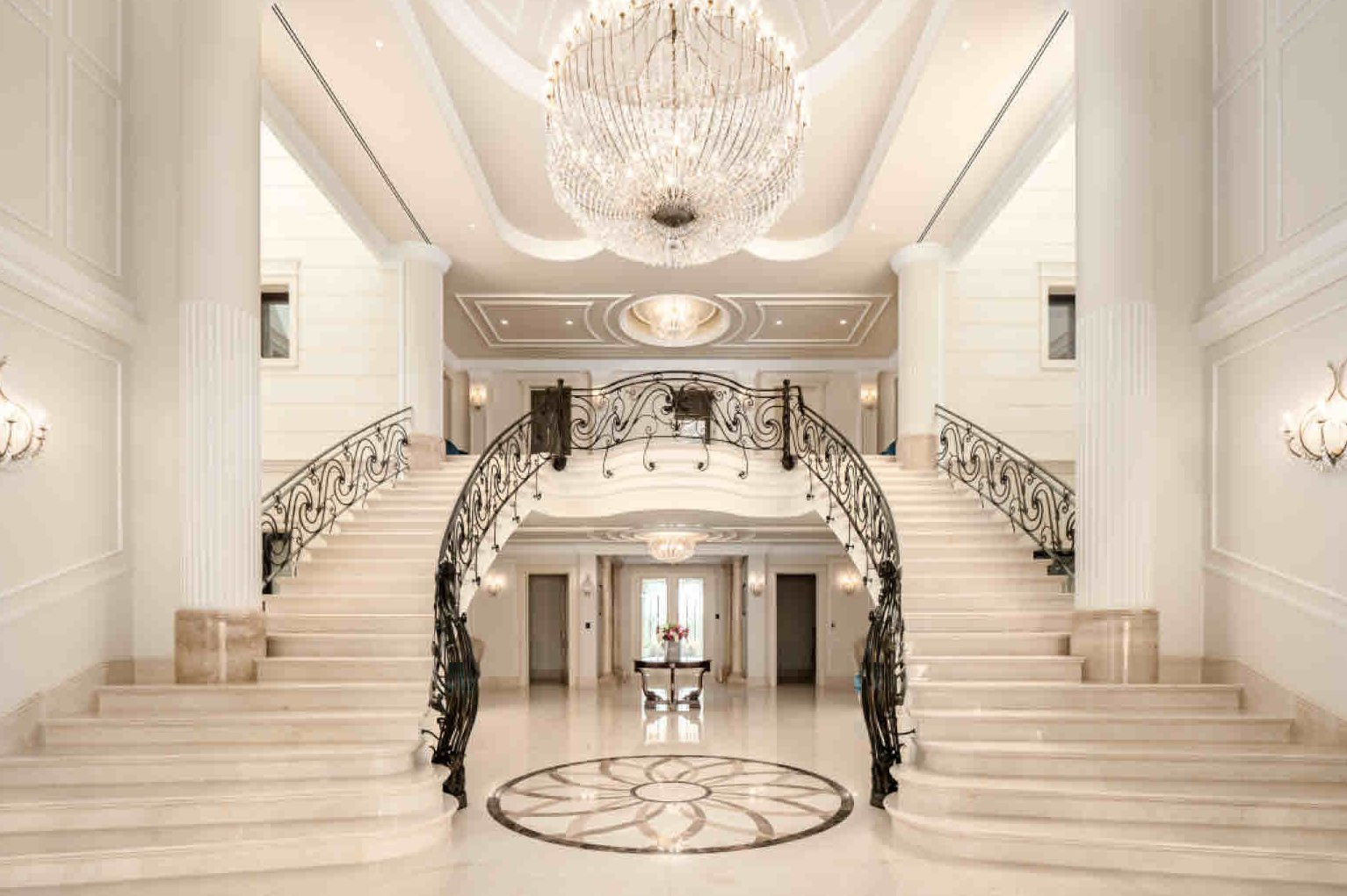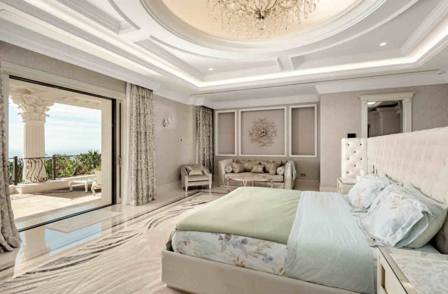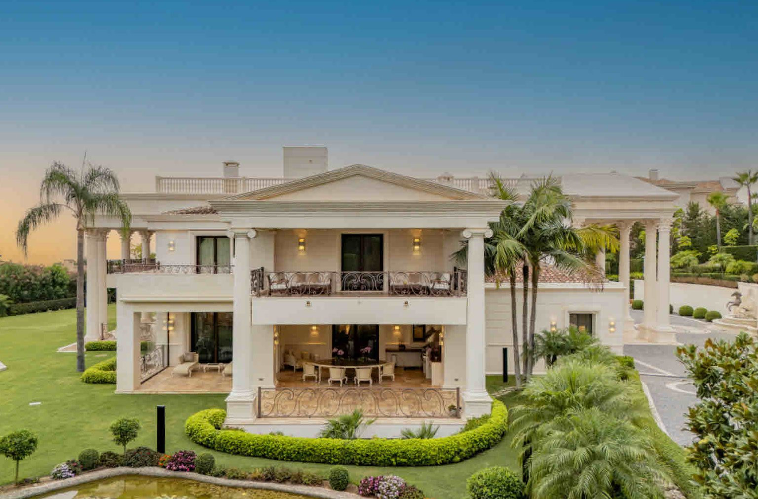 Villa, Sierra Blanca – An exceptional palatial estate currently on the market and an unparalleled investment opportunity located in the prestigious, within Marbella’s renowned Golden Mile. Designed by acclaimed Spanish architect Jesús del Valle Cardenete, this estate won the 2017 Premios Maceal Award for Best International Villa. This luxurious mansion embodies classic style and timeless elegance, situated in one of Marbella’s most coveted areas, the upper part of the famous Golden Mile, with a southern orientation that offers breathtaking views of the Mediterranean Sea and the iconic La Concha Mountain. Set on a spacious, well-distributed plot of 5,850 m², this four-level mansion spans 2,442 m², featuring 10 bedrooms and 13 bathrooms (9 en suite). The grand neoclassical entrance, with Corinthian columns, opens into a magnificent hallway with a sweeping double staircase and elevator access to all floors. The ground floor includes a lounge area with two open fireplaces, a dining room, a main fully fitted kitchen with a central island, a staff kitchen, an office, a storeroom, two guest toilets, a games room with a bar, a TV room, and three guest bedrooms with en suite bathrooms. The living and dining areas extend onto covered terraces (totaling 836 m²) and a large BBQ area, ideal for al fresco dining and entertaining. The beautifully landscaped gardens boast an impressive infinity pool, sunbathing areas, water features, and expansive lawns. The opulent Master suite features ‘his’ and ‘hers’ bathrooms and dressing rooms, a lounge area, and a superb terrace with stunning sea views. Additionally, there are four family bedrooms, each with en-suite bathrooms, dressing rooms, lounge areas, and private terraces. The basement level includes a garage for eight cars, a cinema room with 11 seats, a wine cellar, and a spa area with a heated swimming pool, Jacuzzi, sauna, steam bath, fitness room, massage room, bathroom, and two showers. The staff quarters are also located in the basement, consisting of two separate one-bedroom apartments, a dining area, a laundry room, and the technical house. The architect’s focus on lighting, both direct and indirect, enhances the sense of space, complemented by impressively high ceilings throughout. This high-end mansion, in excellent condition, is equipped with numerous luxurious features, including a Smart Home system, underfloor heating throughout, double-glazing, an alarm system, air conditioning, and fitted wardrobes.