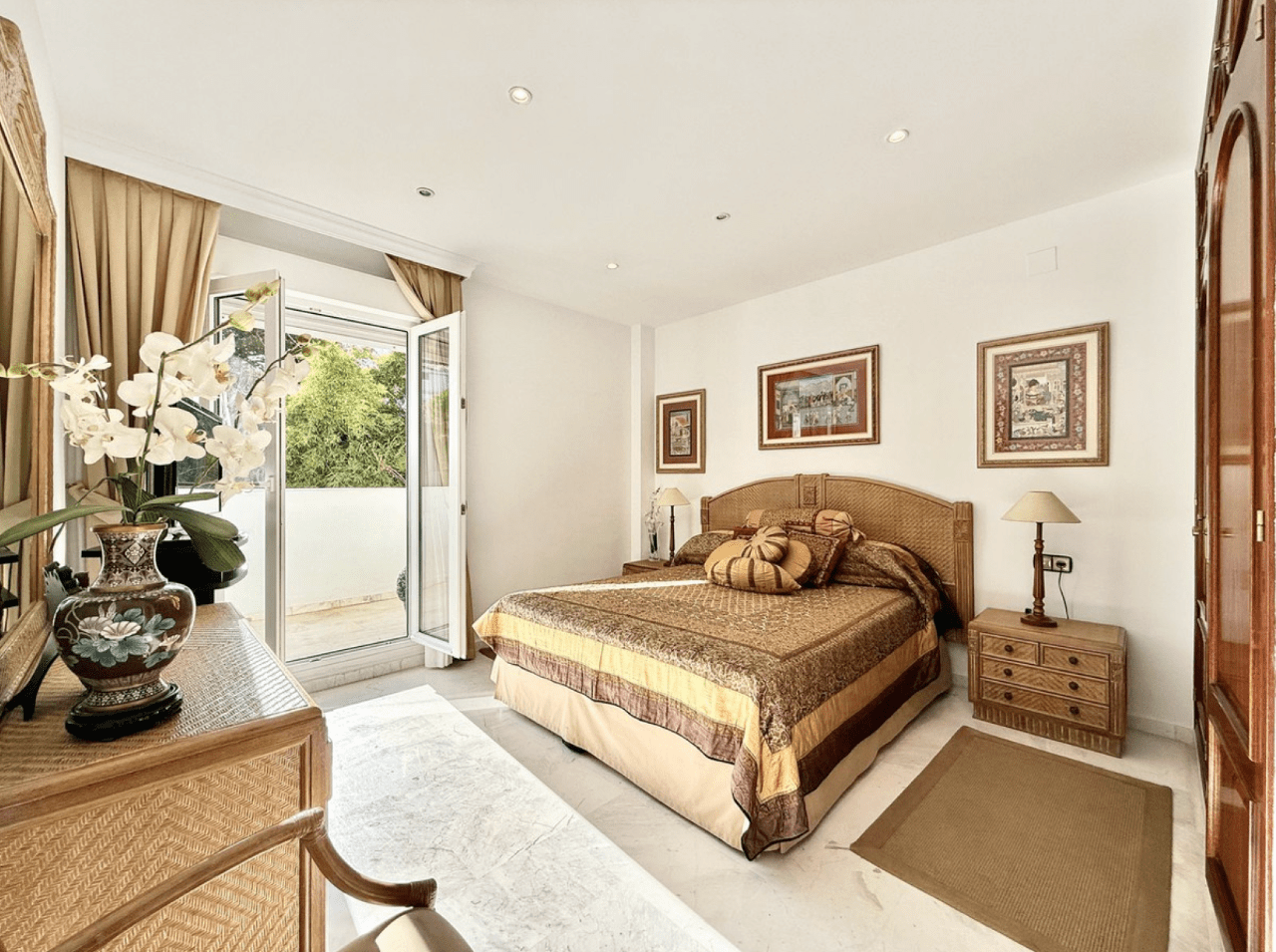 Wohnung, Marbella Real – Sophisticated apartment located on the exclusive Golden Mile, one of the most sought-after areas of Marbella, Malaga. It has a floor area of 165 m² and two private terraces of 30 m². The property has four bedrooms and two full bathrooms, distributed in such a way as to optimise privacy and comfort. Upon entering the property, on the right-hand side is the main living room, which connects directly to the terrace, from which you can enjoy pleasant views of the garden and swimming pool. On the left-hand side is a fully equipped kitchen. At the end of the hallway there is a door separating the living area from the 4 bedrooms, 3 of which have direct access to the side terrace. The property has an underground parking space and a storage room.