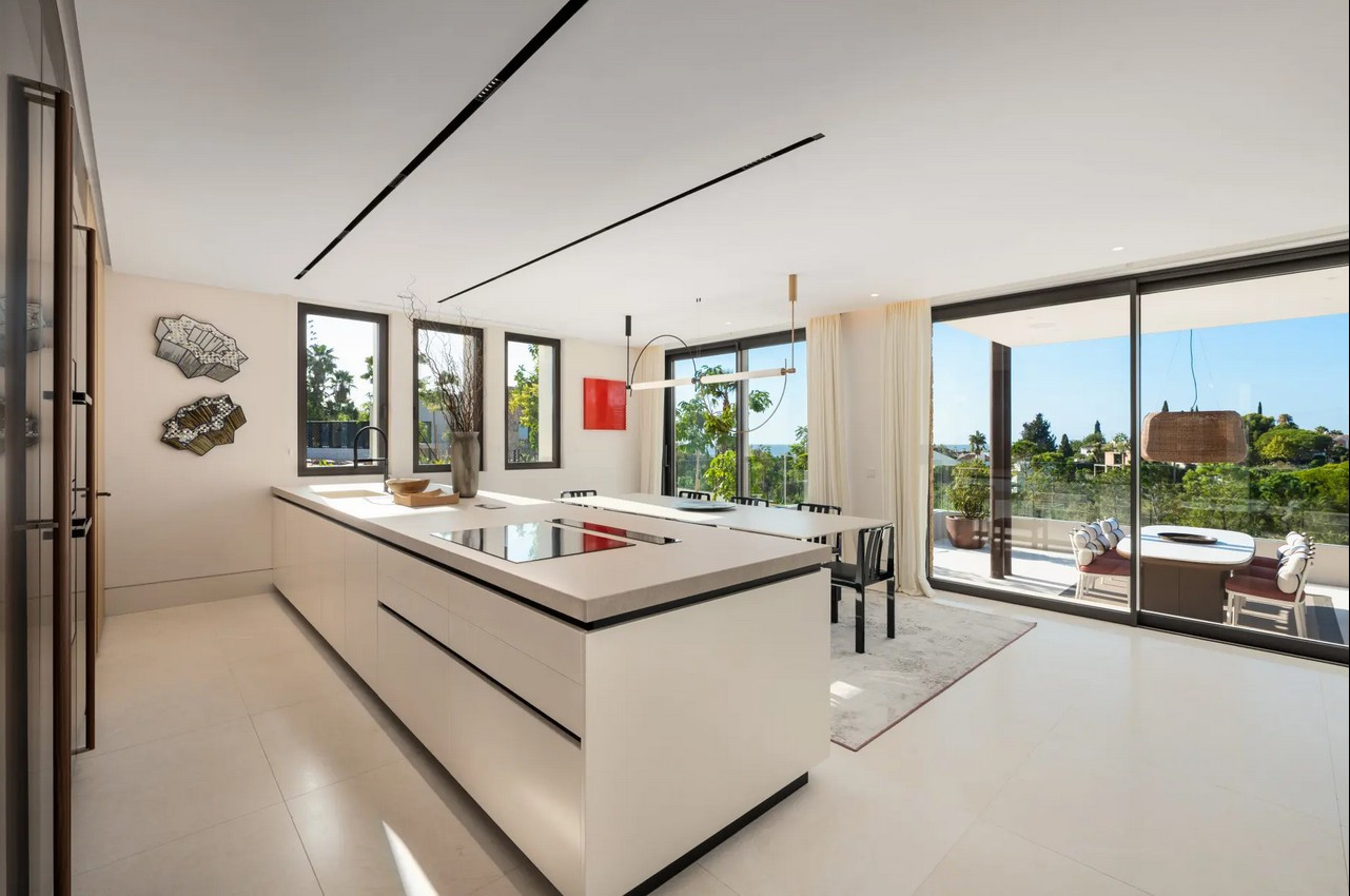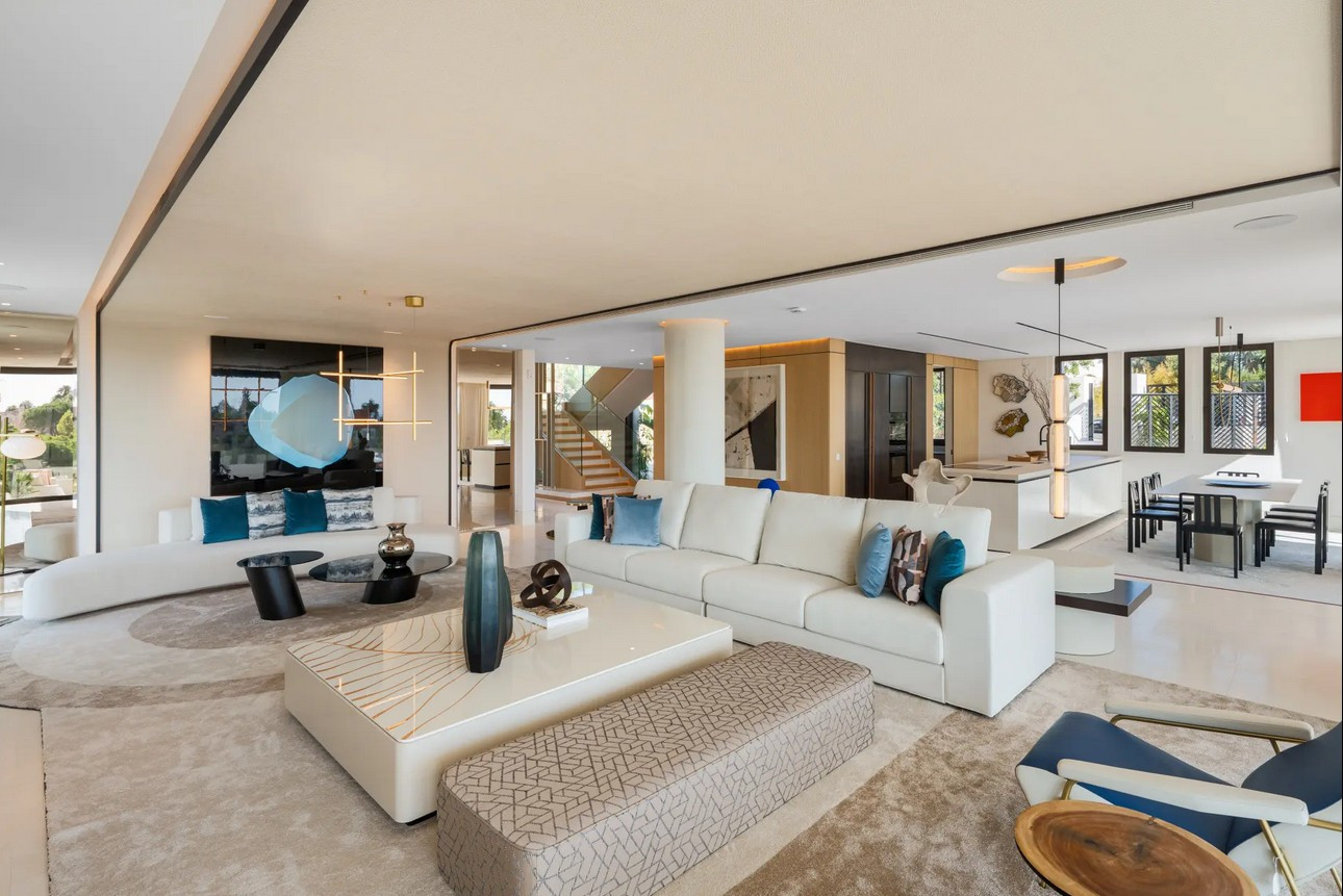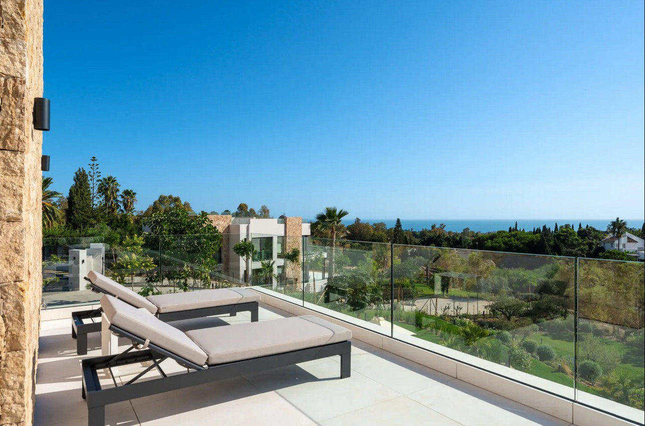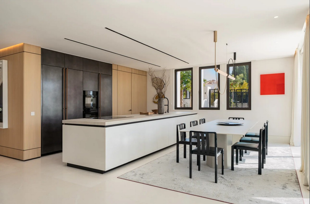 Villa, Marbella Hill Club – Designed by Villaroel and constructed by B Solis, this three-level villa exemplifies modern elegance with precise craftsmanship and refined architectural balance. Set on an expansive plot surrounded by lush landscaping by Esspora, the home captures both privacy and open views, blending natural stone and glass with sleek geometric lines. The lower level is designed for leisure and wellness. It features a fully equipped guest bedroom, laundry area, an entertainment lounge with a bespoke bar, a complete spa with an indoor heated pool and sauna, and a dedicated home gym. This floor also includes a custom machine room by Proinsermant, underscoring the villa’s technical sophistication and attention to operational excellence. On the main level, the open-plan layout connects the living, dining, and kitchen areas seamlessly. The space flows onto a large terrace that overlooks the gardens and pool, ideal for outdoor dining and relaxation. A fully functional dirty kitchen supports the main culinary area, and two guest bedrooms with en-suite bathrooms ensure convenience and comfort for visitors. Every detail reflects the refined interior design concept by Pedro Peña, featuring curated furniture, materials, and textures complemented by exclusive art pieces throughout the home. The upper floor is dedicated to private living, hosting the master suite with a walk-in closet, luxurious bathroom, and direct terrace access with panoramic views. An additional guest suite and a tranquil home office complete this level, all connected by an elevator servicing each floor. Represents an exceptional standard of living—where architectural mastery, design precision, and natural beauty converge in one of Marbella’s most sought-after addresses.