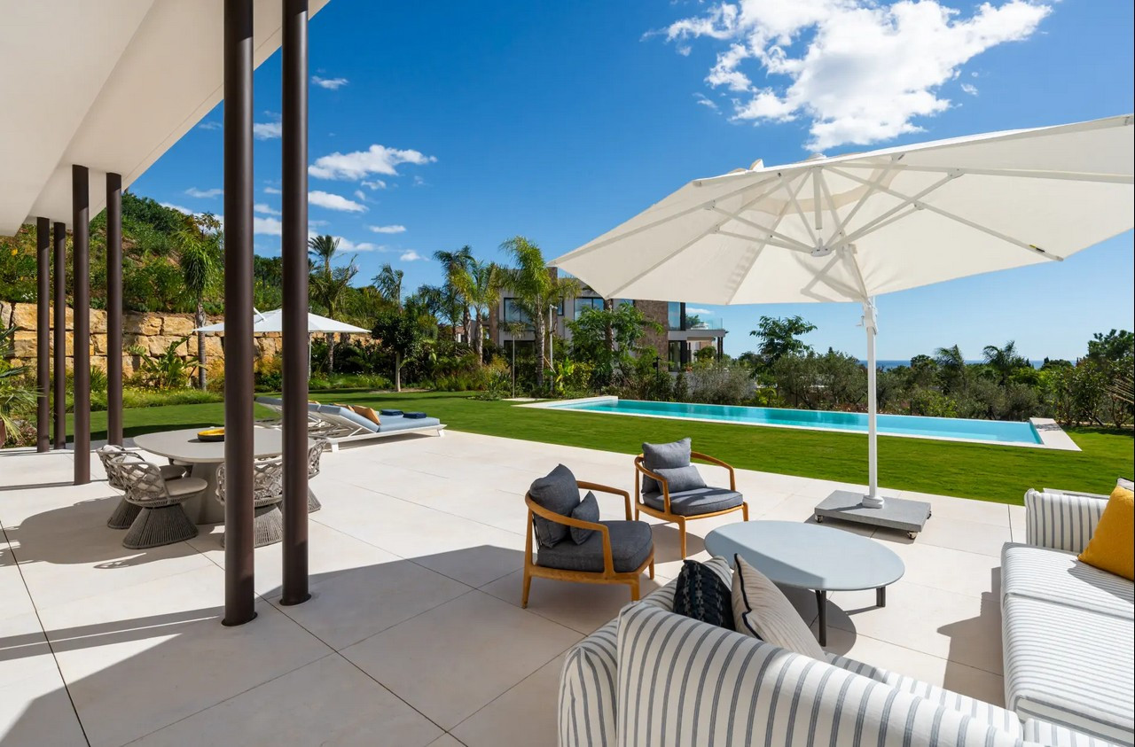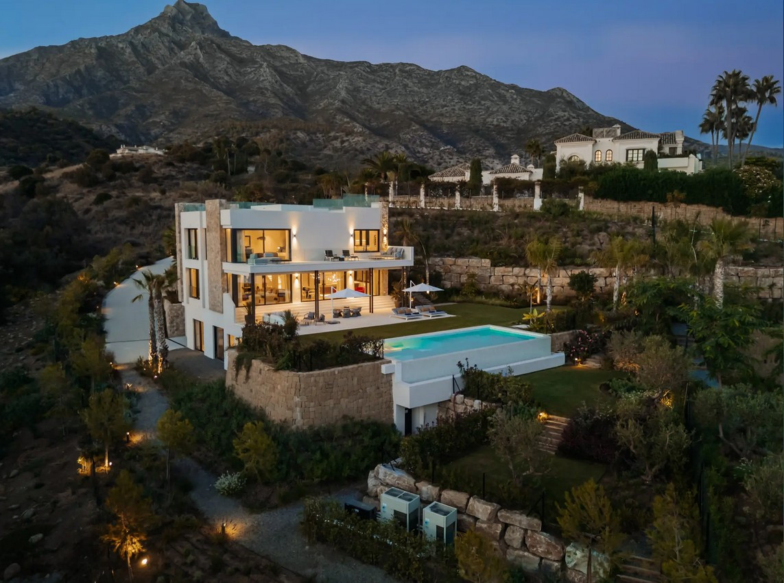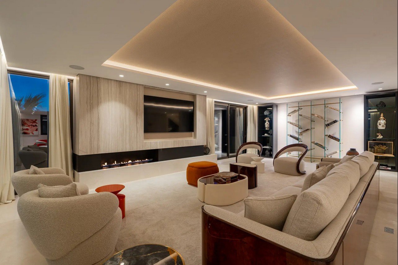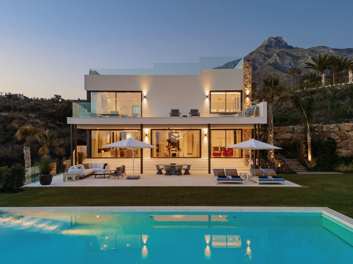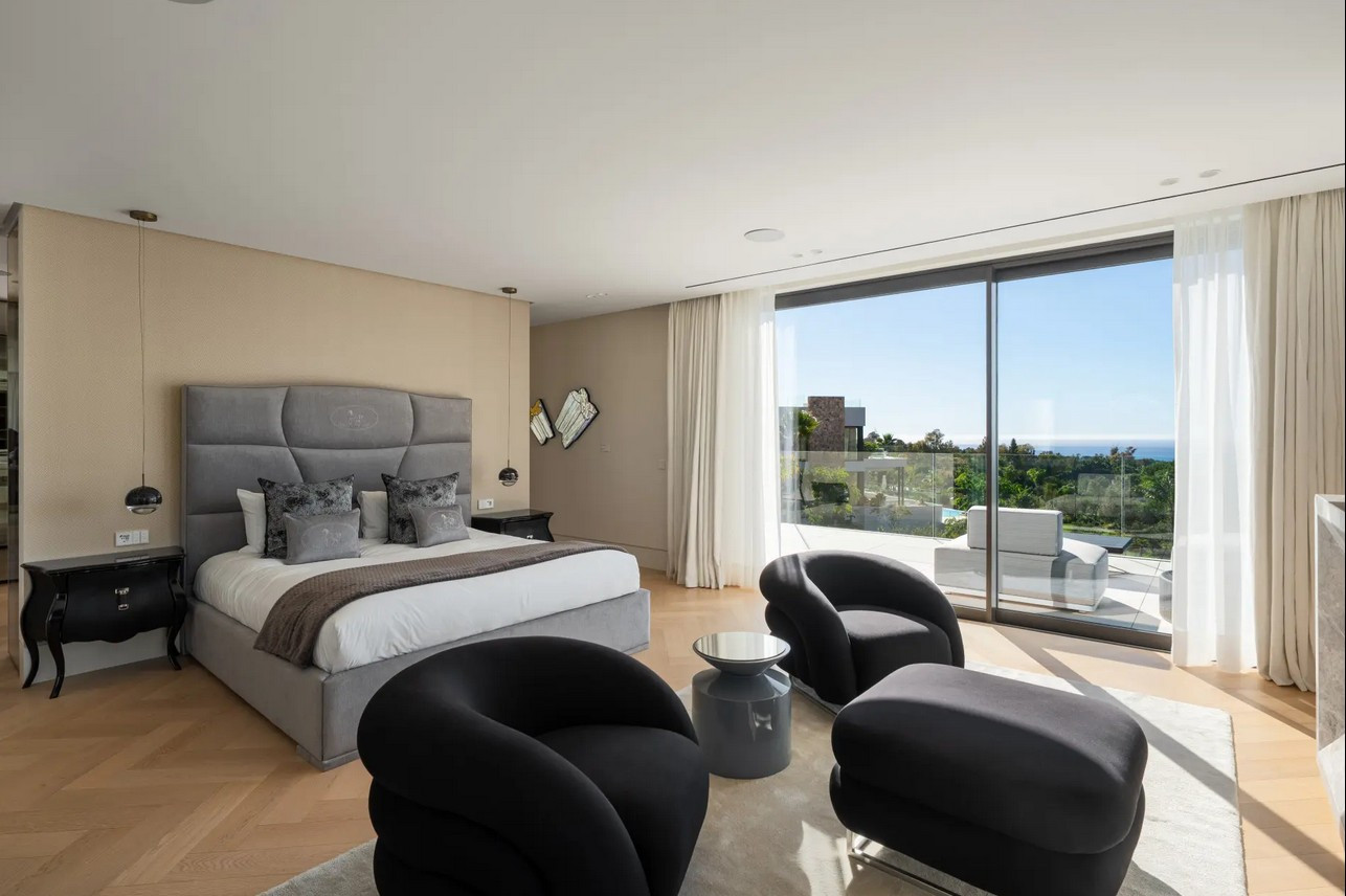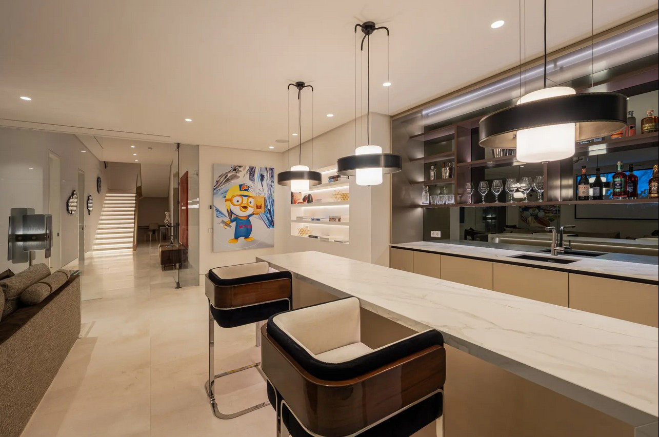 Villa, Marbella Hill Club – The bespoke interiors by Pedro Peña are unique to this property, ensuring that you’ll never want to leave the comfort of your home. The designers opted for a soothing and neutral palette, using natural elements such as wood and marble to create exquisite accents that enhance the feeling of luxury. Attention to detail is evident throughout the property, with the finer accents being a true masterpiece. The open plan living space creates a sense of unity while still maintaining separation. The living area is designed for ultimate comfort, perfect for unwinding. The soothing colour palette creates a sense of tranquillity and elegance. The finer details and artwork pieces complete the space to create a bespoke area unique to you. The kitchen is simple yet practical, inviting all to cook and dine. State of the art appliances and a wine cooler make this a dream kitchen. The bedrooms are equally impressive, featuring the finest materials and decor that provide a luxurious yet comforting safe space. The bathrooms are refined, featuring double vanities, mesmerising showers and stand-alone bathtubs. This astonishing property also boasts a bespoke bar and entertainment room, as well as a home gym, Turkish bath and indoor pool. Sitting on an ample plot, this villa offers plenty of outdoor spaces to enjoy the Mediterranean climate, with a plethora of outdoor seating and a private outdoor pool as well as direct sea views. The property also boasts an impressive solarium equipped with an outdoor kitchenette and much more. Located near the Marbella Golden Mile, this unique piece of real estate is a true gem that offers the perfect combination of luxury and comfort.