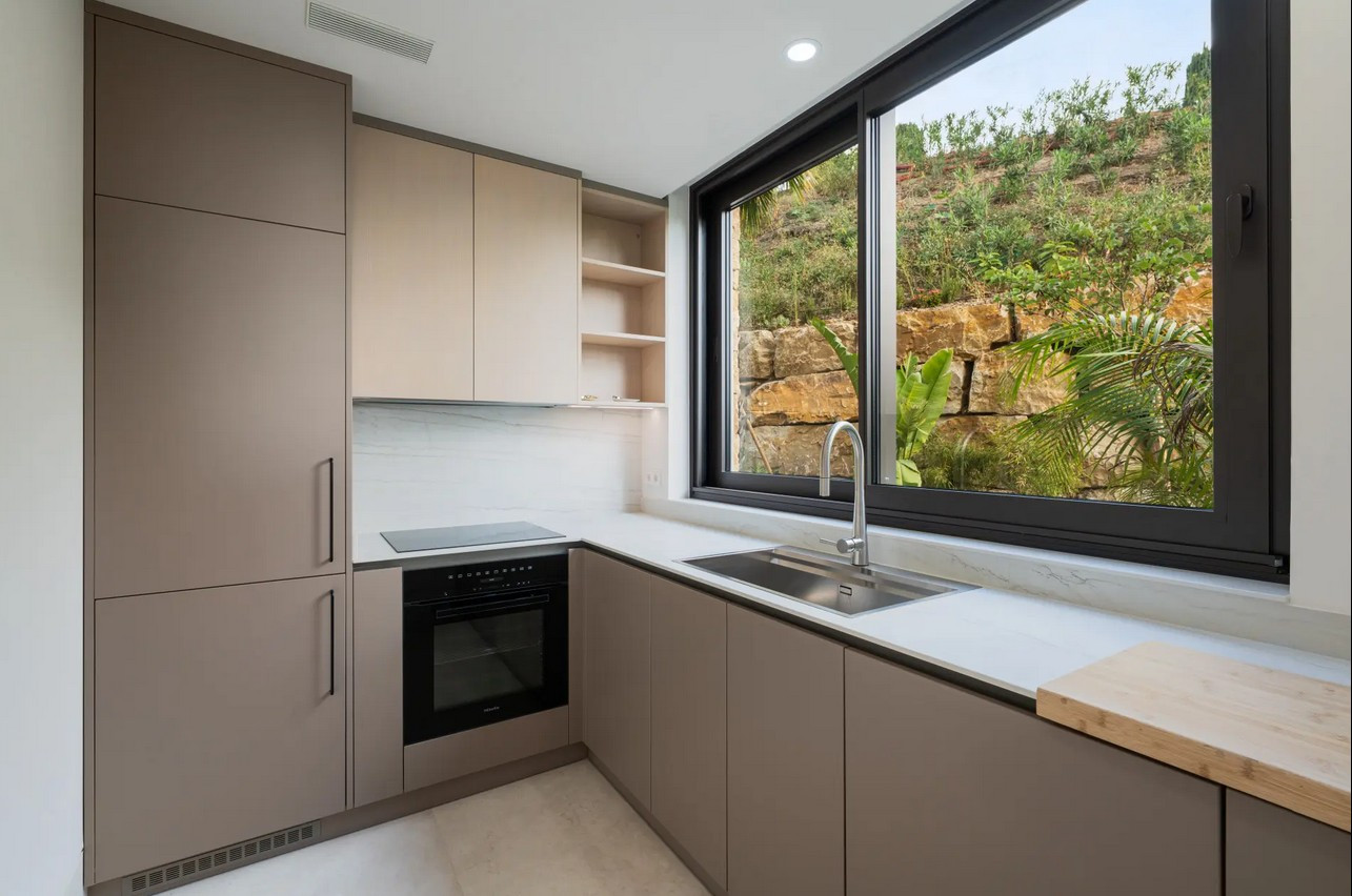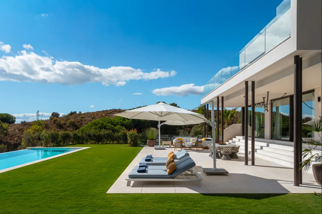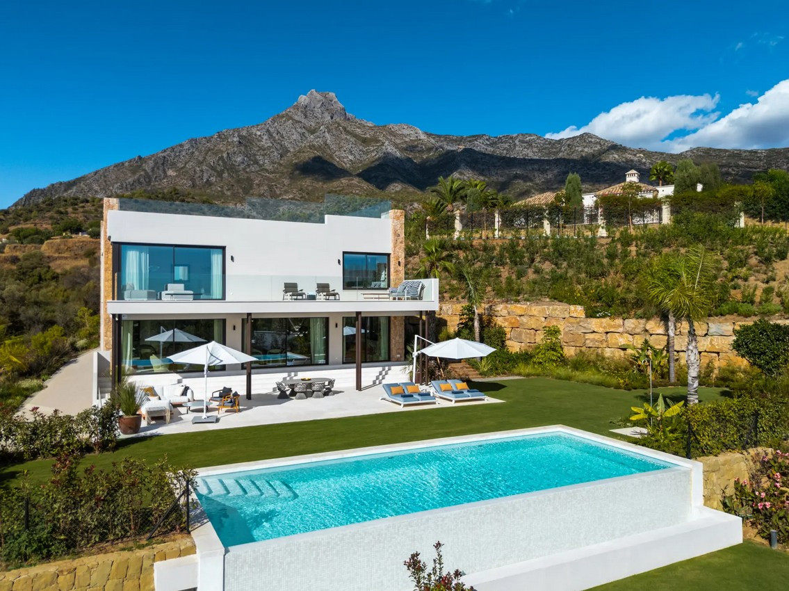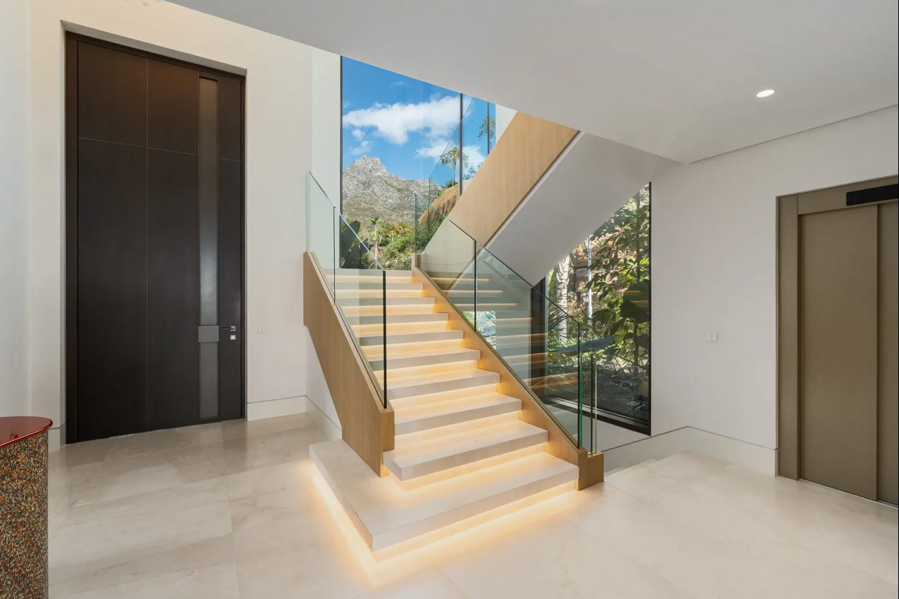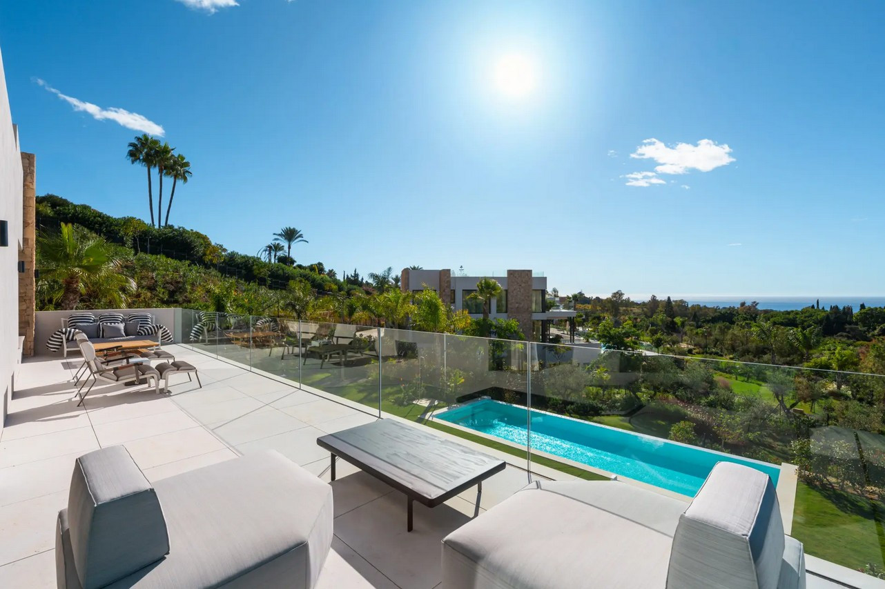 Villa, Marbella Hill Club – The bespoke interiors by Pedro Peña are unique to this property, ensuring that you’ll never want to leave the comfort of your home. The designers opted for a soothing and neutral palette, using natural elements such as wood and marble to create exquisite accents that enhance the feeling of luxury. Attention to detail is evident throughout the property, with the finer accents being a true masterpiece. The open plan living space creates a sense of unity while still maintaining separation. The living area is designed for ultimate comfort, perfect for unwinding. The soothing colour palette creates a sense of tranquillity and elegance. The finer details and artwork pieces complete the space to create a bespoke area unique to you. The kitchen is simple yet practical, inviting all to cook and dine. State of the art appliances and a wine cooler make this a dream kitchen. The bedrooms are equally impressive, featuring the finest materials and decor that provide a luxurious yet comforting safe space. The bathrooms are refined, featuring double vanities, mesmerising showers and stand-alone bathtubs. This astonishing property also boasts a bespoke bar and entertainment room, as well as a home gym, Turkish bath and indoor pool. Sitting on an ample plot, this villa offers plenty of outdoor spaces to enjoy the Mediterranean climate, with a plethora of outdoor seating and a private outdoor pool as well as direct sea views. The property also boasts an impressive solarium equipped with an outdoor kitchenette and much more. Located near the Marbella Golden Mile, this unique piece of real estate is a true gem that offers the perfect combination of luxury and comfort.