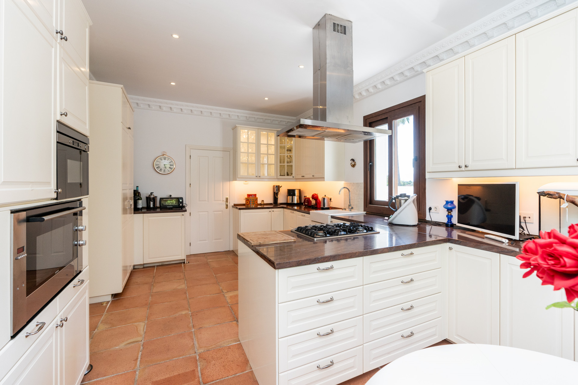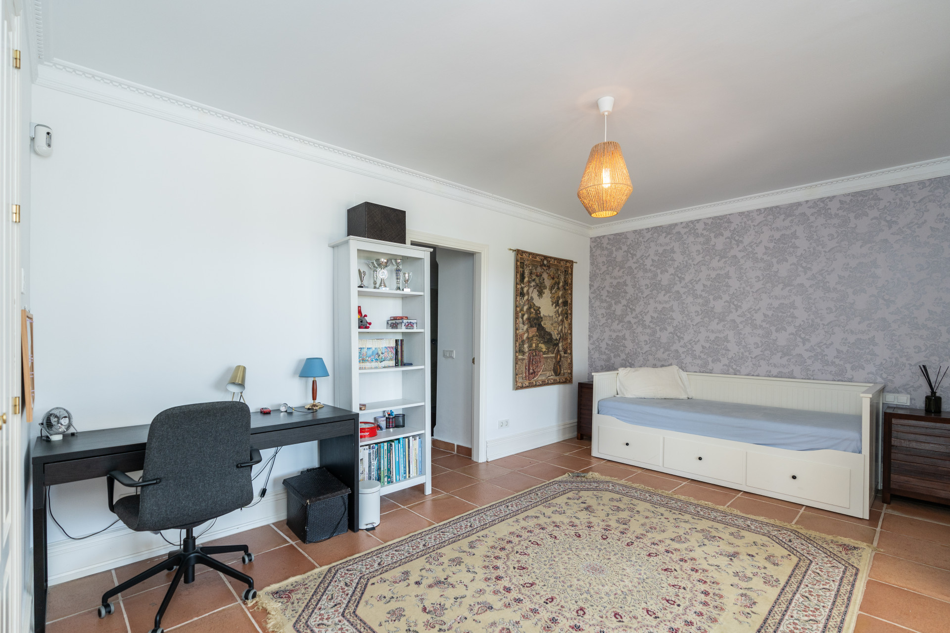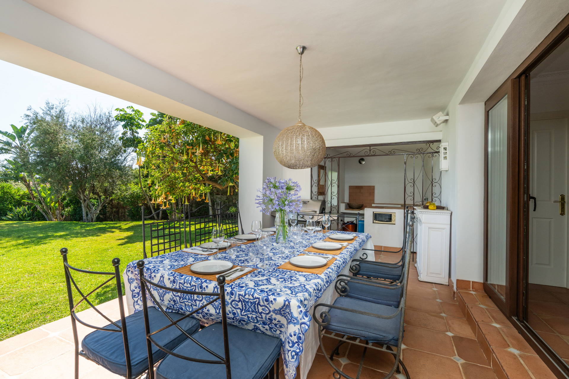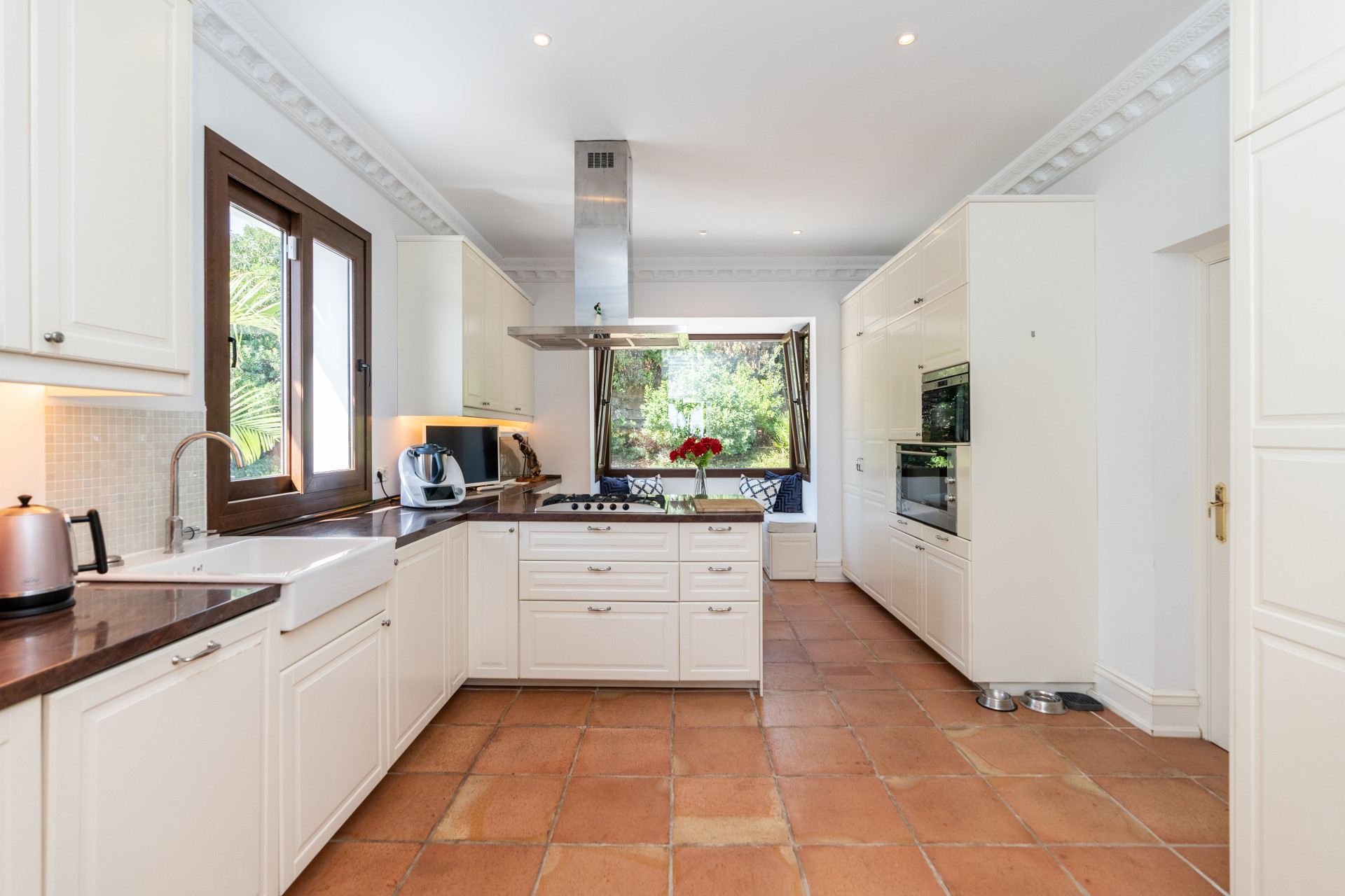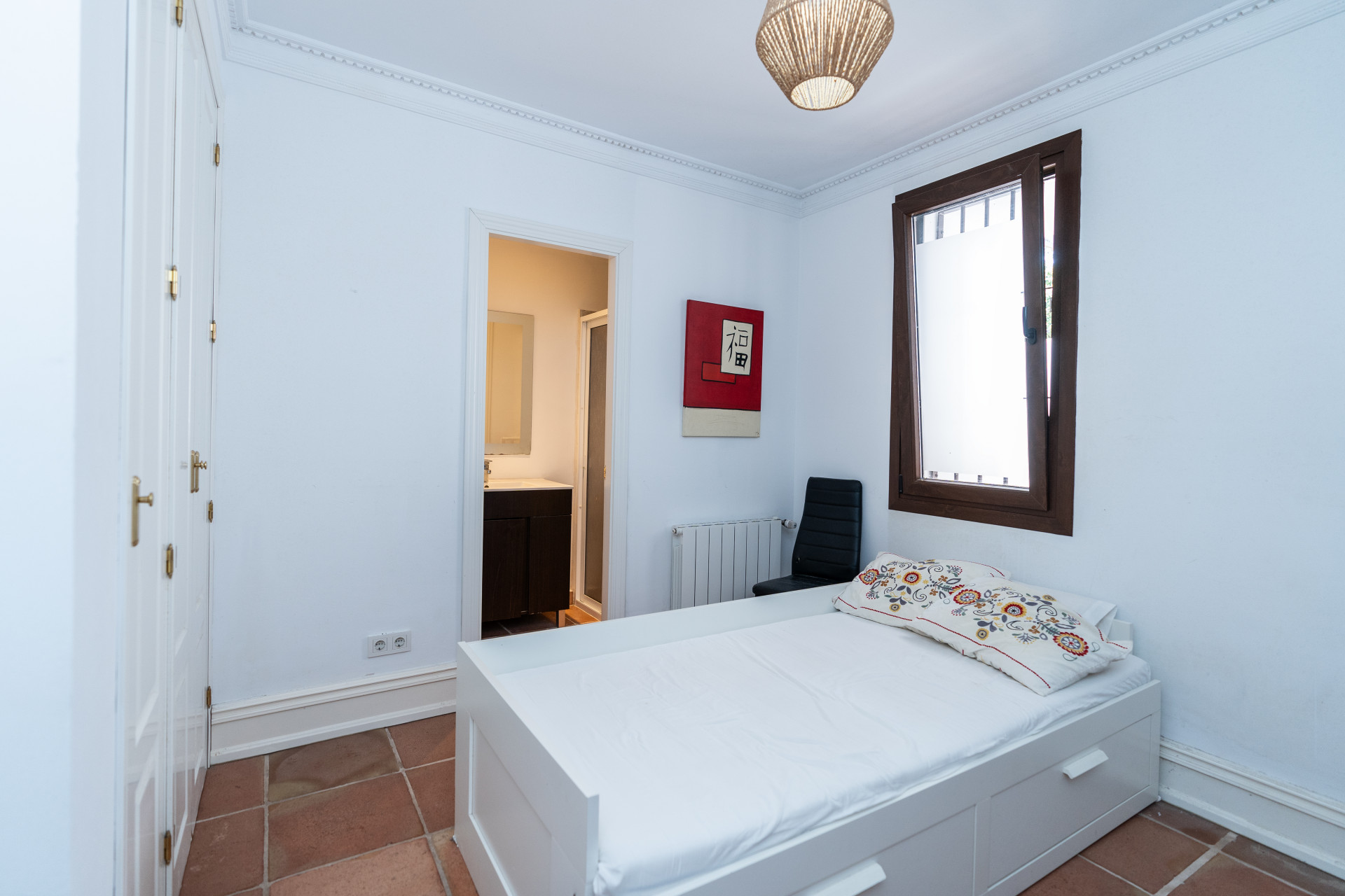 Villa, Nagüeles – Villa very close to Marbella centre with panoramic sea views for sale. Located in one of Marbella’s most privileged residential areas, just a few steps from the centre, this unique villa perfectly combines rustic Andalusian character with contemporary comfort. Combining tranquillity, privacy and convenient access to Marbella’s main destinations, this villa offers a unique blend of traditional charm and a privileged location. Built on a generous south-facing plot, the property offers privacy, spaciousness and stunning panoramic sea views from its main terrace. The main floor features an elegant entrance hall, a guest toilet, a fully equipped kitchen, a separate dining room and a spacious living room with a fireplace, which opens onto the sunny main terrace. The villa has five bedrooms with en-suite bathrooms, all carefully designed to ensure comfort and privacy. On the lower floor, a versatile multipurpose area is currently used as a games room and gym.