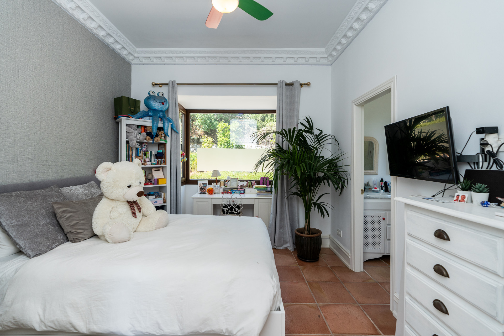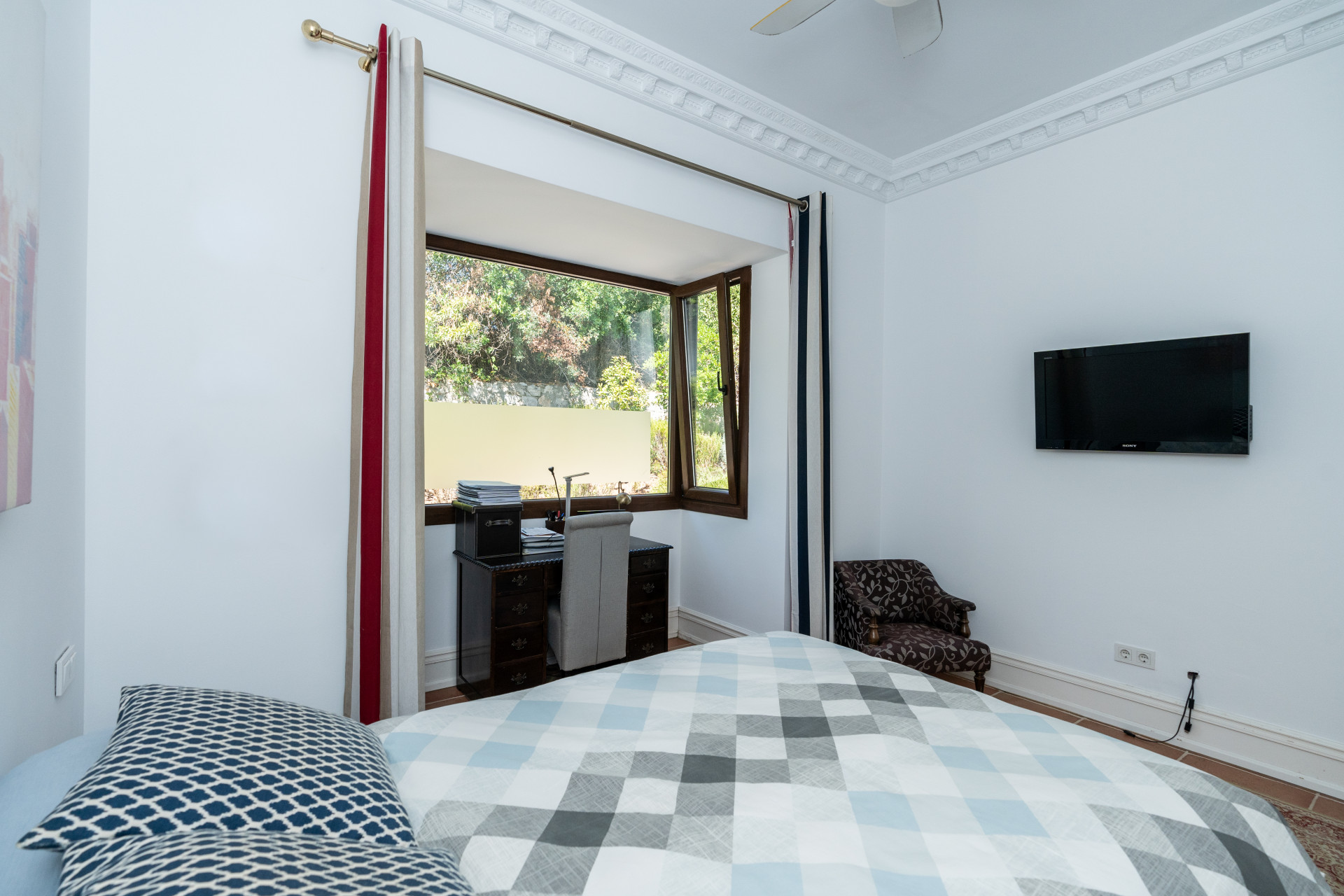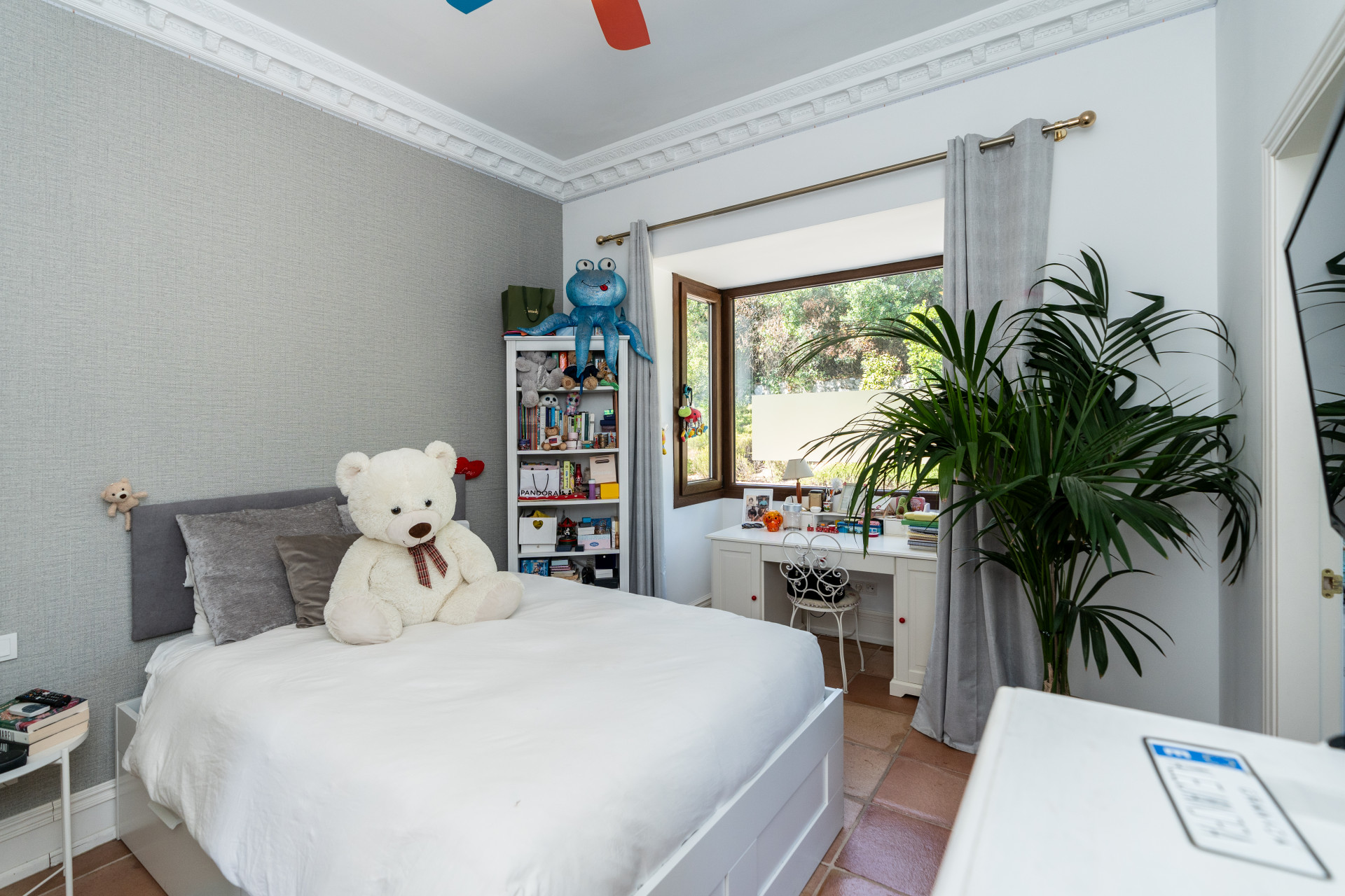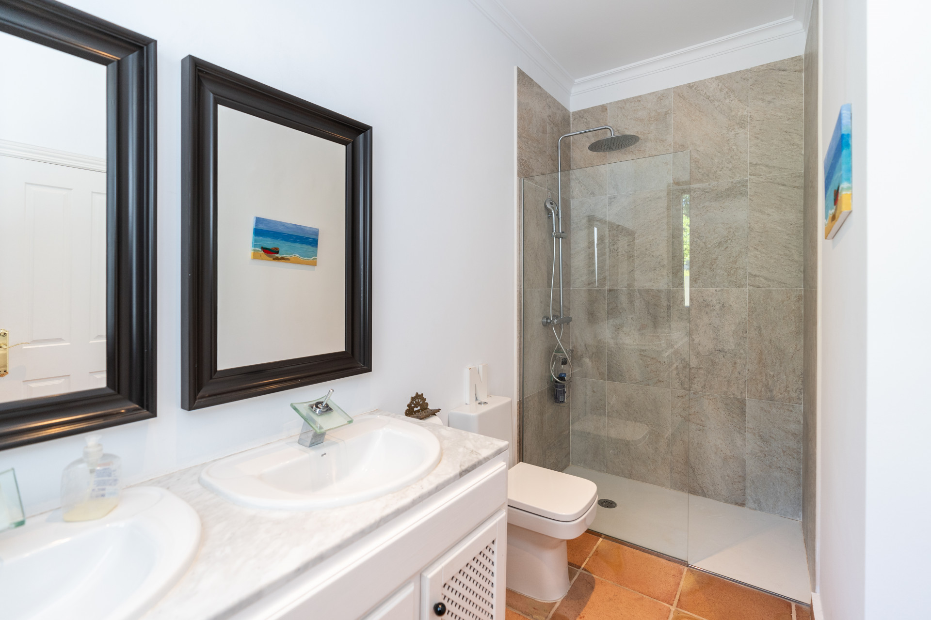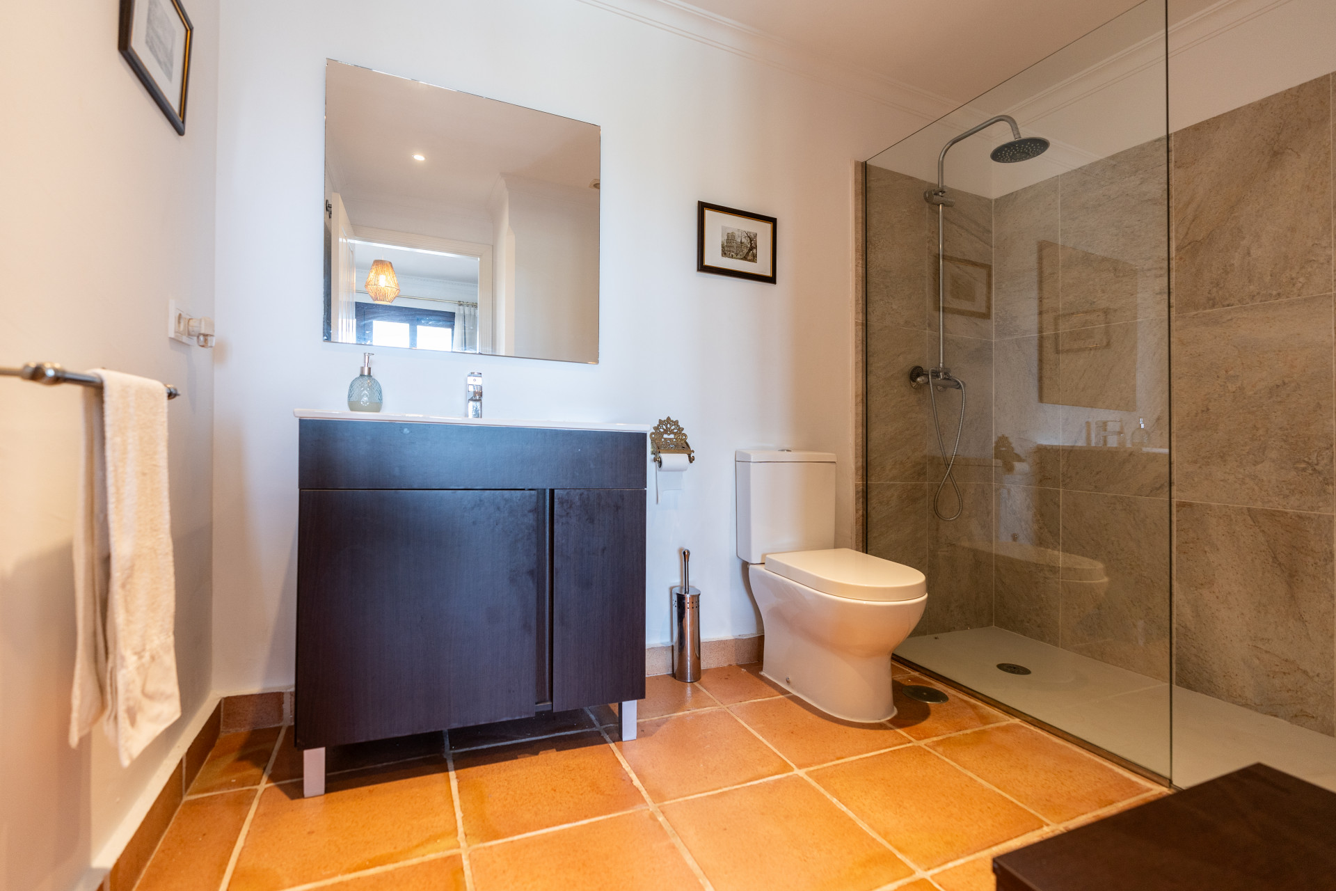 Villa, Nagüeles – Villa very close to Marbella centre with panoramic sea views for sale. Located in one of Marbella’s most privileged residential areas, just a few steps from the centre, this unique villa perfectly combines rustic Andalusian character with contemporary comfort. Combining tranquillity, privacy and convenient access to Marbella’s main destinations, this villa offers a unique blend of traditional charm and a privileged location. Built on a generous south-facing plot, the property offers privacy, spaciousness and stunning panoramic sea views from its main terrace. The main floor features an elegant entrance hall, a guest toilet, a fully equipped kitchen, a separate dining room and a spacious living room with a fireplace, which opens onto the sunny main terrace. The villa has five bedrooms with en-suite bathrooms, all carefully designed to ensure comfort and privacy. On the lower floor, a versatile multipurpose area is currently used as a games room and gym.