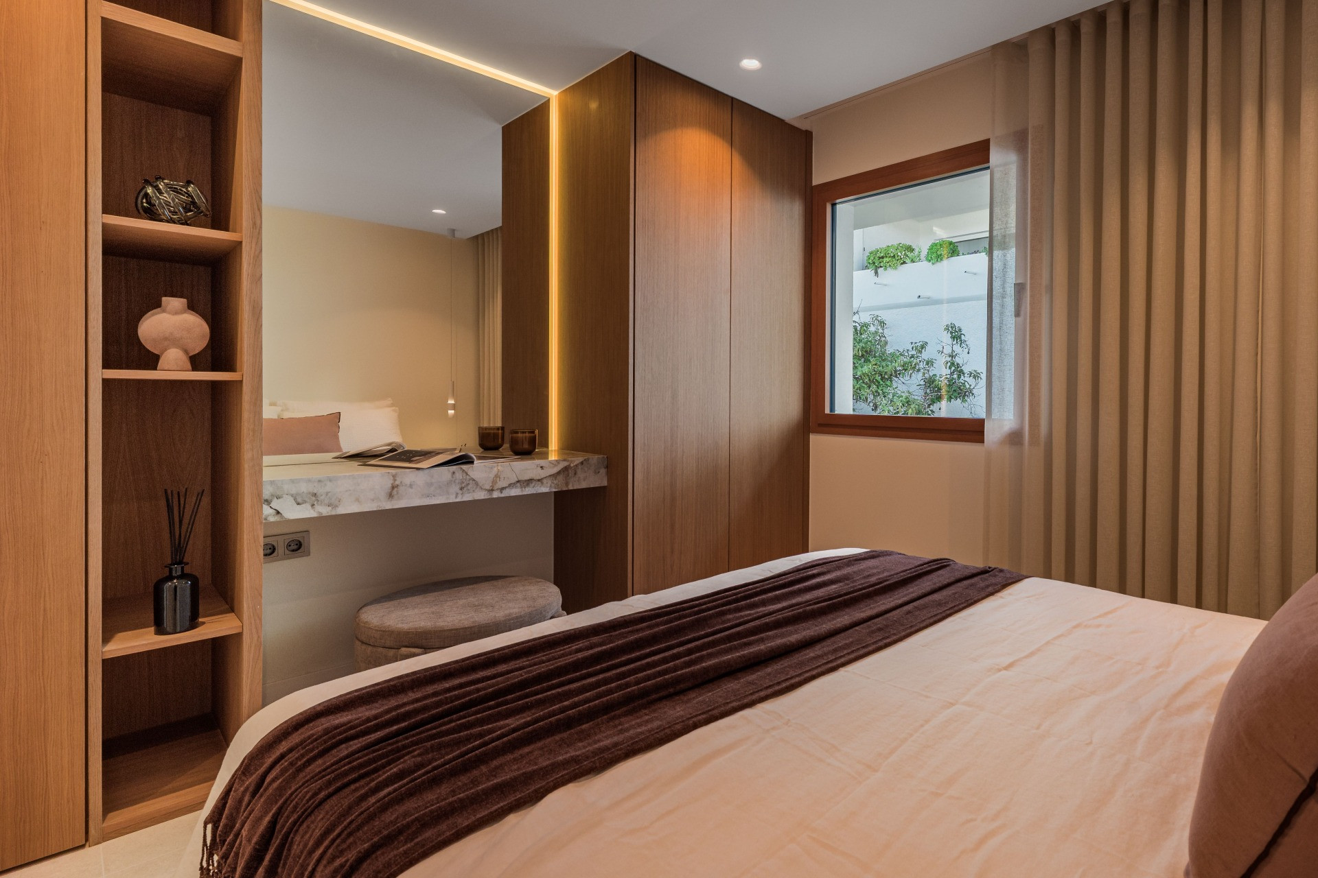 Reihenhaus, Altos de Aloha – Set within the sought-after residential enclave of Altos de Aloha, this beautifully refurbished southwest-facing townhouse offers a refined blend of contemporary design and everyday comfort, perfectly positioned near golf courses, international schools, and all essential amenities. Spanning approximately 220 m² with an additional 70 m² of terraces, the home unfolds across three levels, delivering a well-balanced layout with four bedrooms and three bathrooms, ideal for both family living and a sophisticated second residence. The interiors are defined by a warm, natural palette, where wood textures meet clean architectural lines, creating an atmosphere that feels both modern and timeless. The main living space is filled with natural light and flows seamlessly onto sun-drenched terraces, enhancing the indoor-outdoor lifestyle that defines Mediterranean living. Open views and a sense of privacy elevate the experience, offering a tranquil environment within a gated community where short-term rentals are not permitted, ensuring a more exclusive and residential feel. The kitchen and living areas are thoughtfully connected, making the space equally suited for relaxed daily living or elegant entertaining. The master suite provides a calm and private retreat, complete with its own en-suite bathroom and a serene ambiance that invites rest and disconnection. Underfloor heating throughout the property ensures year-round comfort, reinforcing the home’s focus on long-term livability. Communal gardens and a shared pool complement the private spaces, adding a layer of resort-style living without compromising intimacy. This turnkey property represents a compelling opportunity to enjoy a quiet yet connected lifestyle in one of Nueva Andalucía’s most desirable locations, where design, comfort, and location come together effortlessly.