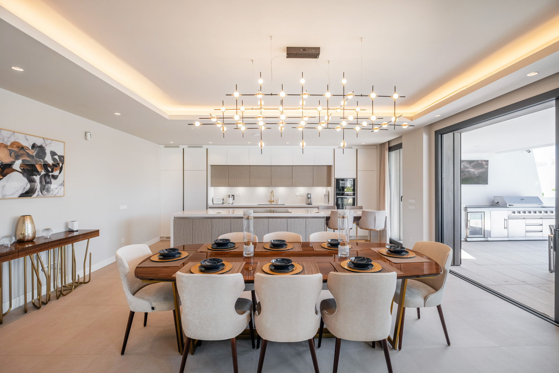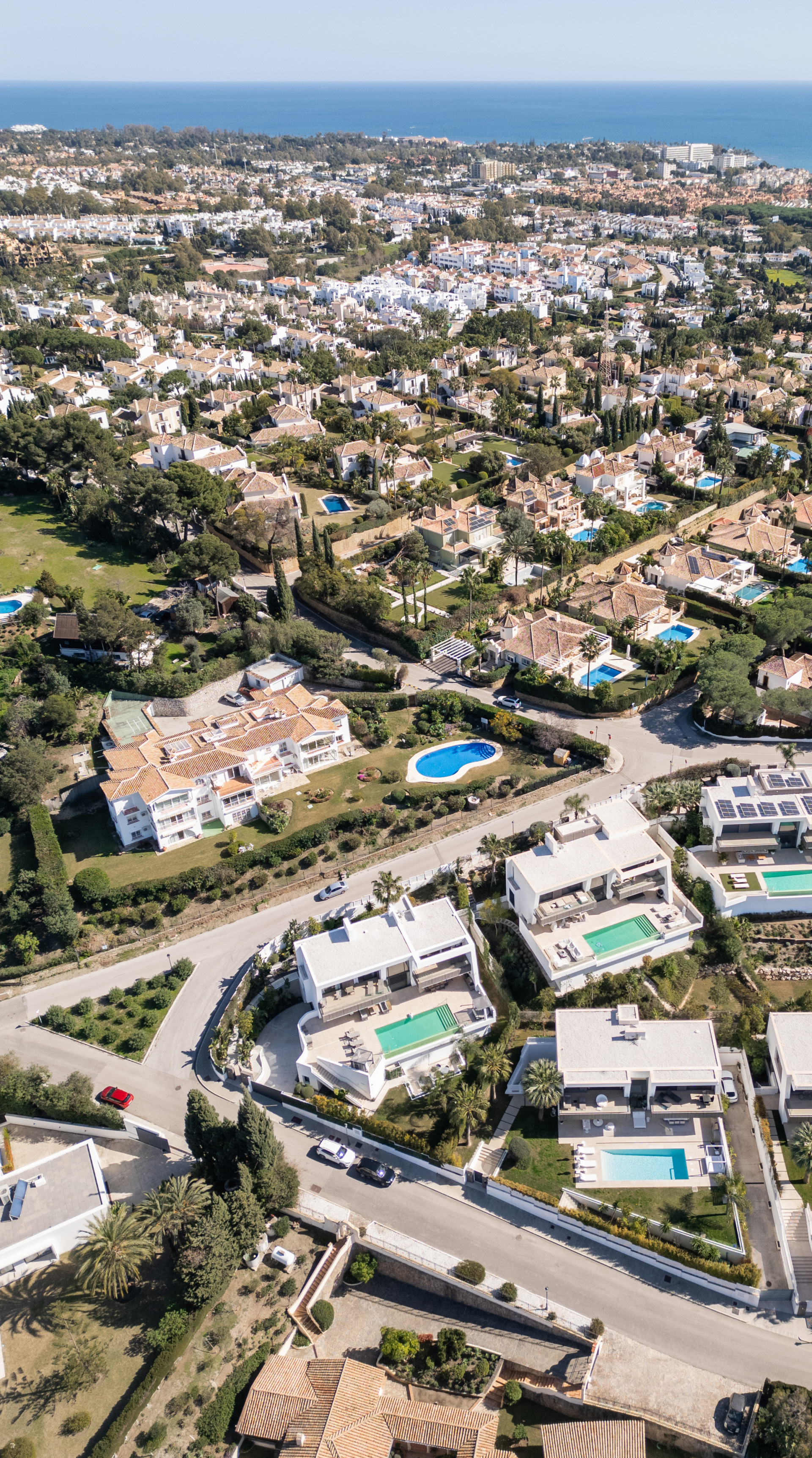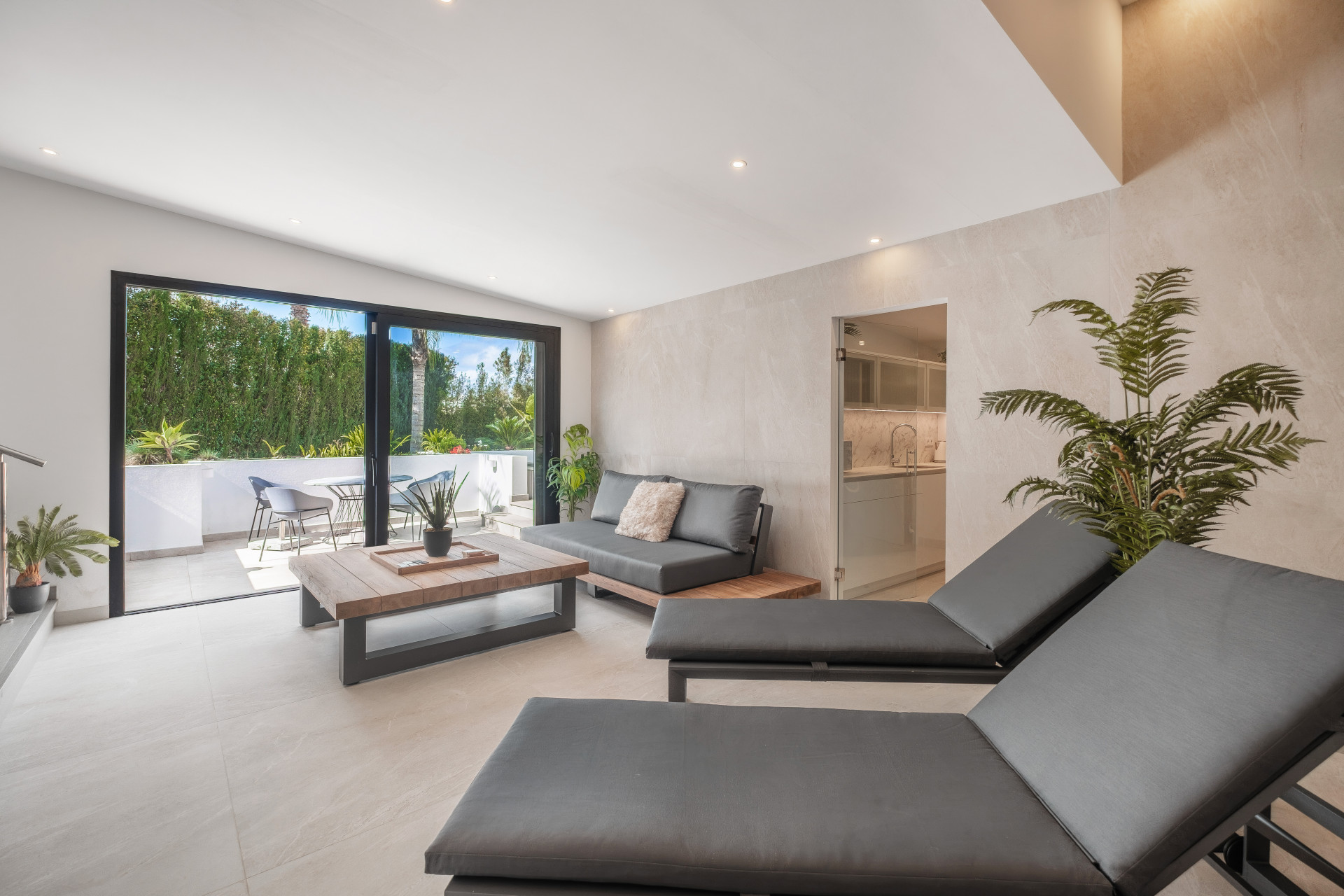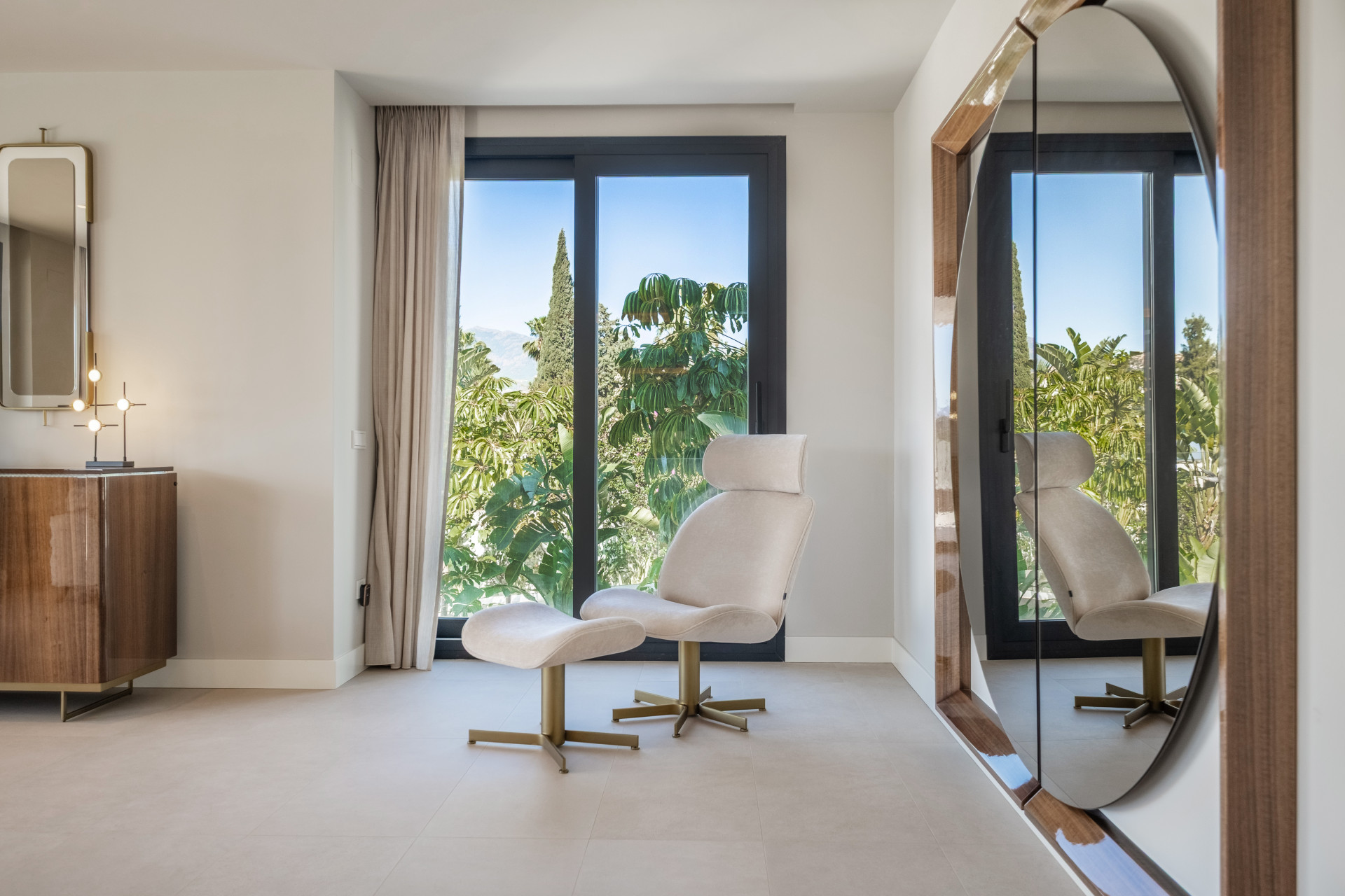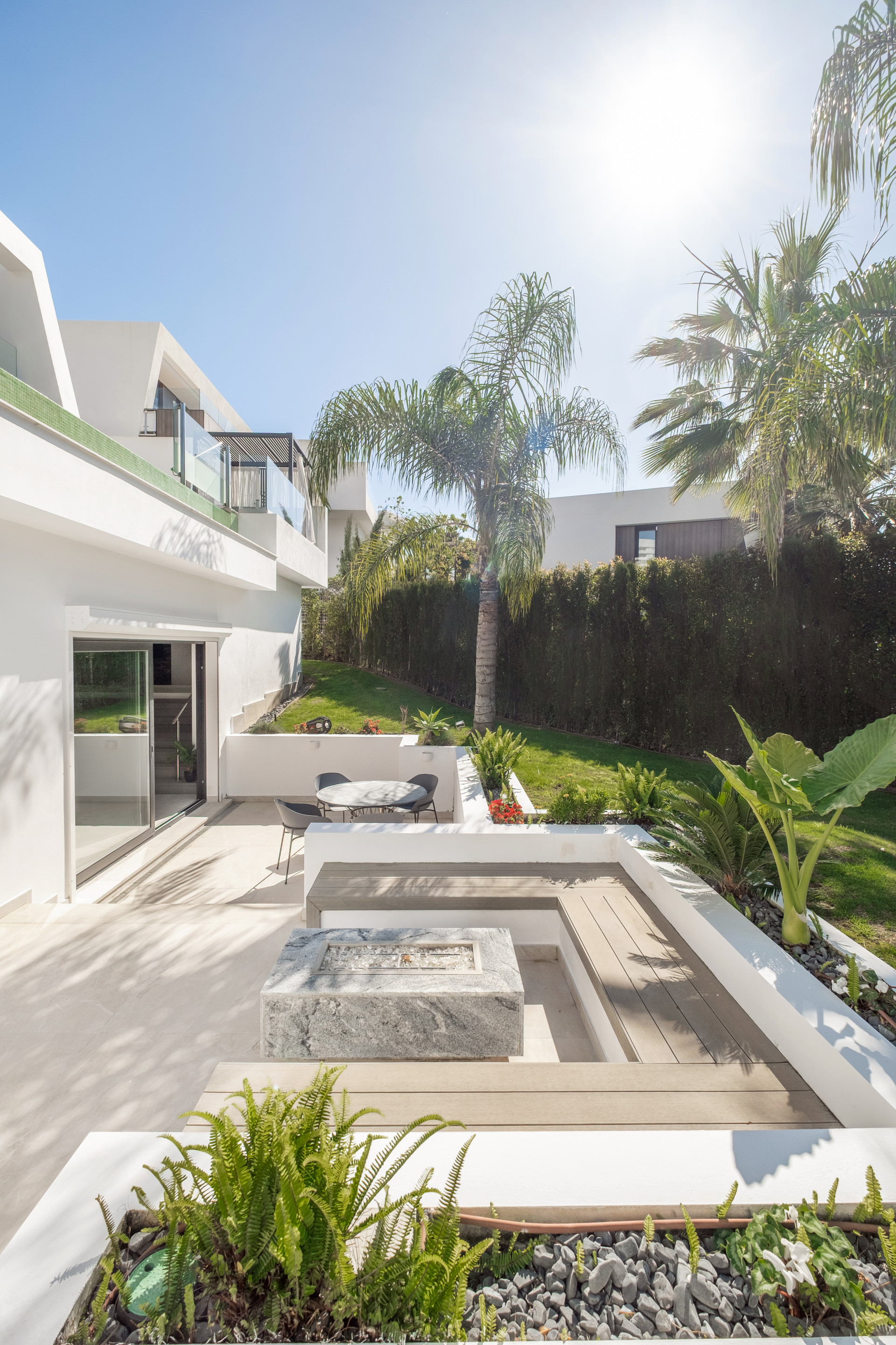 Villa, El Paraiso – This exceptional luxury villa represents a seamless fusion of contemporary architecture, refined comfort, and superior craftsmanship, offering a sophisticated lifestyle in an exclusive setting. From the moment you enter, an elegant entrance hall leads into a beautifully designed open-plan living and dining area, where a stylish fireplace creates a warm and inviting ambiance. The bespoke designer kitchen, fitted with premium Neff appliances and sleek Silestone countertops, blends functionality with modern elegance. Expansive glass doors open onto a generous terrace, where a meticulously landscaped private garden and a striking emerald-tiled heated swimming pool create a serene outdoor oasis, perfect for both relaxation and entertaining. The upper level hosts three spacious en-suite bedrooms, including a stunning master suite with its own private terrace, while the remaining bedrooms share a large terrace, offering tranquil views and abundant natural light. The basement level, finished to the highest standards and enhanced by natural light, features two additional en-suite bedrooms, a comfortable lounge area, a fully equipped laundry room, and a private wellness area complete with sauna and jacuzzi, designed for ultimate relaxation. An independent, newly renovated guest apartment with its own entrance, kitchen, and bathroom provides additional flexibility for guests or staff. The villa also offers a private garage for two cars, additional outdoor parking, and a lift connecting all levels, ensuring maximum convenience. Advanced features such as aerothermal climate control, water-based underfloor heating, home automation managed via iPads, and top-tier security systems elevate the property to a new level of modern luxury. This is a rare opportunity to acquire a fully completed, move-in ready residence with exceptional quality, panoramic views, and outstanding potential both as a permanent home and as a high-performing investment.