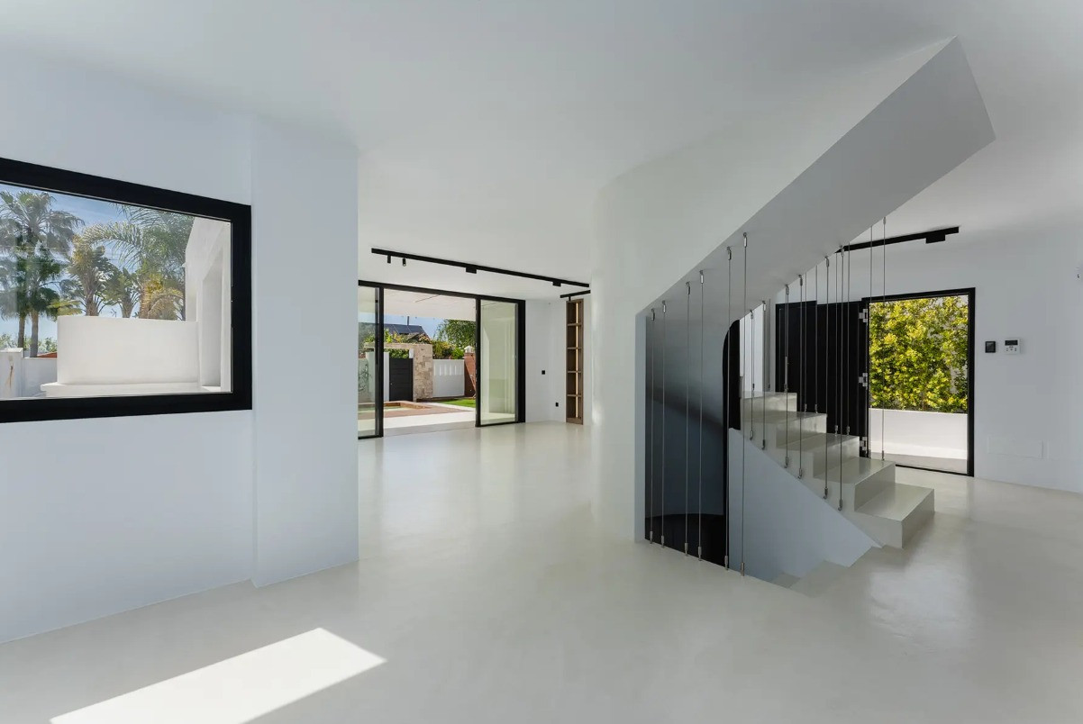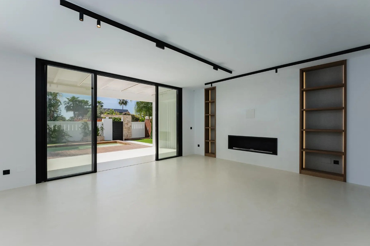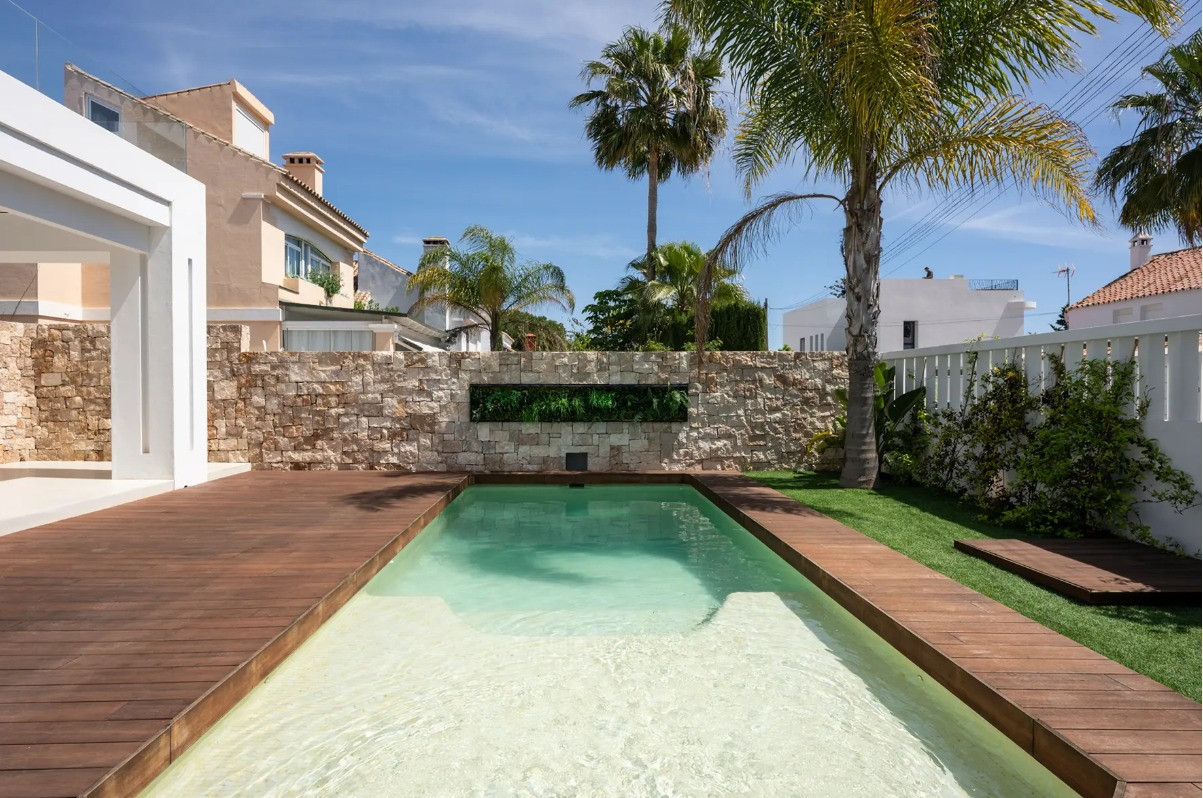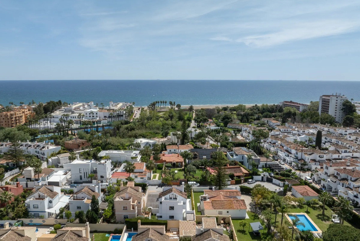Villa, Costalita – Stunning Mediterranean-style villa with a modern touch, situated in a prime location just steps from the beach on Estepona’s New Golden Mile. The property boasts four bedrooms and four bathrooms, as well as a fully equipped kitchen with Siemens appliances. Enjoy a spacious terrace with a chill-out area, an outdoor shower, and a private swimming pool surrounded by meticulously landscaped gardens. The villa is located in a quiet and secure residential area of villas, just a short walk from the beautiful beaches of the New Golden Mile. Nearby, you’ll find fabulous beach restaurants, beach clubs, sports facilities, and prestigious golf courses.