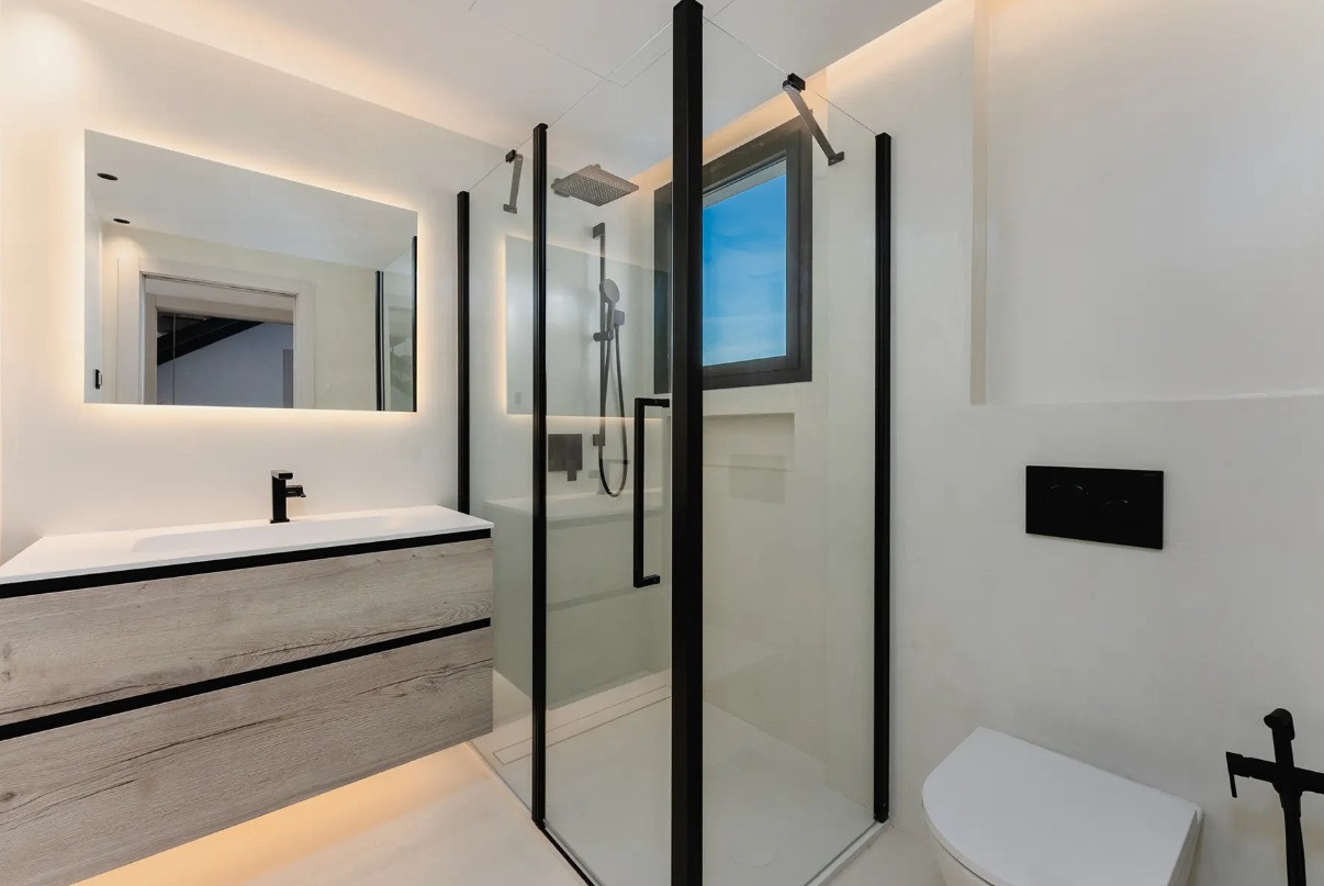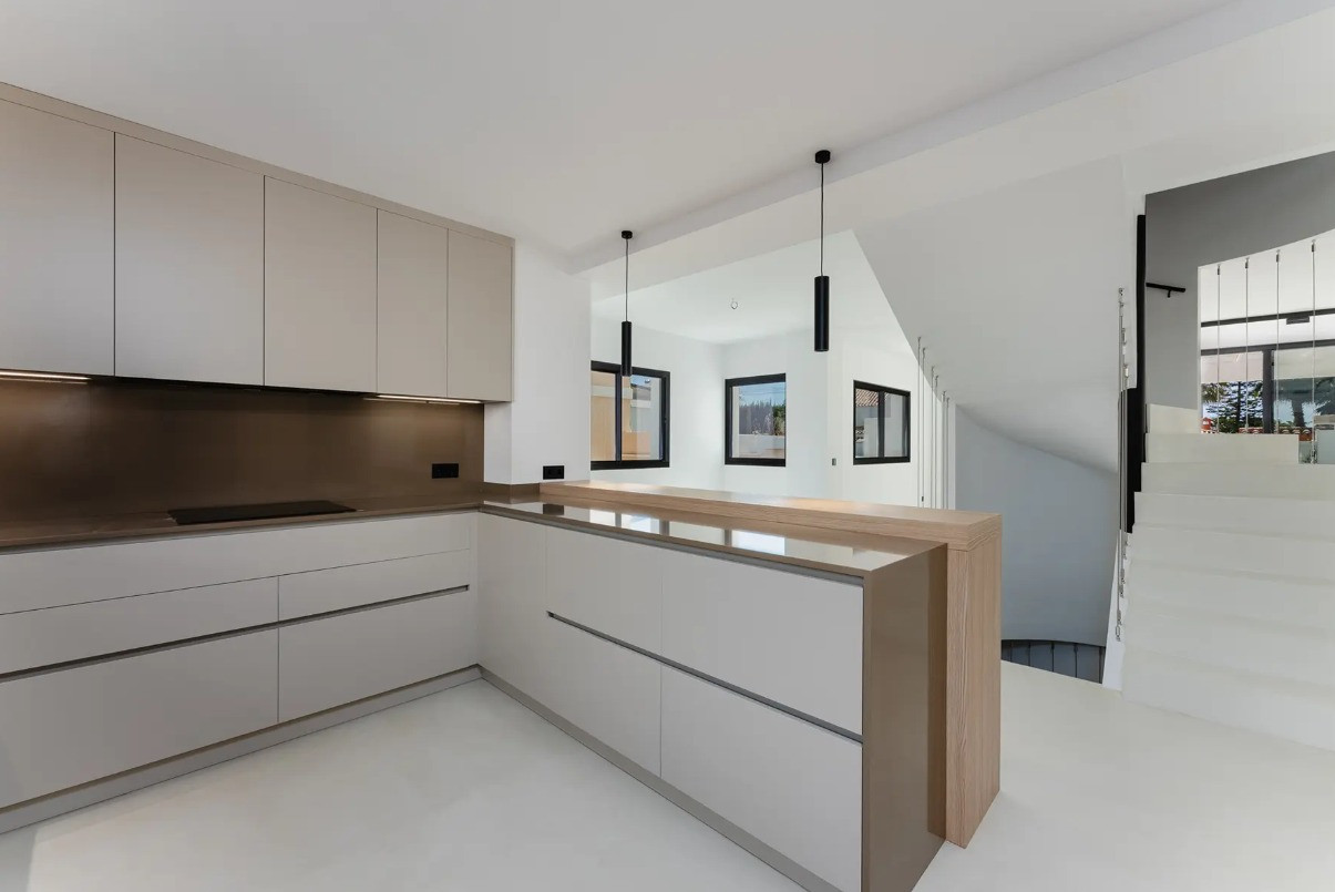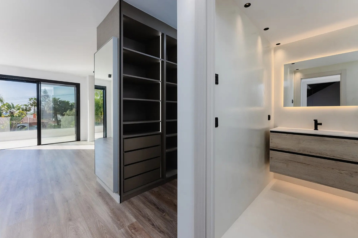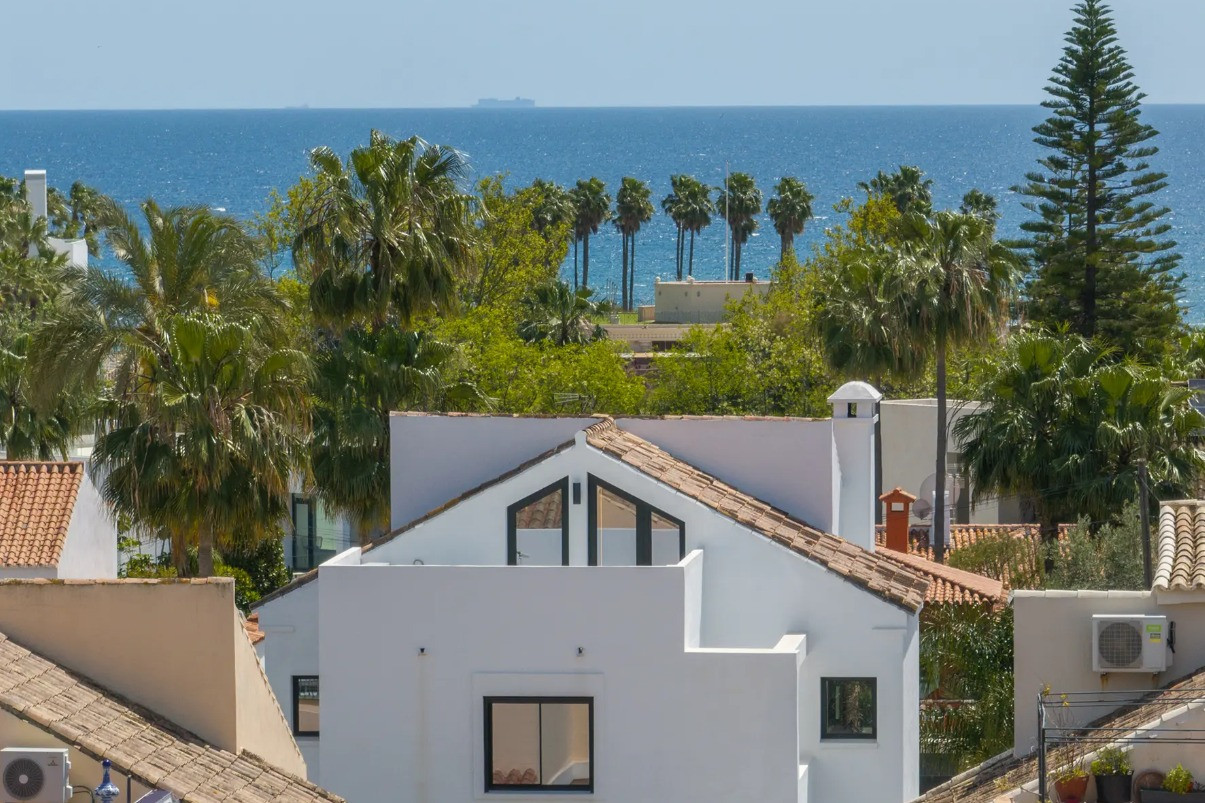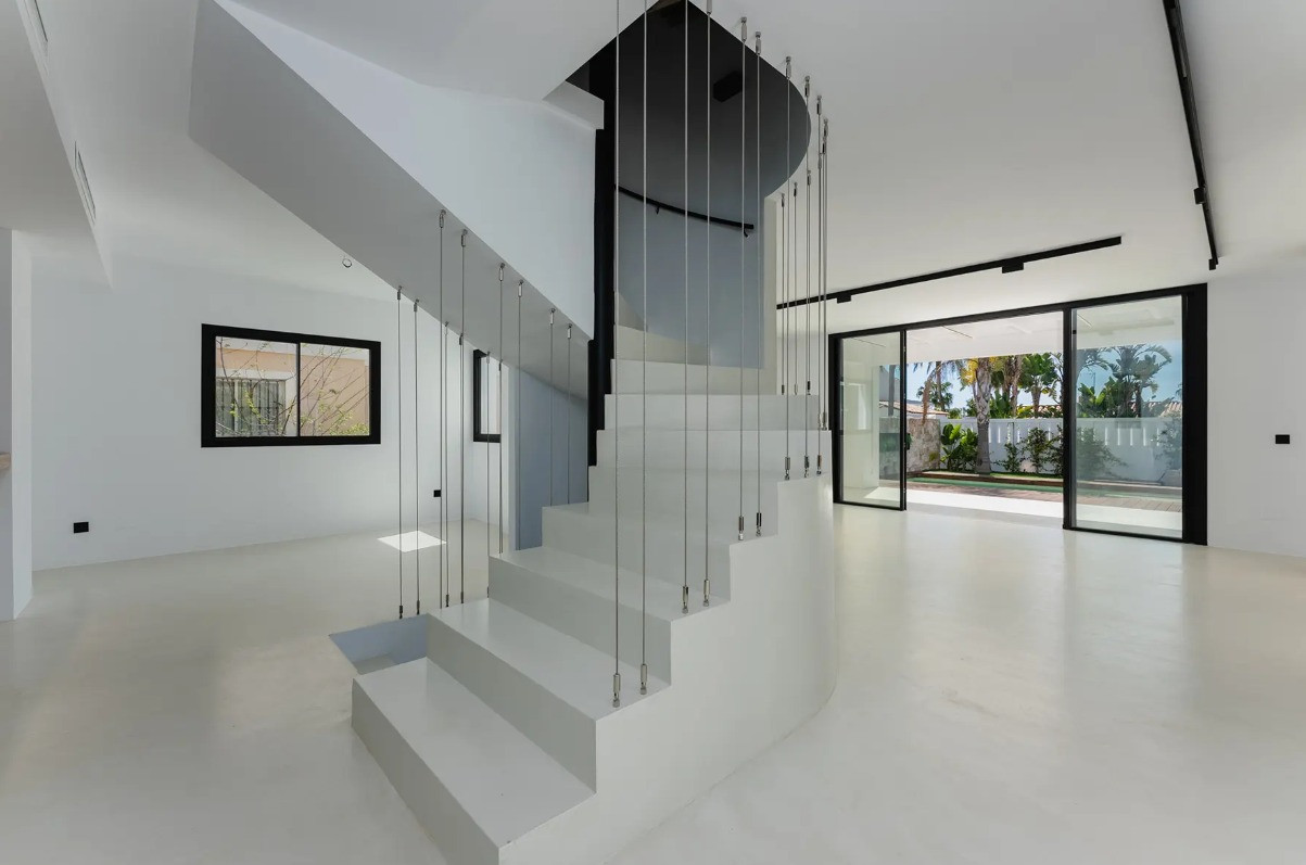 Villa, Costalita – Stunning Mediterranean-style villa with a modern touch, situated in a prime location just steps from the beach on Estepona’s New Golden Mile. The property boasts four bedrooms and four bathrooms, as well as a fully equipped kitchen with Siemens appliances. Enjoy a spacious terrace with a chill-out area, an outdoor shower, and a private swimming pool surrounded by meticulously landscaped gardens. The villa is located in a quiet and secure residential area of villas, just a short walk from the beautiful beaches of the New Golden Mile. Nearby, you’ll find fabulous beach restaurants, beach clubs, sports facilities, and prestigious golf courses.