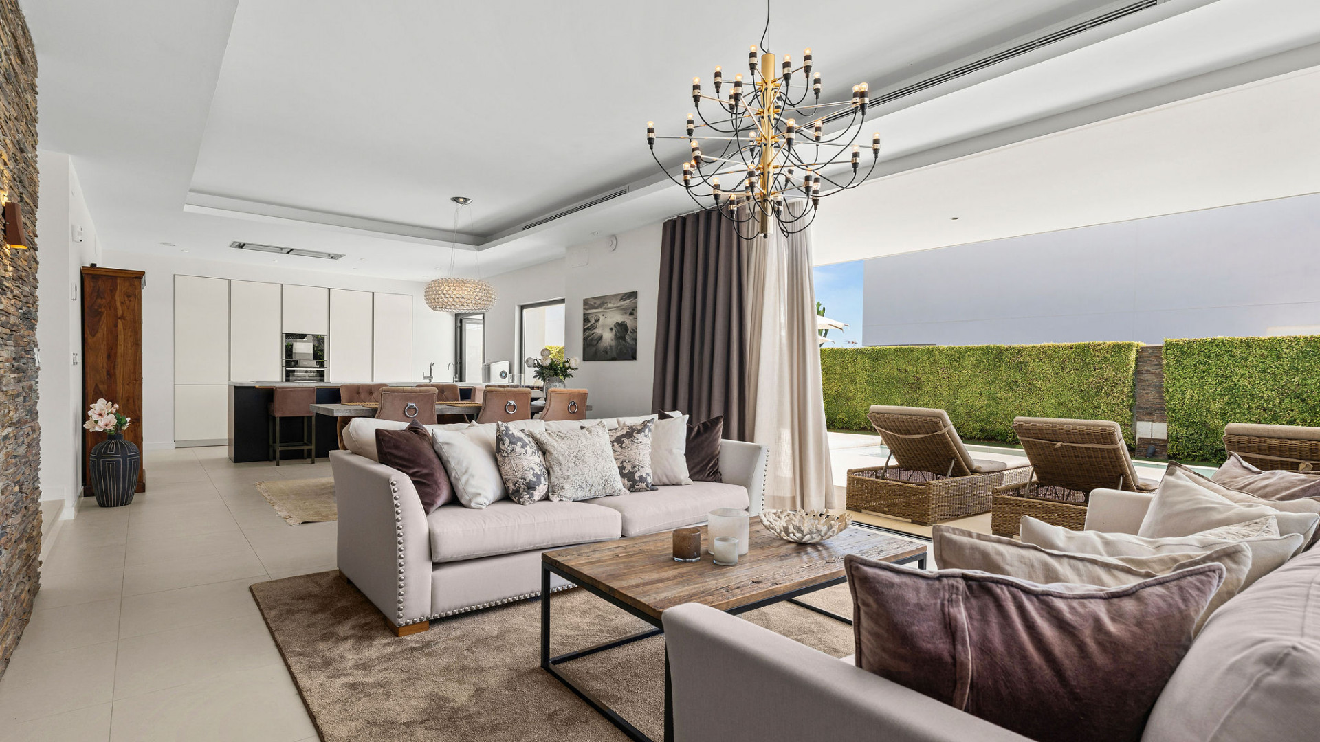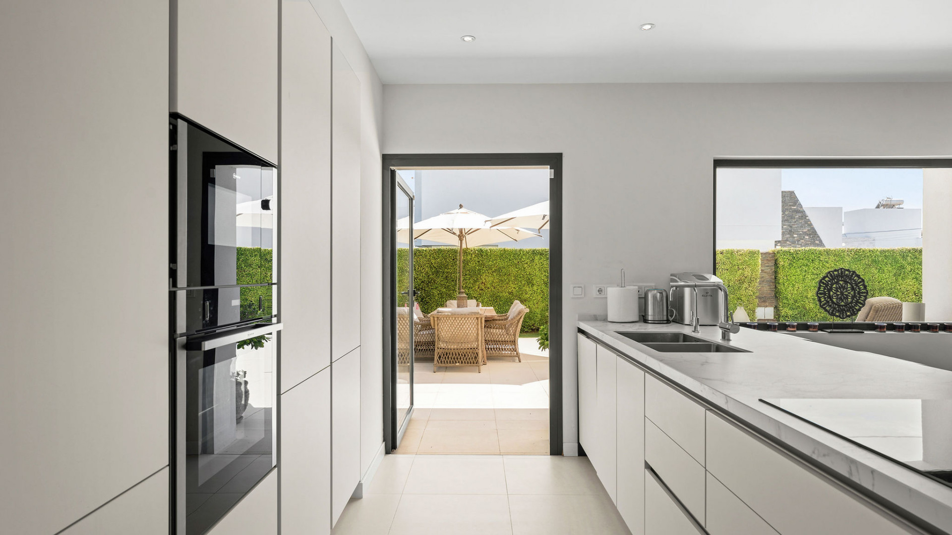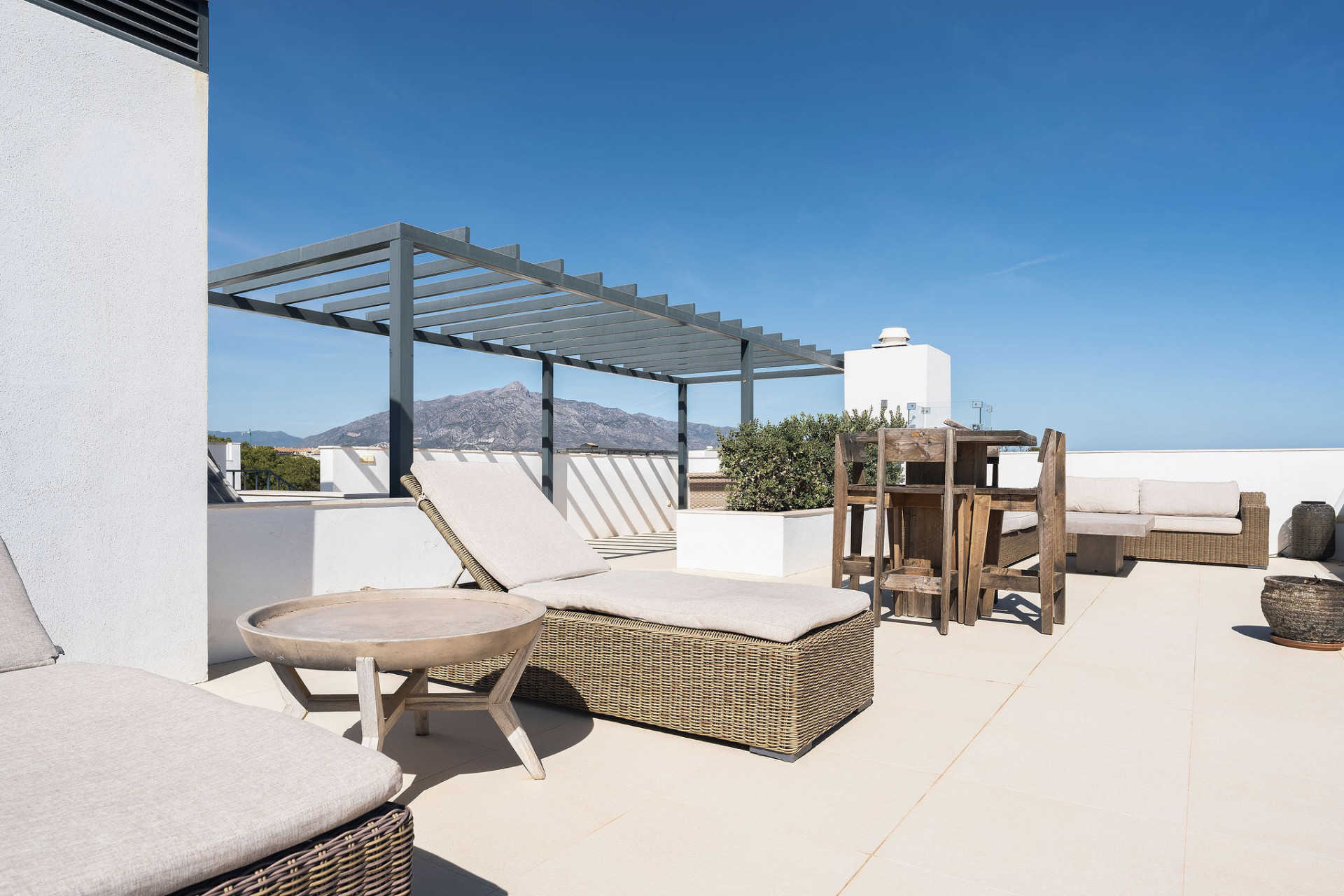 Villa, Linda Vista Baja – This gorgeous five-bedroom villa for sale is located just a short walk from the beach, offering the perfect blend of luxury, convenience, and coastal living. Situated in the desirable area of San Pedro Playa, this villa is ideally positioned near the heart of San Pedro de Alcantara and only a 10-minute drive to five renowned golf courses, making it an exceptional choice for families and golf enthusiasts alike. It simply ticks all the boxes – modern living, walking distance location and also fantastic rental potential! Designed with a chic modern style, the villa features high-quality finishes and appliances, a beautiful private garden, and a heated swimming pool. The spacious, light-filled interiors create a welcoming atmosphere, with an open-plan kitchen seamlessly flowing into the living and dining areas. These spaces open onto the terrace, offering effortless indoor-outdoor living while overlooking the lush garden and pool. The villa’s five bedrooms are complemented by stylish modern bathrooms. Each bedroom has its own air conditioning unit, and the master suite boasts elegant wooden flooring and an en-suite bathroom with a luxurious bathtub. Three bedrooms are located on the upper floor, while the lower level offers two additional bedrooms and a convenient laundry room. Enjoy panoramic views and unforgettable sunsets from the villa’s fabulous roof terrace, perfect for dining, sunbathing, or simply relaxing. This villa is a true gem, offering everything a family could desire with the beach, golf, and vibrant local amenities just moments away. San Pedro de Alcantara is a short 5-minute drive from Puerto Banus, and Marbella is just 15 minutes away, ensuring you’re never far from world-class attractions. This beachside villa is truly a must-see, your perfect opportunity to own a piece of paradise.