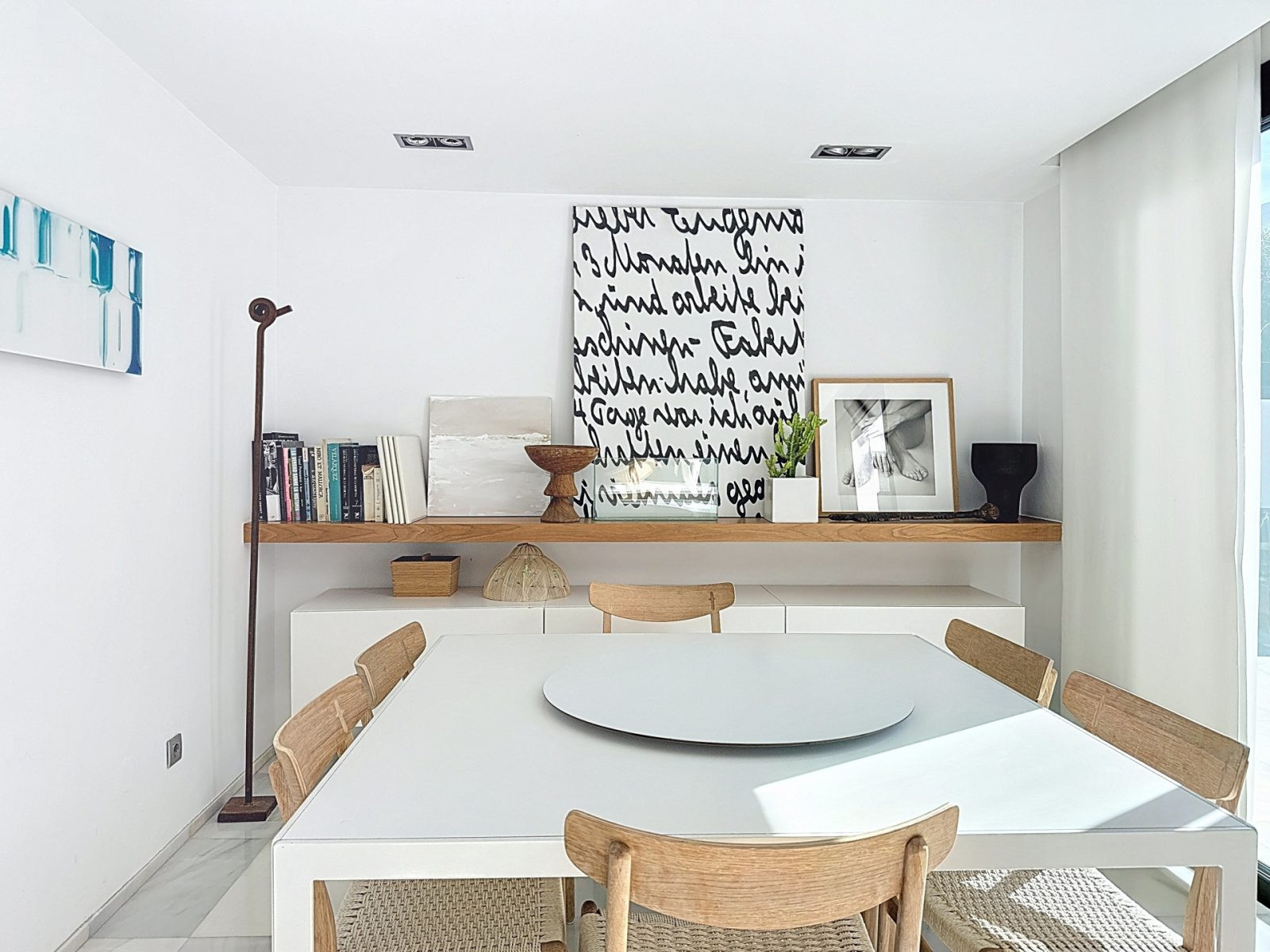 Semi Detached Villa, Guadalvillas – Just Steps from the Beach. Located in the prestigious gated community, offering 24-hour security and several communal swimming pools, this spacious semi-detached villa perfectly combines comfort, privacy, and a prime coastal location. The property features 6 bedrooms and 4 full bathrooms, plus a guest toilet. Three of the bedrooms include en-suite bathrooms, providing extra comfort and independence. The bright and spacious living-dining room, facing southwest, enjoys abundant natural light throughout the day and opens onto inviting outdoor areas. The villa also boasts a large private rooftop terrace, ideal for sunbathing, family gatherings, or evening entertaining. With its generous size and well-planned layout, this home is perfect as a family residence or a holiday home by the sea. Its proximity to the beach, combined with the security and tranquility of a well-maintained community, makes this property a unique opportunity.