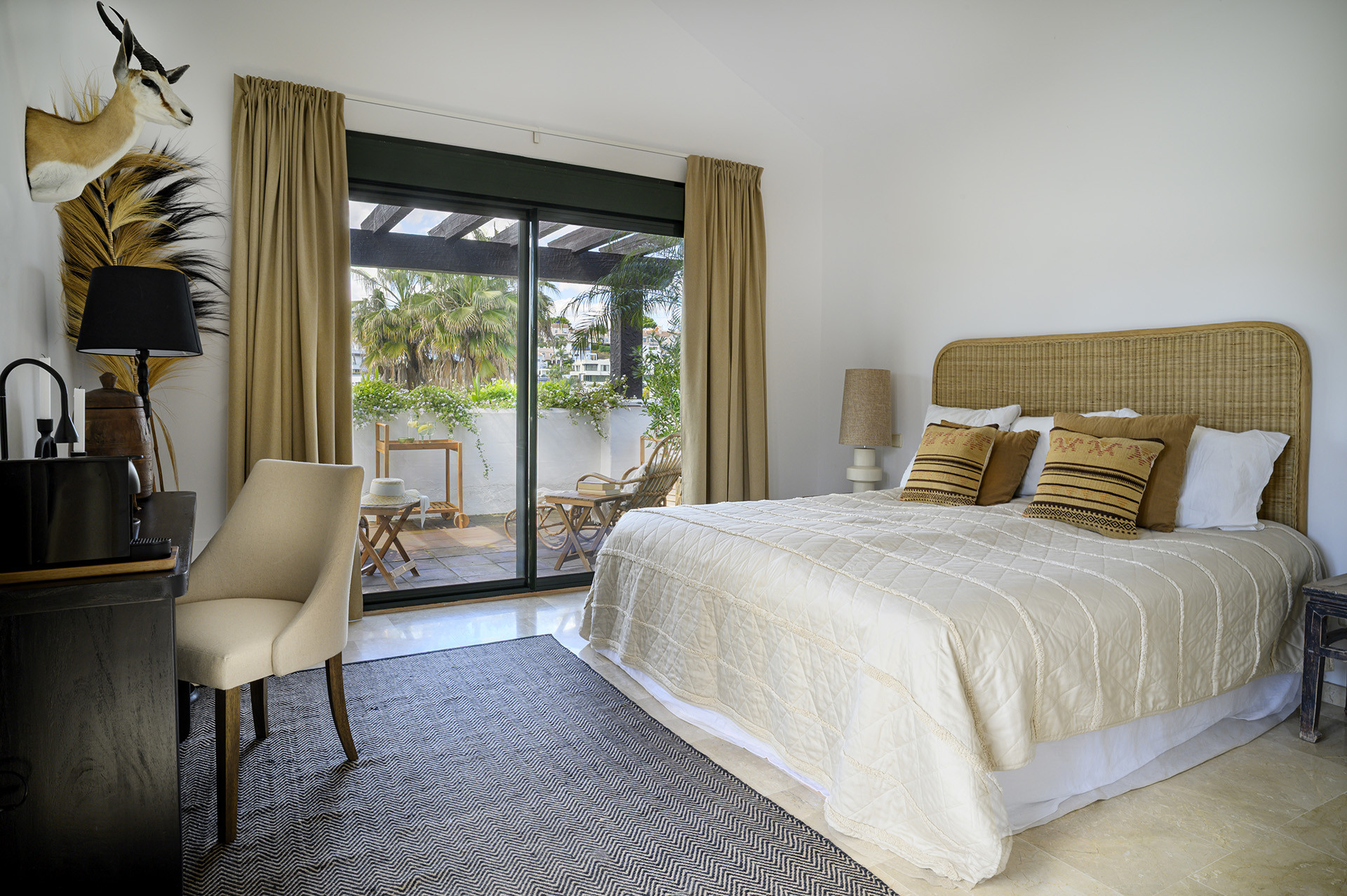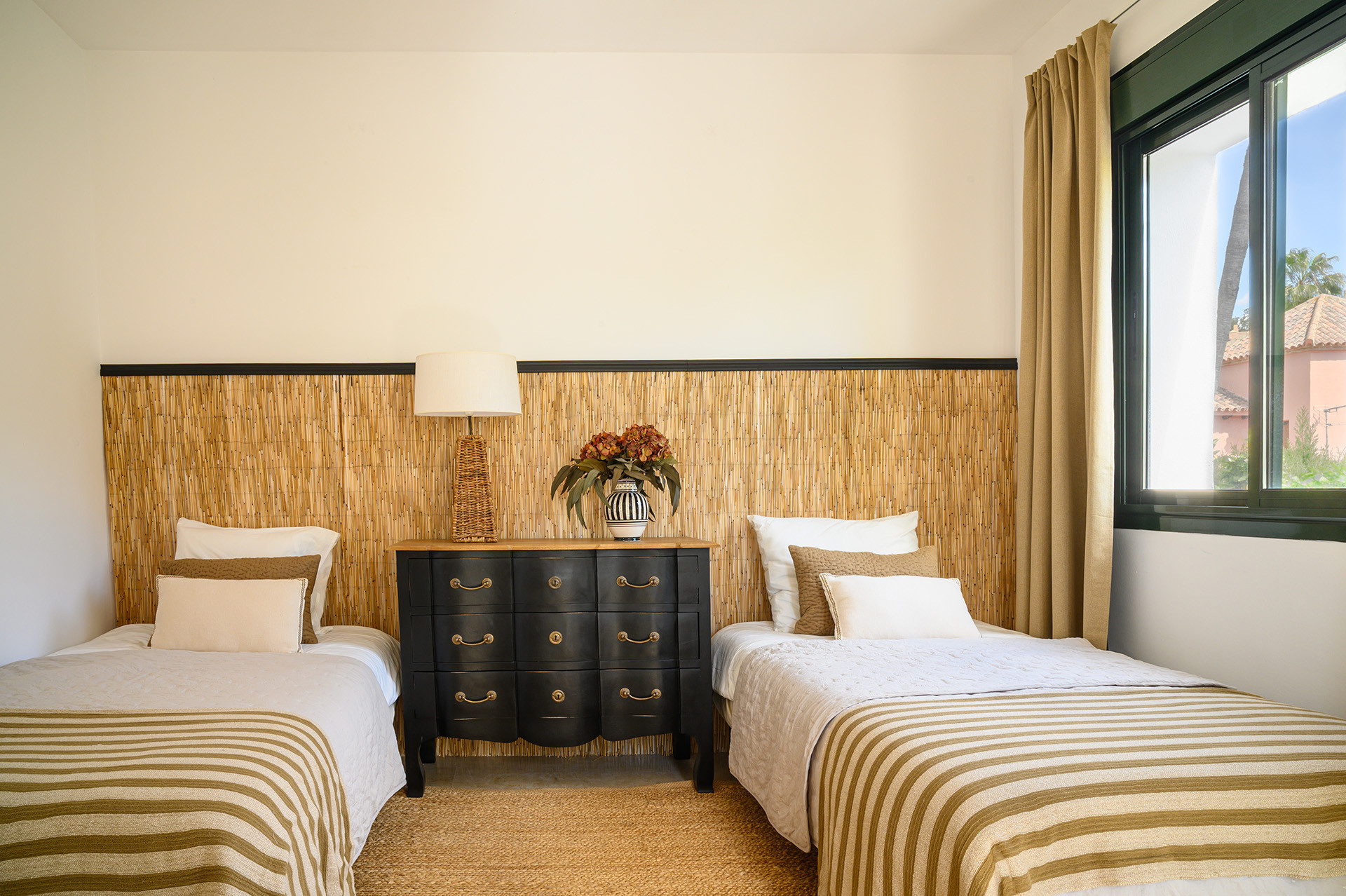 Villa, El Paraiso – Welcome to a private Mediterranean sanctuary where lush greenery, natural light and refined modern living come together in perfect harmony. This beautifully renovated villa offers four bedrooms and three bathrooms and has been thoughtfully designed for those who value tranquility, privacy and effortless indoor-outdoor living. From the moment you enter, the home reveals a calm and inviting atmosphere. The living spaces are filled with natural light and flow seamlessly towards the surrounding terraces and gardens, creating an environment that feels both elegant and relaxed. The newly renovated kitchen blends warm materials with clean contemporary finishes and is complemented by a practical pantry, forming a stylish yet functional space at the heart of the home. Outside, the property transforms into a true private oasis. Pathways meander through lush Mediterranean landscaping, mature trees and carefully curated gardens, offering peaceful corners to unwind. The private swimming pool, framed by elegant wooden decking, enhances the resort-like atmosphere and creates a perfect setting for long summer afternoons and evenings under the Costa del Sol sky. Thanks to its east-to-west orientation, the home enjoys beautiful natural light throughout the day. Morning sun gently fills the kitchen and living areas, ideal for a quiet coffee on the terrace, while the afternoon light settles warmly over the pool and garden spaces. The lower level offers a versatile multi-purpose room designed for leisure and entertainment, perfect for movie nights, games, table tennis or a relaxed family lounge. This floor also includes a laundry room, storage space and a private garage. All bedrooms benefit from direct access to a balcony or terrace, strengthening the home’s seamless connection with the outdoors. Located next to the renowned El Campanario Club Resort, residents enjoy immediate access to golf, fitness facilities, restaurants and social spaces, as well as excellent tennis and padel facilities. International Kids Club El Campanario is also nearby, making the location particularly attractive for families. A home where privacy, nature and lifestyle come together effortlessly, while remaining just minutes from Marbella, Puerto Banús and the beaches of the New Golden Mile.