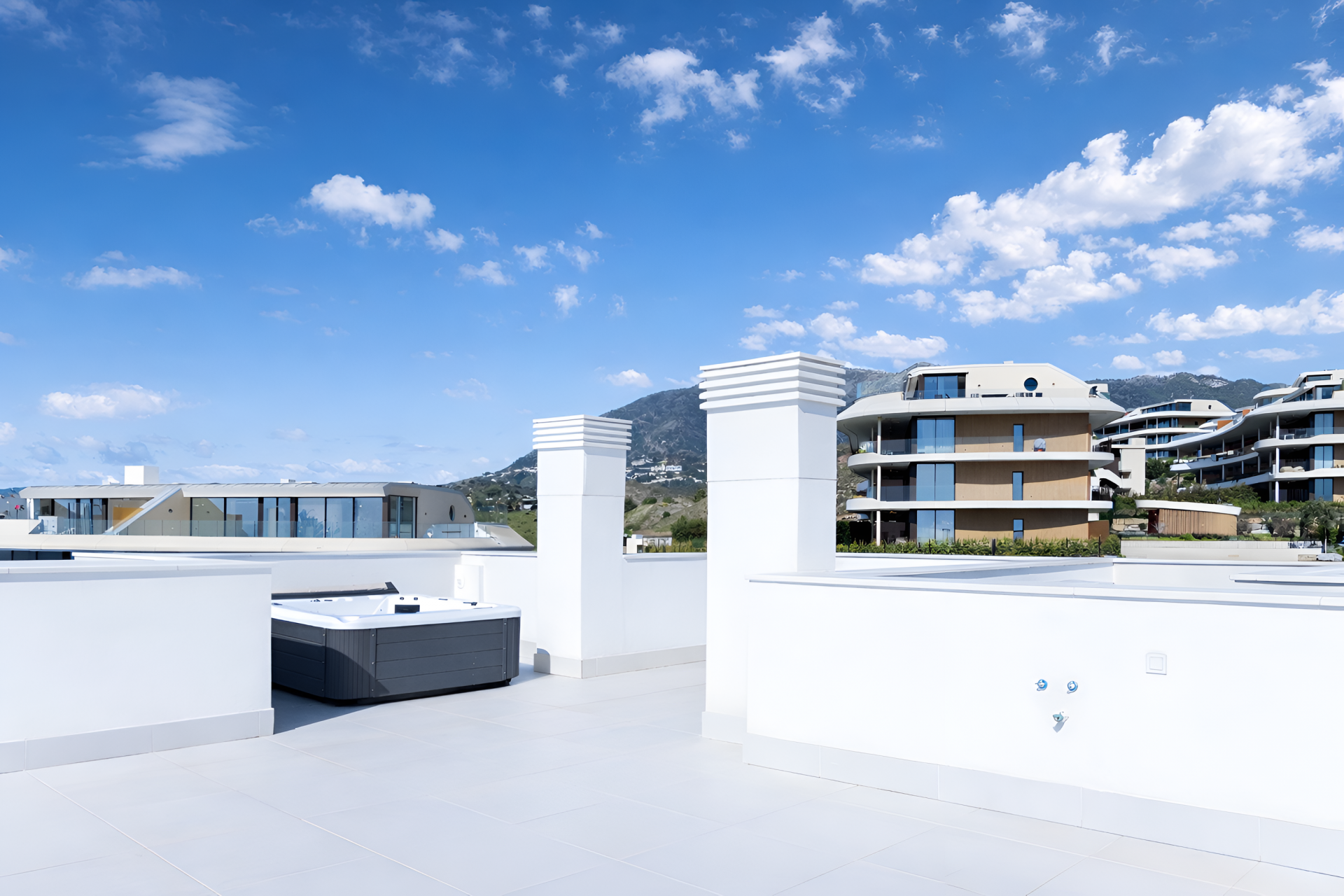 Duplex Penthouse, El Higueron – Set in the natural surroundings of Las Lomas del Higuerón in Fuengirola, this contemporary residential development offers an elegant collection of 36 apartments with 2 and 3 bedrooms designed to embrace the Mediterranean lifestyle. The project is distributed across three low-rise buildings of four floors, combining modern architecture, open views and generous outdoor spaces. Each residence features spacious terraces, while ground-floor homes enjoy private gardens and the penthouses offer spectacular sky solariums with panoramic sea views and long hours of sunshine. The complex is surrounded by beautifully landscaped green areas and benefits from an elevated position that allows many homes to enjoy sea views while remaining close to all services and amenities of the Costa del Sol. Designed with quality and functionality in mind, every property includes two parking spaces and a storage room. Residents enjoy a carefully designed selection of communal facilities including landscaped gardens, an outdoor swimming pool, gym, sauna and coworking space, creating a lifestyle-oriented environment where comfort, wellbeing and productivity come together. Sustainability also plays a key role in the development, incorporating energy-efficient systems, thermal insulation and pre-installation for electric vehicle charging. The result is a modern residential community where architecture, nature and lifestyle blend seamlessly, offering a peaceful yet well-connected setting on the Costa del Sol.