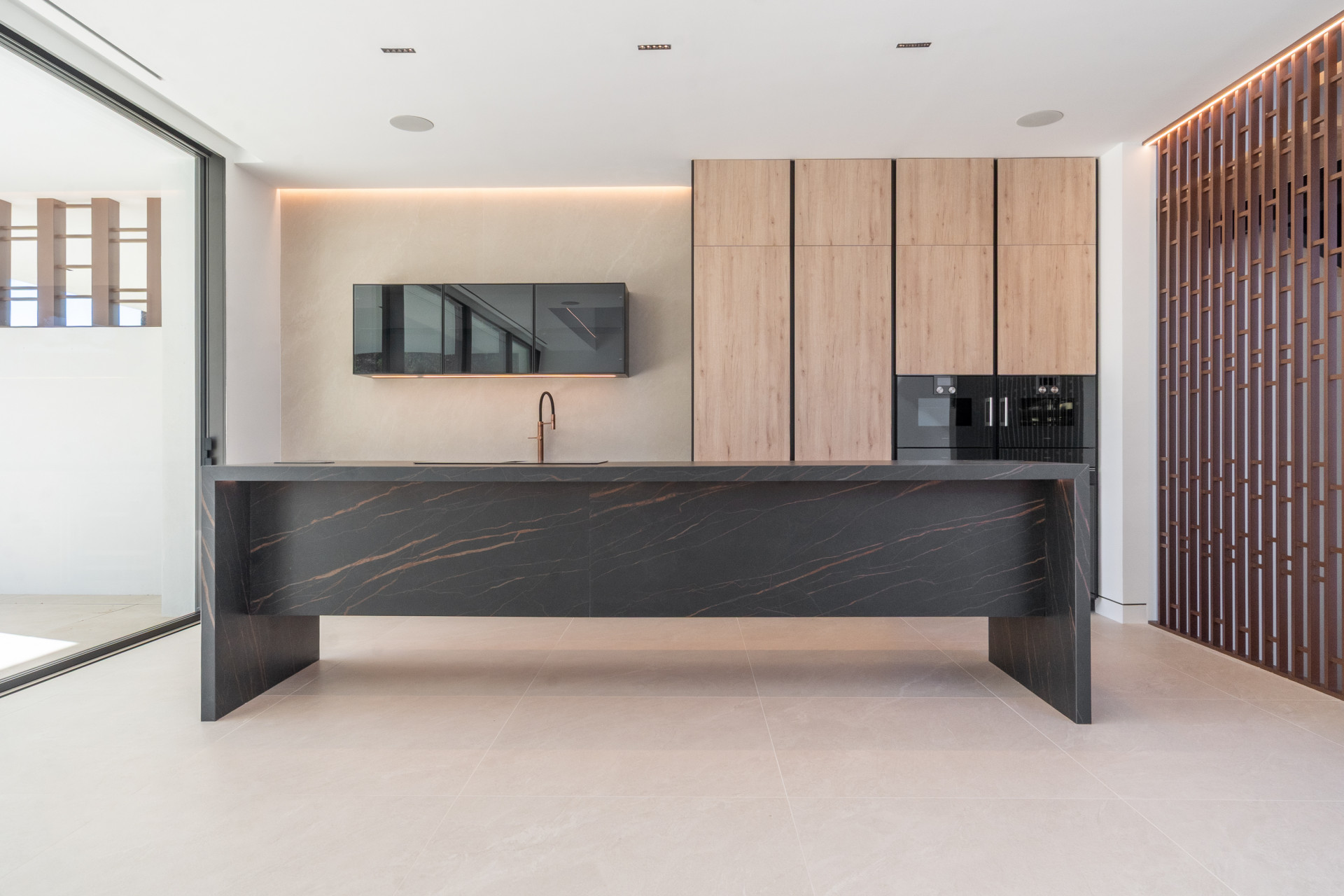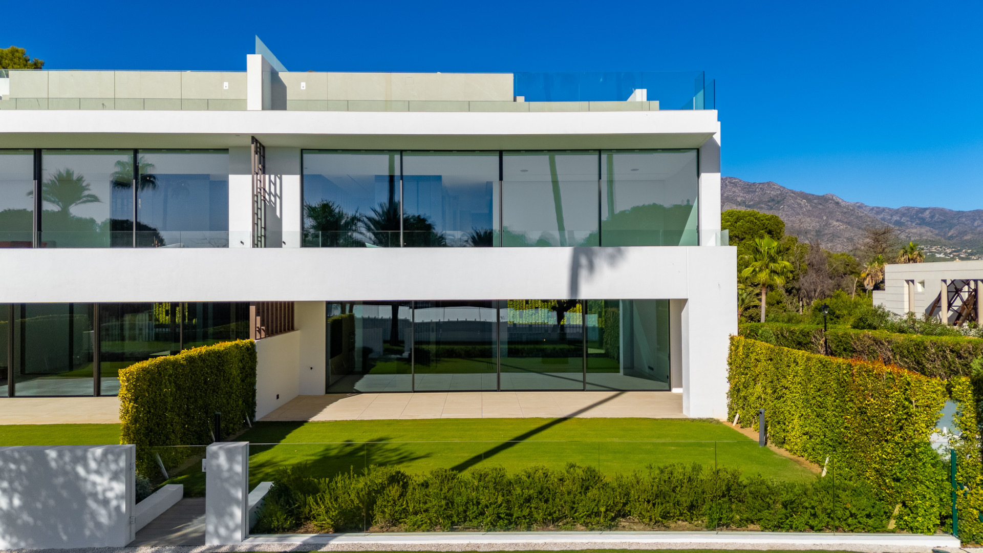 Semi Detached House, Atalaya de Rio Verde – Modern and exceptional semi-detached villa located in the prestigious Atalaya Río Verde urbanization, one of the most exclusive and sought-after residential areas in Nueva Andalucía. The property combines outstanding architectural design, top-quality finishes, and a truly privileged location, just minutes from the best golf courses, sandy beaches, Michelin-starred restaurants, Puerto Banús, and the renowned Aloha School. Completed in December 2023, this contemporary residence stands out for its exceptional construction quality, the use of premium materials, and meticulous attention to detail. The home offers a total built area of 703 m², distributed across 415 m² of interior space, 288 m² of terraces, and a 92 m² private garden.