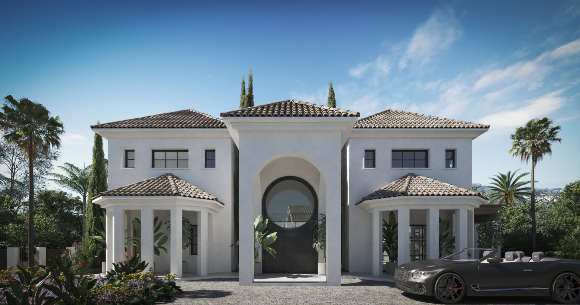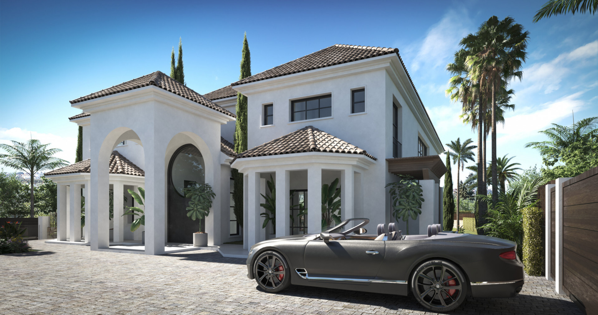 Villa, Nueva Andalucia – A villa project in Nueva Andalucía set on a 2,273 m² plot with 1,038 m² built, designed with 6 to 8 bedrooms, 6+2 bathrooms, a double-height central living space, and a flexible lower level ready to be defined. The villa is about structure. The architecture is already resolved: symmetry, proportion, and those repeated arches that give the house its identity without overstatement. The entrance draws you straight through the property, aligning interior and garden in one uninterrupted axis. It’s deliberate and it works. Inside, the volume carries the experience. A double-height living area framed by full-scale glazing sets the tone, light from both sides, no reliance on artificial drama. Kitchen, dining, and lounge sit open but controlled, centred around a statement island that anchors the space without dominating it. Bedroom distribution is adaptable: six are planned, eight are possible, depending on how you choose to use the lower level. All en-suite, all positioned with privacy in mind. Outside, the garden is proportioned correctly to the house—rare at this level. A long pool runs parallel to the main living spaces, with clean transitions between terraces, lawn, and a covered pavilion that functions as a second living area. Not decorative—usable. Nueva Andalucía remains the most balanced location in Marbella. Golf, schools, and everyday infrastructure within minutes, with enough distance from the centre to avoid the constant movement. It suits those who want access without exposure.