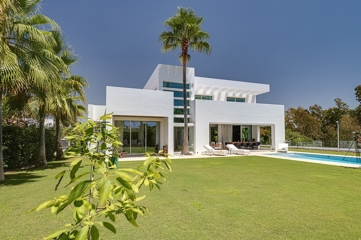 Villa, Casasola – Perfectly presented home in a prime position on a flat plot, in the beachside, close to Guadalmina Baja and walking distance to the beach. The home is an Ibiza style, detached house with private swimming pool. There is a large semi-open plan lounge with fireplace and floor to ceiling windows and natural light from almost every aspect. There is a large covered terrace which can be used in summer and winter. The lounge, main terrace and pool are all on the same level, without any steps. The kitchen is fitted with high end carpentry and appliances including an American style fridge freezer, plate warmer and advanced filter taps for hot and cold, still and sparkling water. There is a spacious master bedroom suite with private terrace, dressing area and a large bathroom which comprises most of the upper floor of the house. There is also a small office on this level. The ground floor also has two ensuite guest bedrooms, as well as a guest lavatory. There is an additional guest bedroom with ensuite bathroom and natural light on the lower ground floor. Features include a gym and spa, with sauna and refrigerated ice bath as well as a separate wine cellar. There is a large garage with space for at least two or three cars. The property is orientated to the south, and has high ceilings and plenty of natural light throughout, as well as very good levels of privacy. Viewings are encouraged.