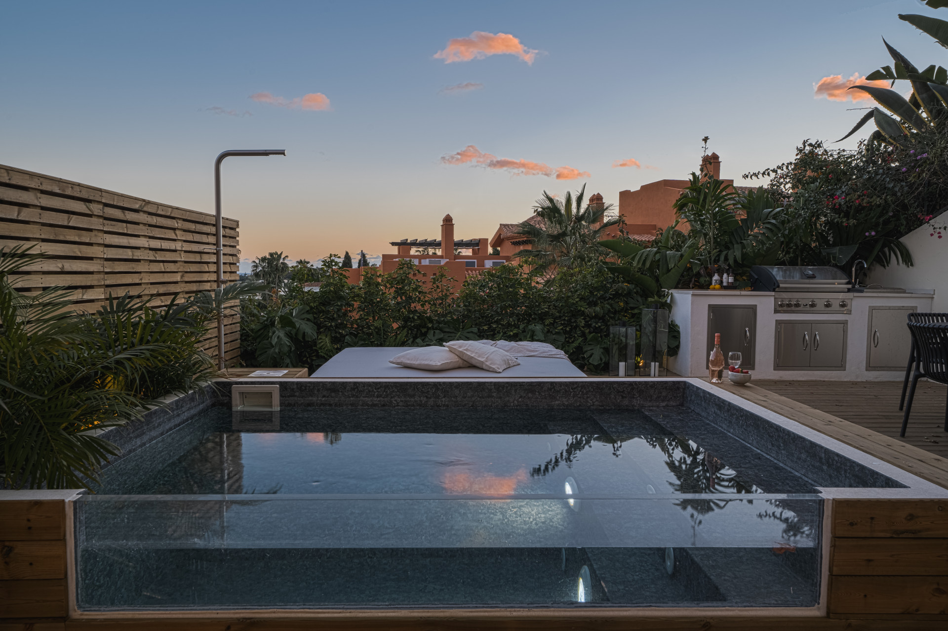 Appartement, La Cerquilla – Apartment for sale in Nueva Andalucía, with 3 bedrooms and 3 bathrooms, with communal swimming pool, private garage and communal garden. Regarding property dimensions, it has 123 m² built and 47 m² terrace. Has the following facilities amenities near, transport near, air conditioning, central heating, utility room, gym, security service 24h, private terrace, sea view, 24h service, gated community, panoramic view, close to sea / beach, close to golf, uncovered terrace, close to town and close to port.