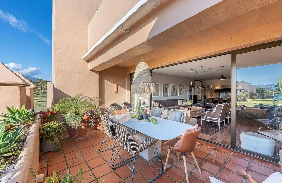 Appartement Terrasse, La Cartuja del Golf – Penthouse for sale in Estepona with 3 bedrooms, 3 bathrooms and with orientation south/west, with communal swimming pool, private garage and communal garden. Regarding property dimensions, it has 185 m² built and 118 m² terrace. Has the following facilities amenities near, transport near, air conditioning, central heating, security service 24h, mountain view, 24h service, gated community, garden view, pool view, panoramic view, tennis / paddle court, close to golf, excellent condition and close to town.