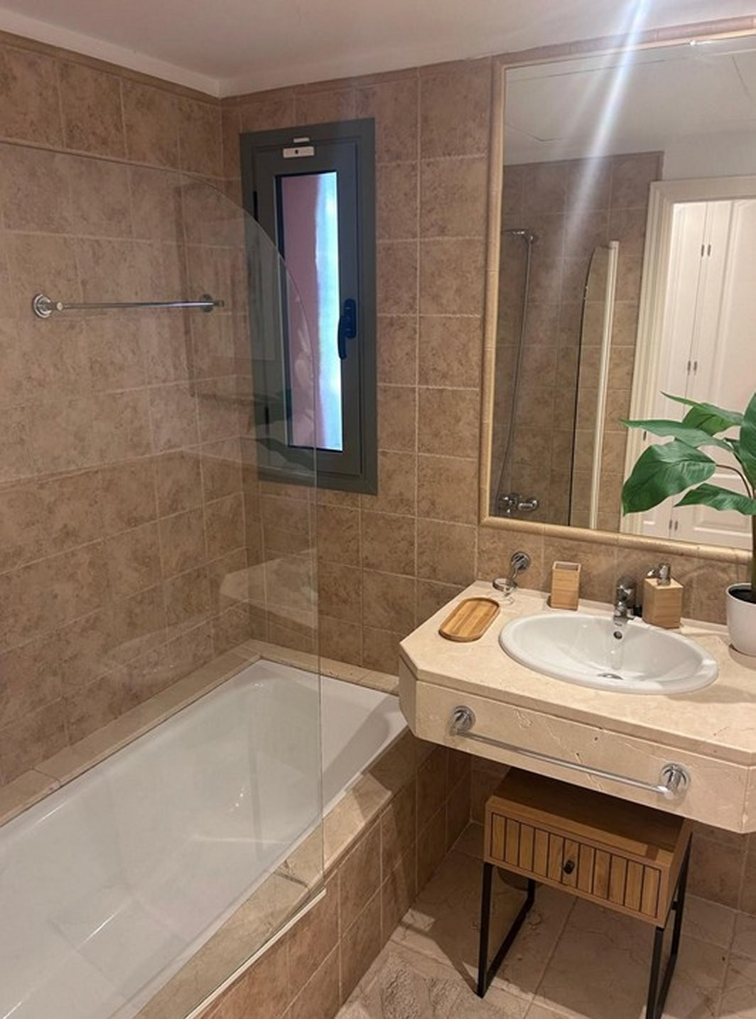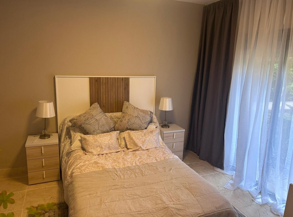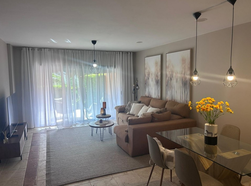 Appartement rez de chaussée, Benatalaya – This beautifully renovated three-bedroom, two-bathroom apartment is located in the exclusive gated community, a prestigious residential area surrounded by golf courses and the rolling green hills of Estepona. Designed with comfort and elegance in mind, the property offers spacious interiors, modern finishes, and a private outdoor space that makes it an ideal home on the Costa del Sol. With a total built area of 135 m², the apartment features a bright living and dining room that opens directly onto a 33 m² west-facing terrace and a private 38 m² garden, perfect for enjoying the Mediterranean lifestyle with family and friends. The interiors have been recently updated, presenting a fresh and contemporary style, while the fully equipped kitchen ensures practicality for everyday living. The three bedrooms are generously sized, and the layout offers both privacy and functionality. The community provides an exceptional range of amenities for its residents. These include several outdoor swimming pools, beautifully landscaped gardens, a spa area with sauna and hammam, and a fully equipped gym. The complex also benefits from 24-hour concierge service and security, ensuring peace of mind and a safe living environment. Its location is one of its strongest advantages. Set between Marbella and Estepona, offers quick access to international schools, supermarkets, restaurants, and all essential services. Estepona town, Puerto Banús, and Marbella are only a short drive away, while the beaches of the Costa del Sol can be reached within minutes. This ground floor apartment combines style, security, and comfort in one of the most desirable areas of Estepona East. It represents an excellent opportunity for families, golfers, and those seeking a tranquil home in a well-connected location.