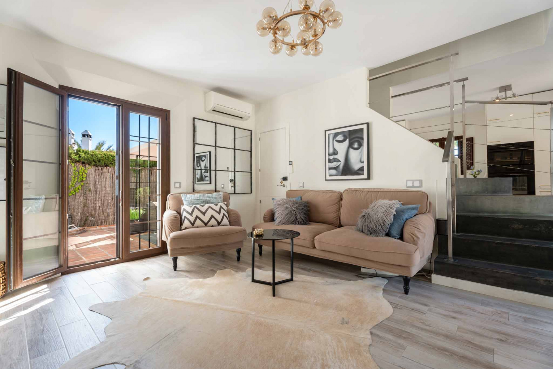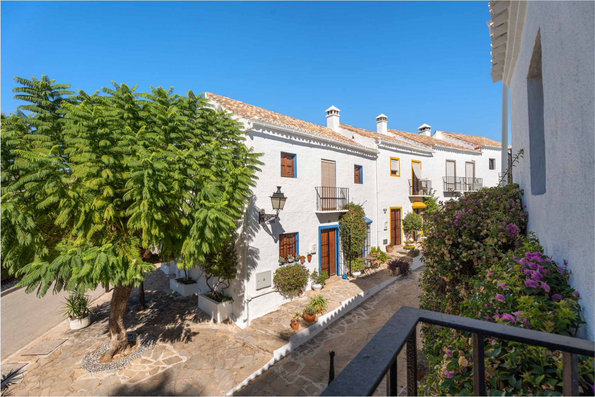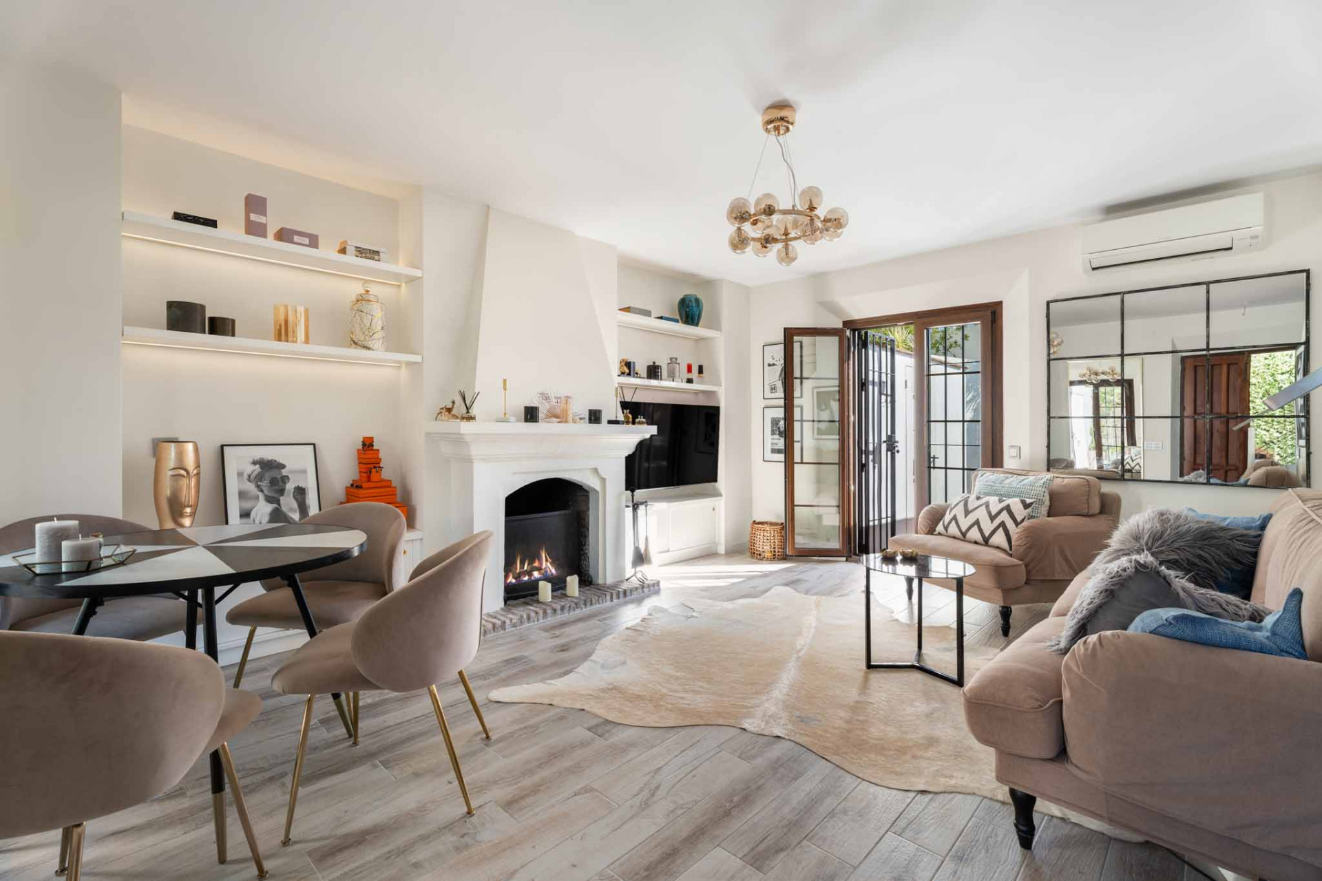 Maison de Ville, El Naranjal – One of Nueva Andalucía’s established gated communities, this townhouse is set in the heart of Marbella’s Golf Valley, surrounded by courses such as Los Naranjos, Real Club Las Brisas, and Aloha Golf. The home has been thoughtfully updated, blending Andalusian charm with modern comfort. The ground floor offers an open-plan living and dining area with a fireplace and direct access to a private terrace framed by Mediterranean greenery. A refurbished kitchen with contemporary finishes connects seamlessly to the living space, creating a functional and inviting layout.