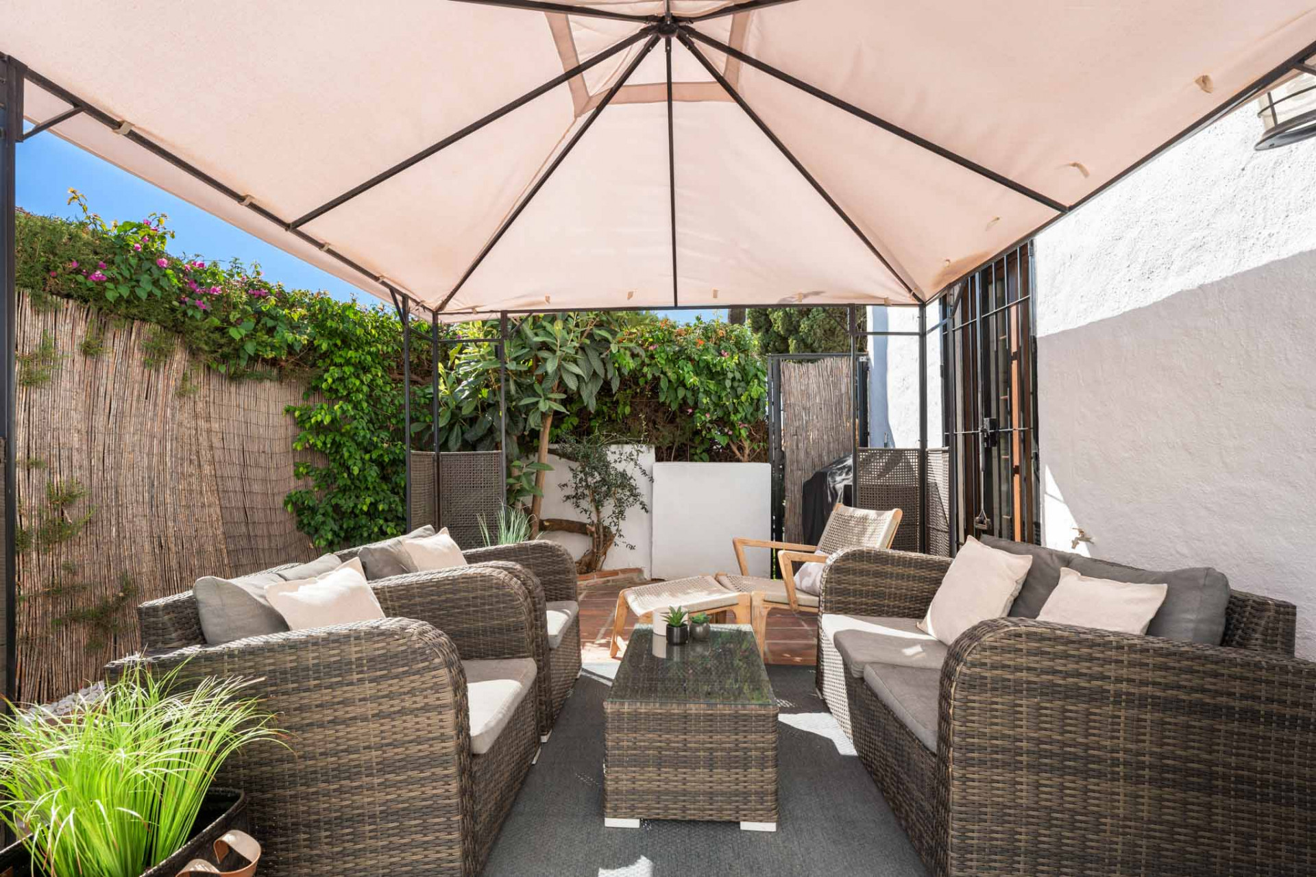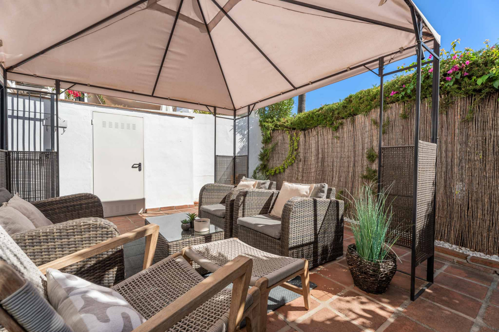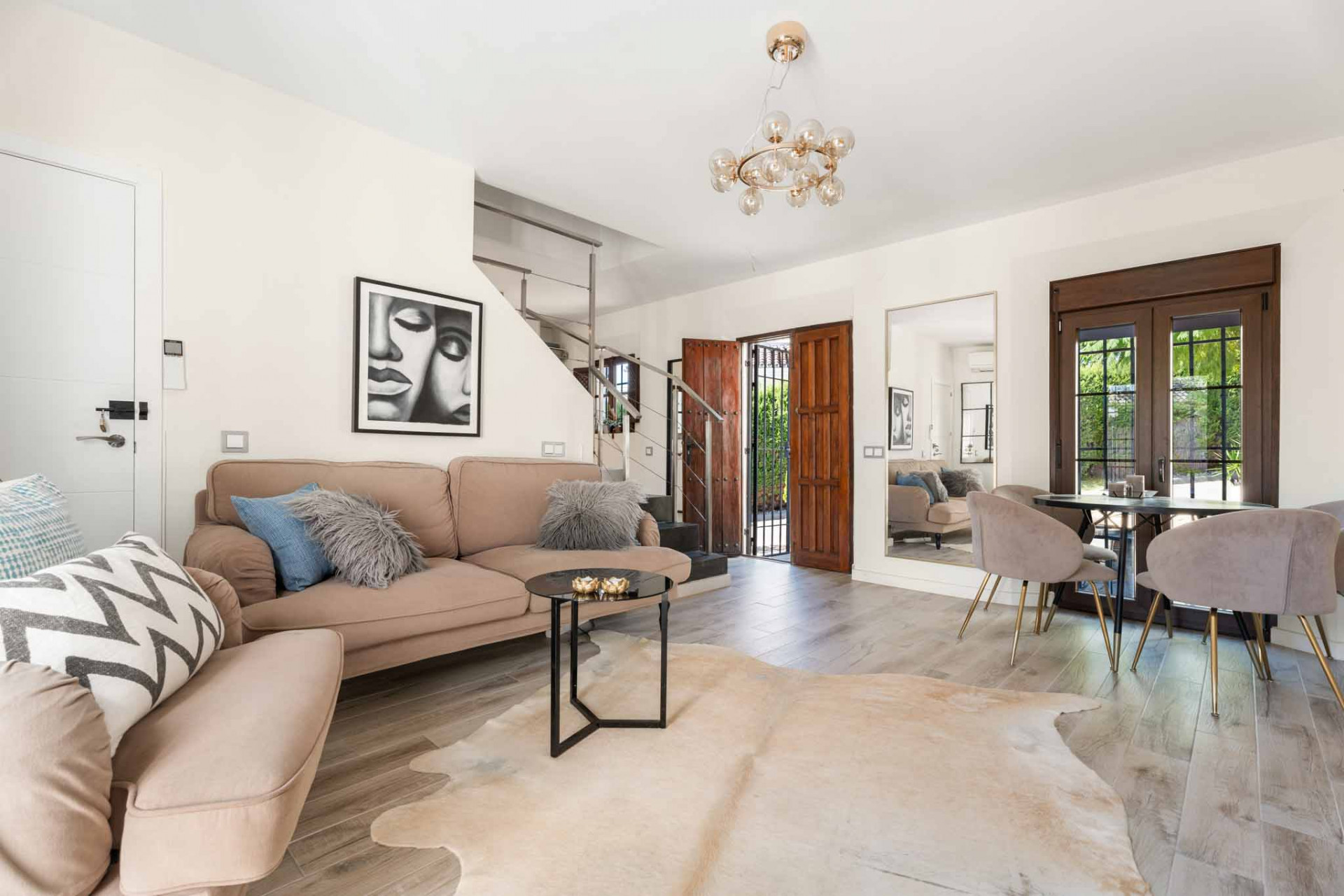 Maison de Ville, El Naranjal – One of Nueva Andalucía’s established gated communities, this townhouse is set in the heart of Marbella’s Golf Valley, surrounded by courses such as Los Naranjos, Real Club Las Brisas, and Aloha Golf. The home has been thoughtfully updated, blending Andalusian charm with modern comfort. The ground floor offers an open-plan living and dining area with a fireplace and direct access to a private terrace framed by Mediterranean greenery. A refurbished kitchen with contemporary finishes connects seamlessly to the living space, creating a functional and inviting layout.