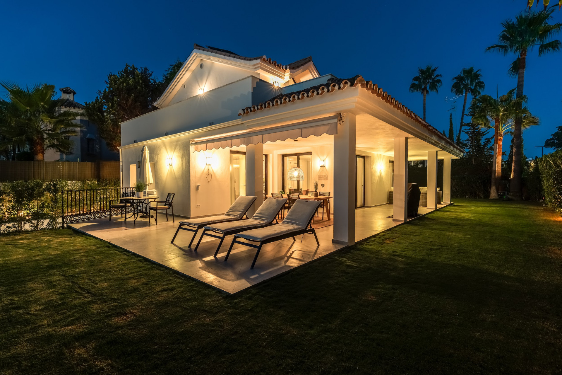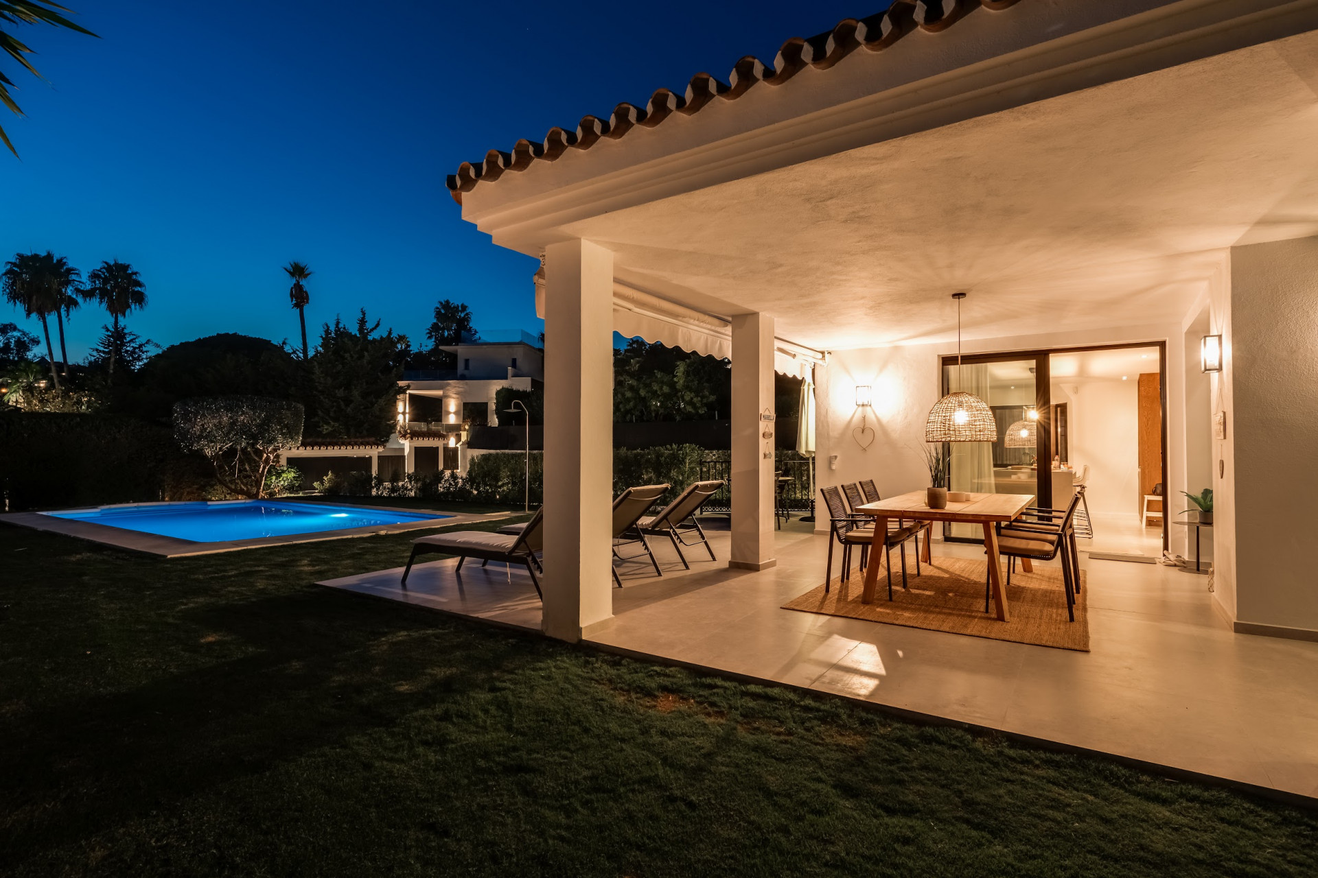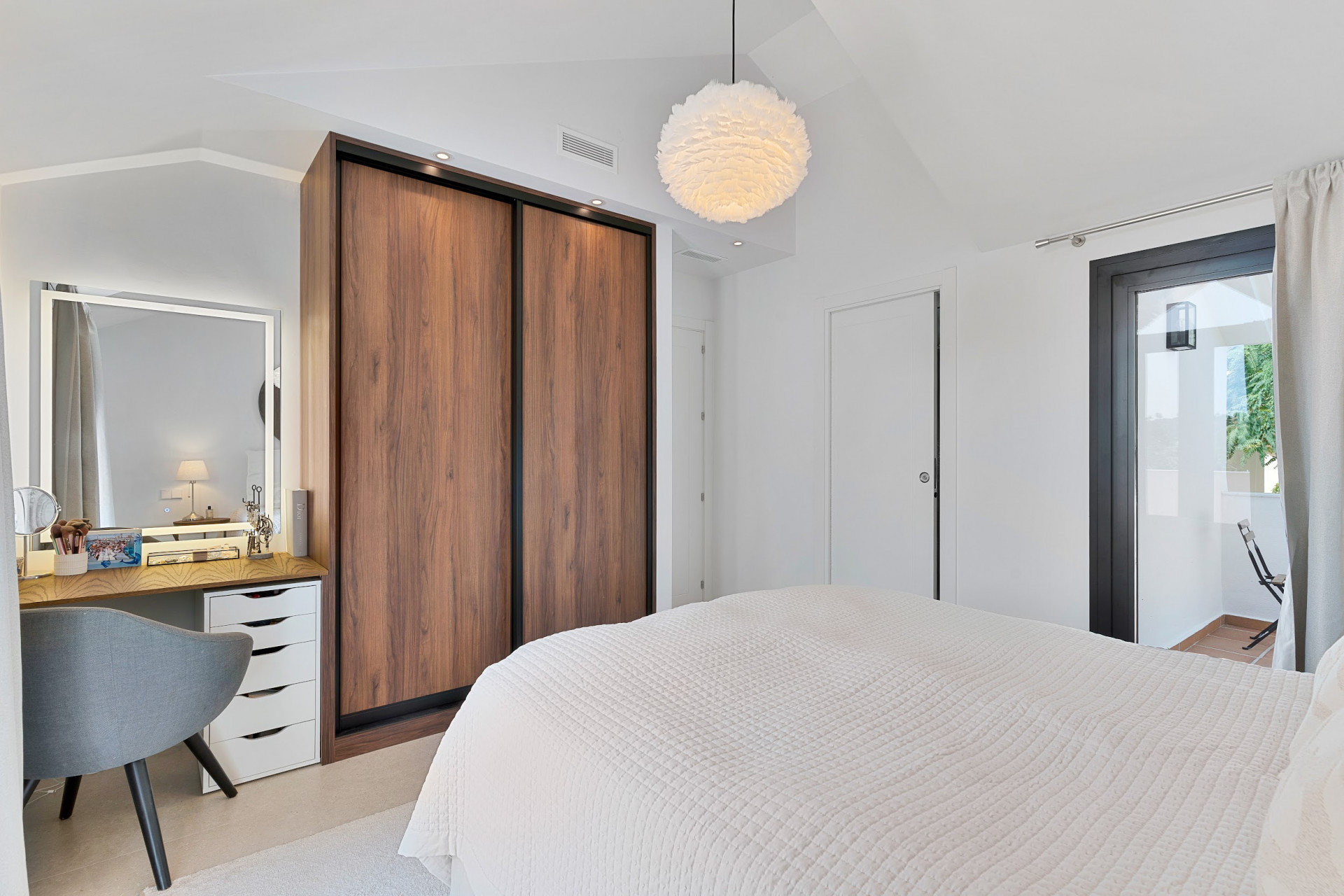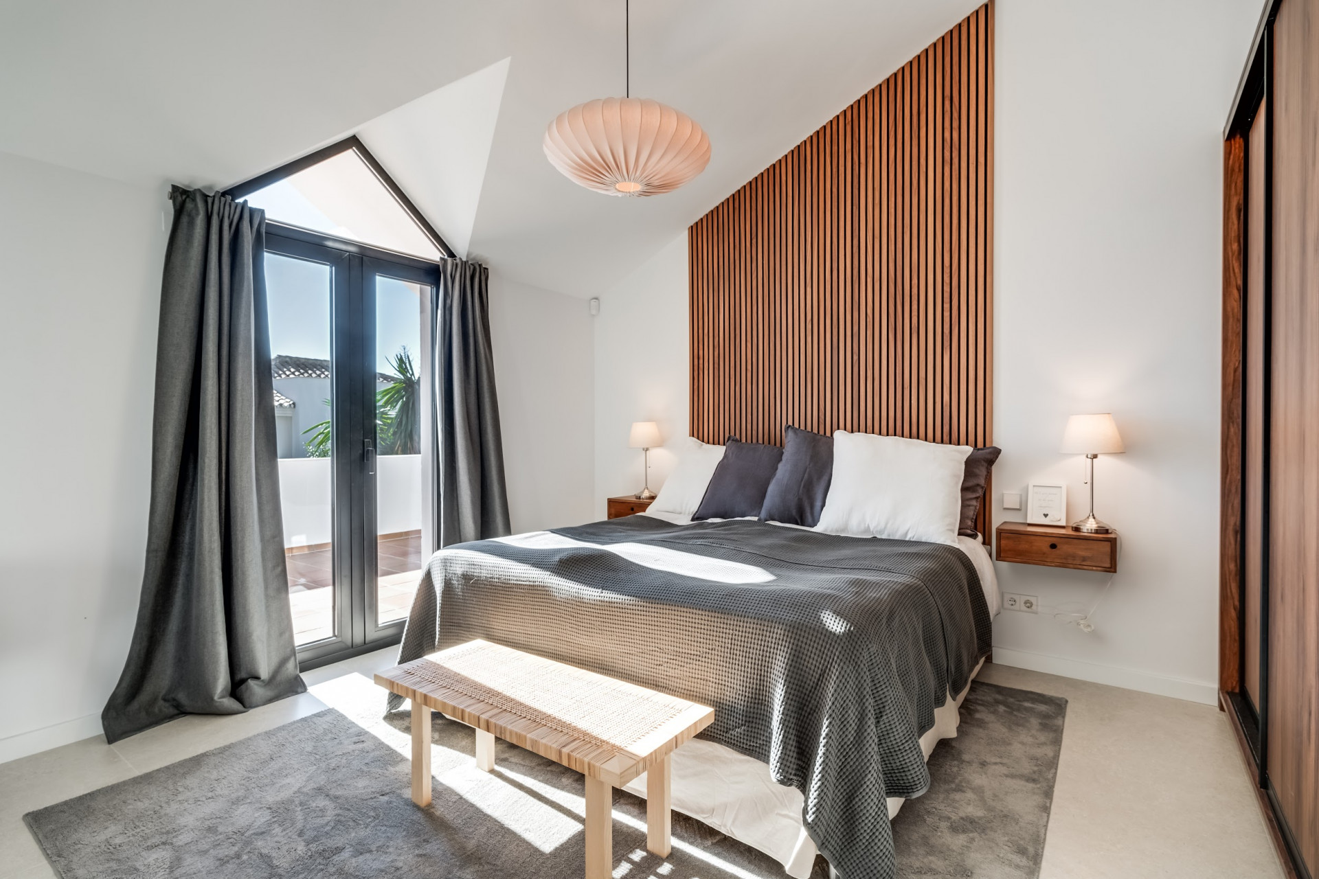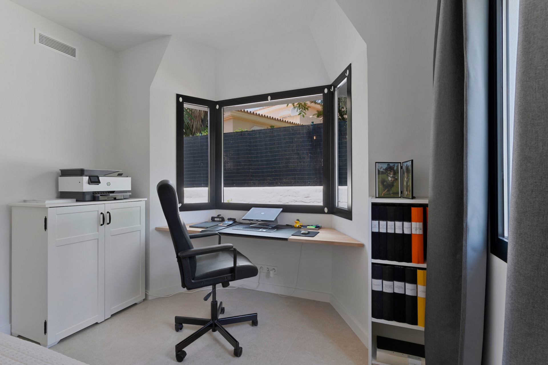 Villa, Supermanzana H – We can now proudly present this newly renovated villa (during 2024) with 4 bedrooms and 4 bathrooms in a prime location in Nueva Andalucia. The villa have 3 levels with social areas and a open floor plan on the entrance level. Kitchen from swedish top Brand Ballingslöv. On the same level you will also have one bedroom and one bathroom with shower. On the top level you have 2 bedrooms with bathrooms en suite and access to a terraces with sun all day. In the basement you have a guest room with bathroom en suite. Laundry room, Gym and a garage with space for at least 2 cars.