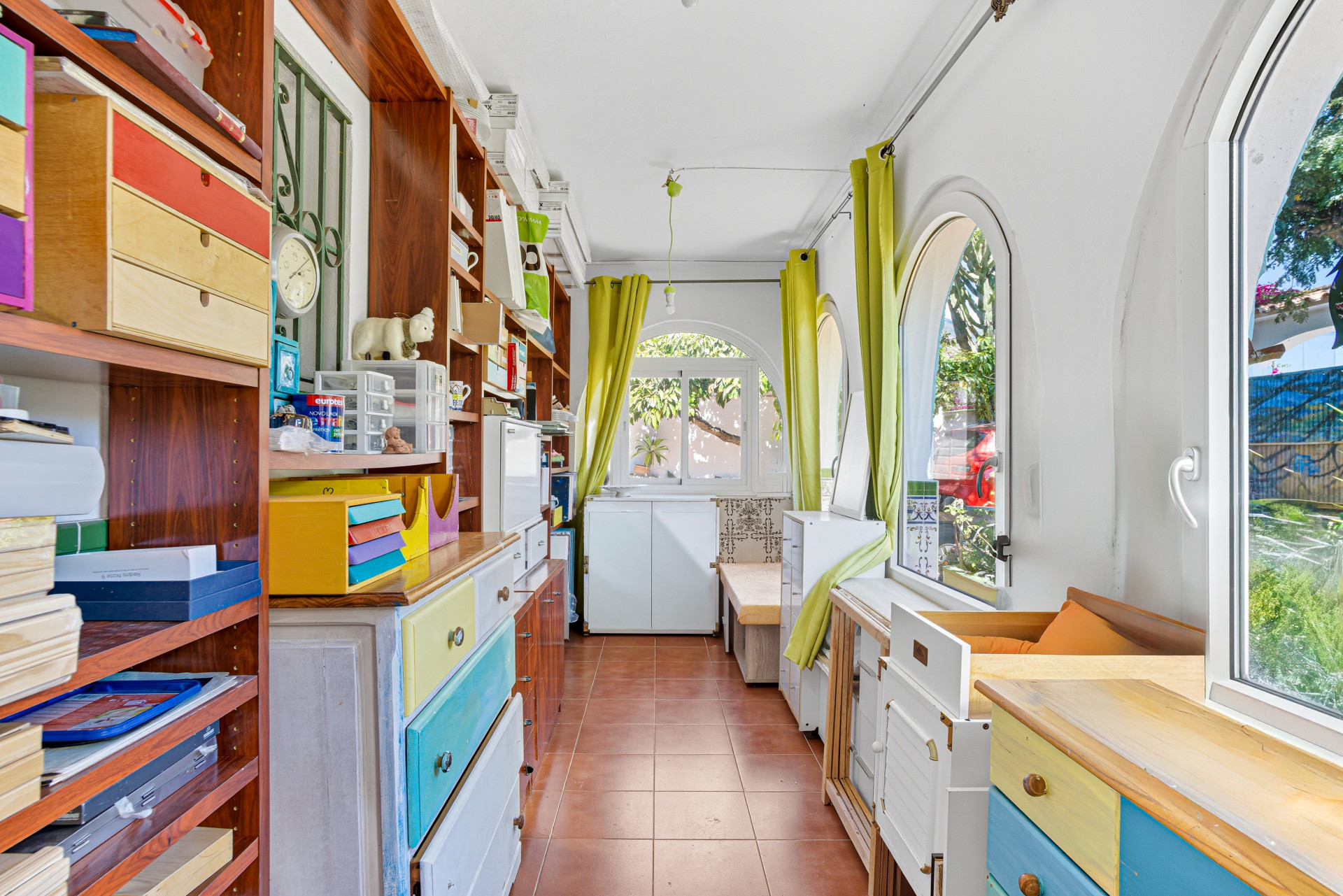 Villa, El Mirador – Unique opportunity in Marbella: this south-west facing single-story home combines charm, comfort, and flexibility with endless potential. The main house offers four spacious bedrooms, two bathrooms, and a guest toilet, while an independent guesthouse with its own kitchen and bathroom allows for the possibility of adding a loft for children. An additional apartment off the living room includes a glass-enclosed lounge, bedroom, and planned laundry room with exterior access, making it ideal for conversion into a separate unit. Outdoor living is enhanced by a private swimming pool, roof terrace, driveway for two cars, and a lush garden with lemon, orange, mango, and avocado trees, alongside decorative plantings that provide beauty all year round. Ideally located in Marbella city center, the property is next to the local hospitals schools, bus stops, gyms, a library, markets, restaurants, sports centers, and green spaces such as La Represa Park. With the additional option to build another level, this home offers both lifestyle appeal and outstanding investment potential.