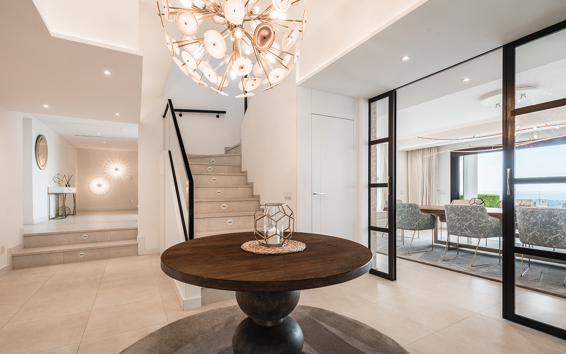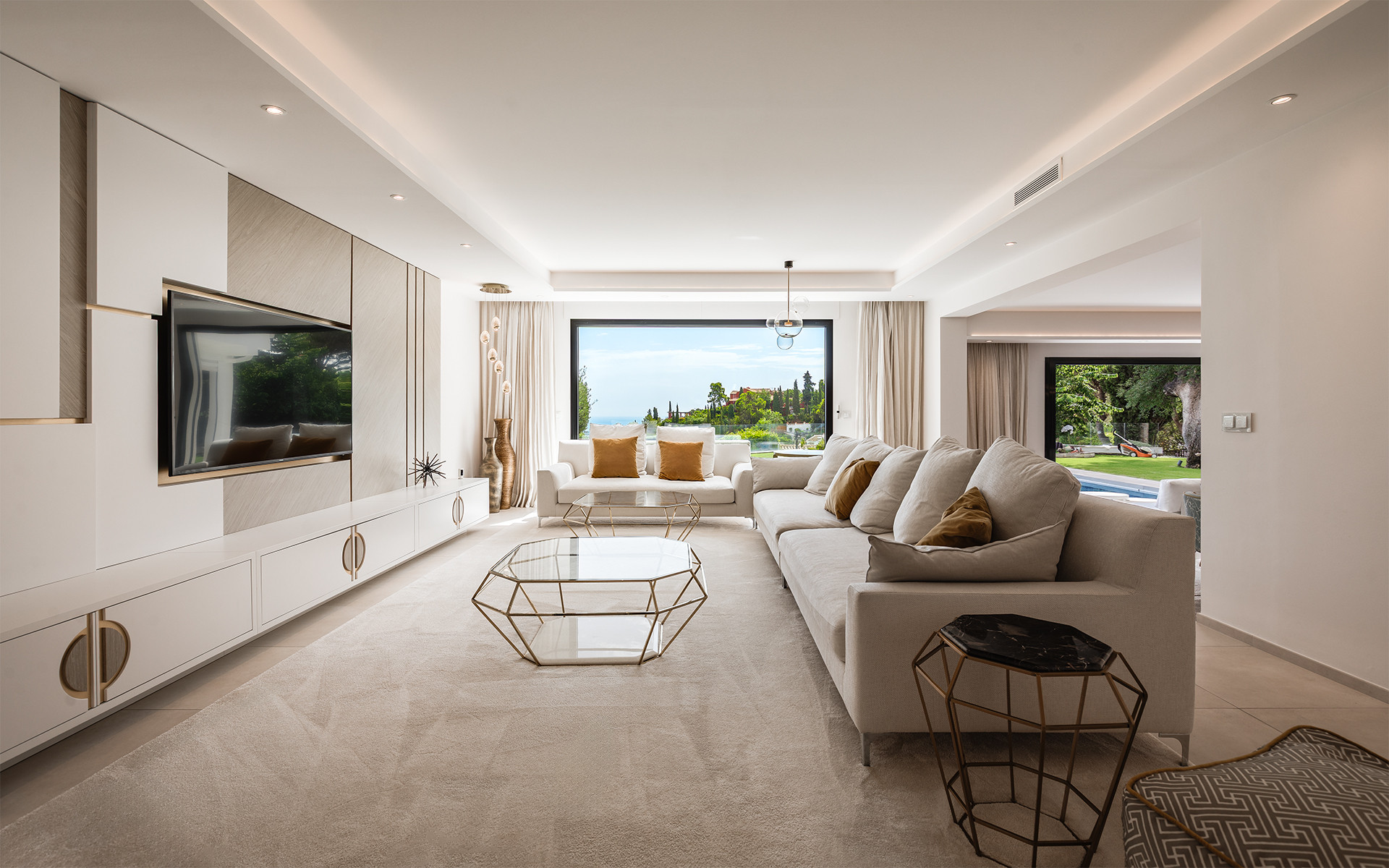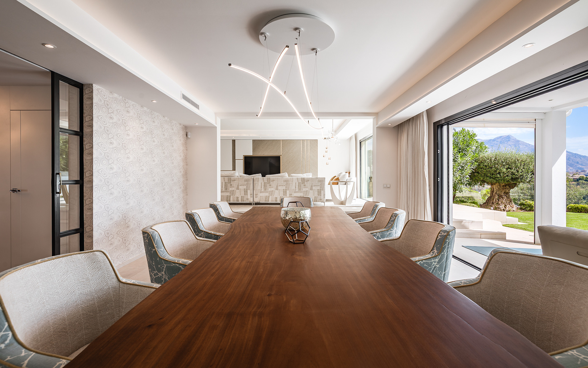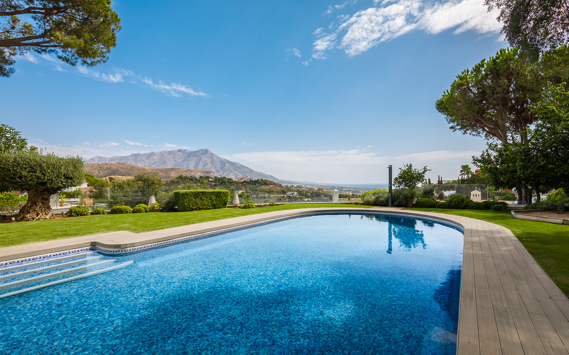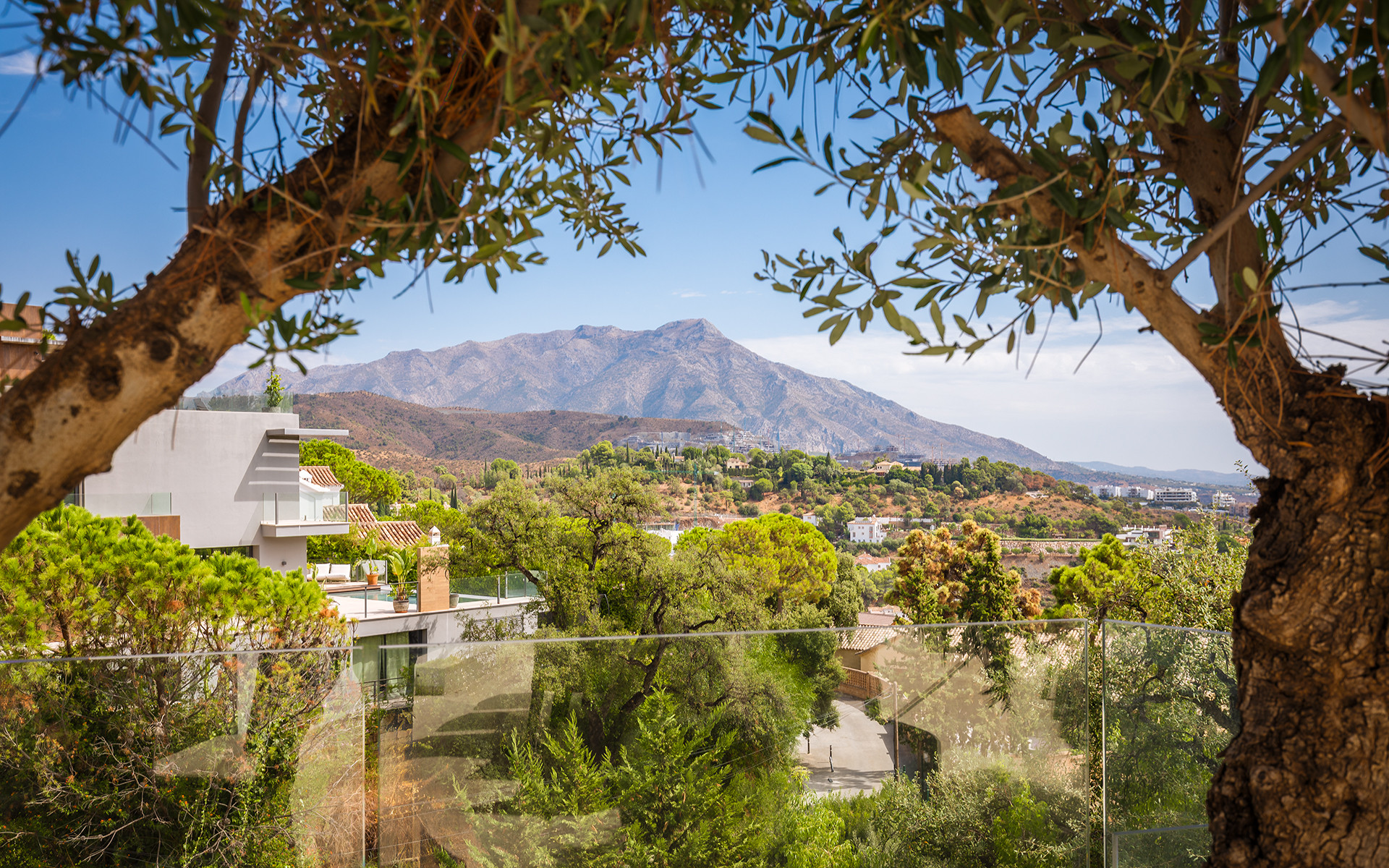 Villa, El Madroñal – Set within the prestigious residential in Benahavís, this elegant villa offers the perfect blend of privacy, nature, and breathtaking panoramic views of the mountains and Mediterranean coastline. The property sits on a generous 1,865 m² plot and features 598 m² of built space distributed over two levels. The main residence comprises five bedrooms and four bathrooms, plus a guest toilet. On the ground floor, you’ll find the living room, dining area, and main kitchen with direct access to spacious terraces and the garden. Just behind it, a convenient summer kitchen provides additional space for cooking and entertaining. This level also includes four en-suite bedrooms, a laundry room, and a storage area. The upper floor is dedicated to the master suite, which offers a bright bedroom, a bathroom with bathtub and shower, a walk-in wardrobe, and a private terrace with stunning views. An independent guest house adds further accommodation, featuring three bedrooms and three bathrooms across two levels, as well as living areas and a kitchen — ensuring total privacy for visitors or staff. Outdoors, the villa boasts an inviting swimming pool, multiple terraces ideal for al fresco dining and relaxation, and a landscaped garden. Parking facilities include a closed garage and two additional covered spaces. Is renowned for its exclusivity, privacy, and unmatched natural surroundings. Despite its serene atmosphere, it is only a short drive from Marbella, Puerto Banús, beaches, renowned golf courses, international schools, and essential services.