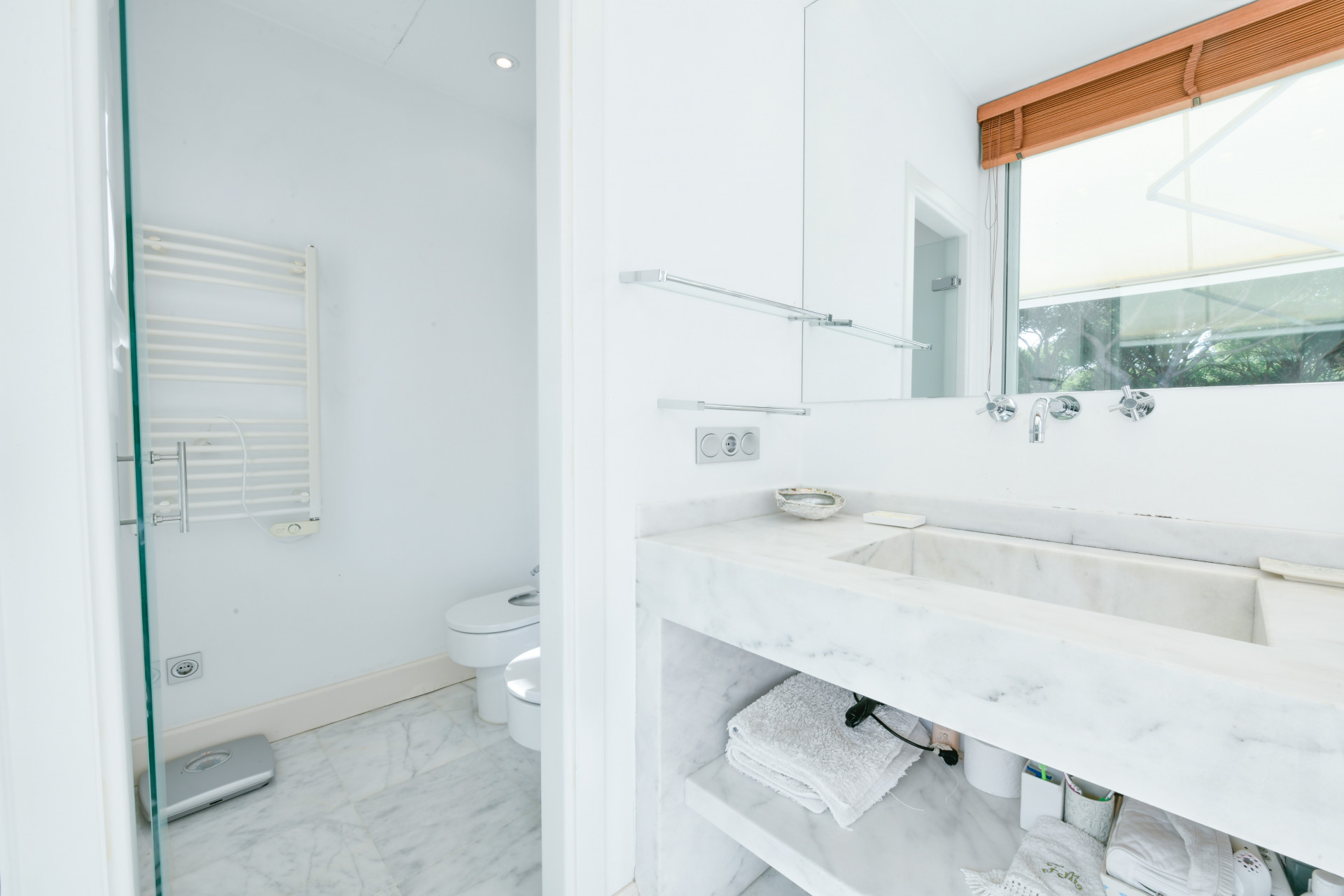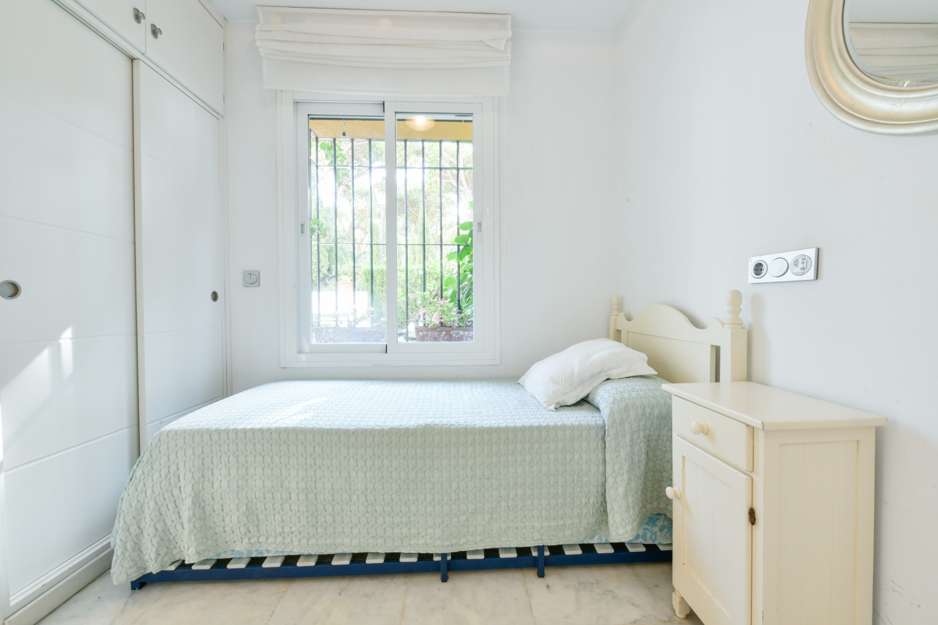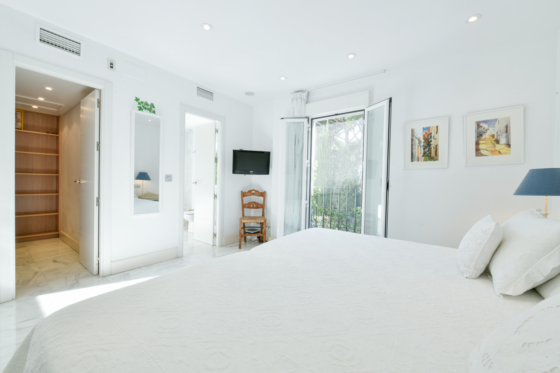 Maison de Ville, Marbellamar – Presented as an exclusive luxury townhouse, this property is located in the prestigious development, on Marbella’s sought-after Golden Mile, just 50 meters from the beach. Its privileged location allows easy walking access to all kinds of shops, restaurants, and the famous Marbella Club, offering a unique experience in one of the most sought-after areas of the Costa del Sol. The house has been completely renovated and is in excellent condition, notable for its tranquil setting and panoramic views of the sea and mountains that enhance its appeal. The home has a constructed area of 225 m² distributed across four spacious bedrooms, and a guest bedroom, all with en-suite bathrooms, as well as a guest toilet. The master bedroom is especially spacious and includes an elegant dressing room and an open bathroom with direct access to a private solarium, ideal for enjoying the sun and the views. Among the construction and comfort details are marble floors, double glazing, built-in wardrobes, an aerothermal system, individual air conditioning in all rooms, and solar panels for greater energy efficiency. The property is equipped with a private elevator that connects all floors, thus facilitating internal access. In the living area, the house offers a spacious living room, a fully equipped kitchen, a laundry room, and two private terraces. The terraces provide ideal spaces for leisure and relaxation. Furniture is optional, allowing the home to be adapted to personal preferences. The property also includes a private parking space. Development has excellent community facilities, such as a swimming pool, well-kept gardens, a paddle tennis court, a tennis court, a soccer field, and a playground, making it a perfect option for families. It also has a security guard. Its proximity to schools, shops, public transportation, and all necessary services guarantees comfortable and exclusive living by the sea in Marbella.