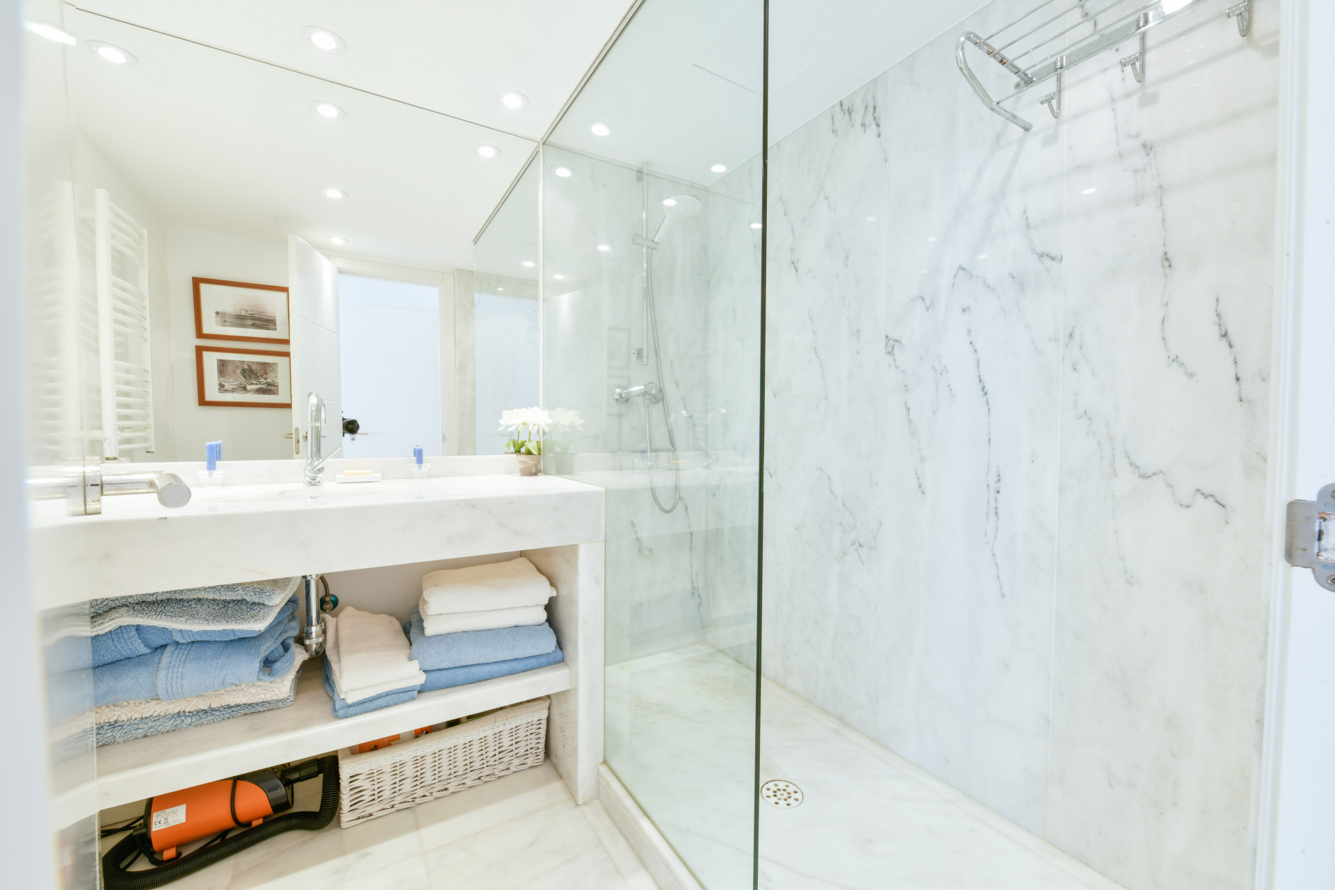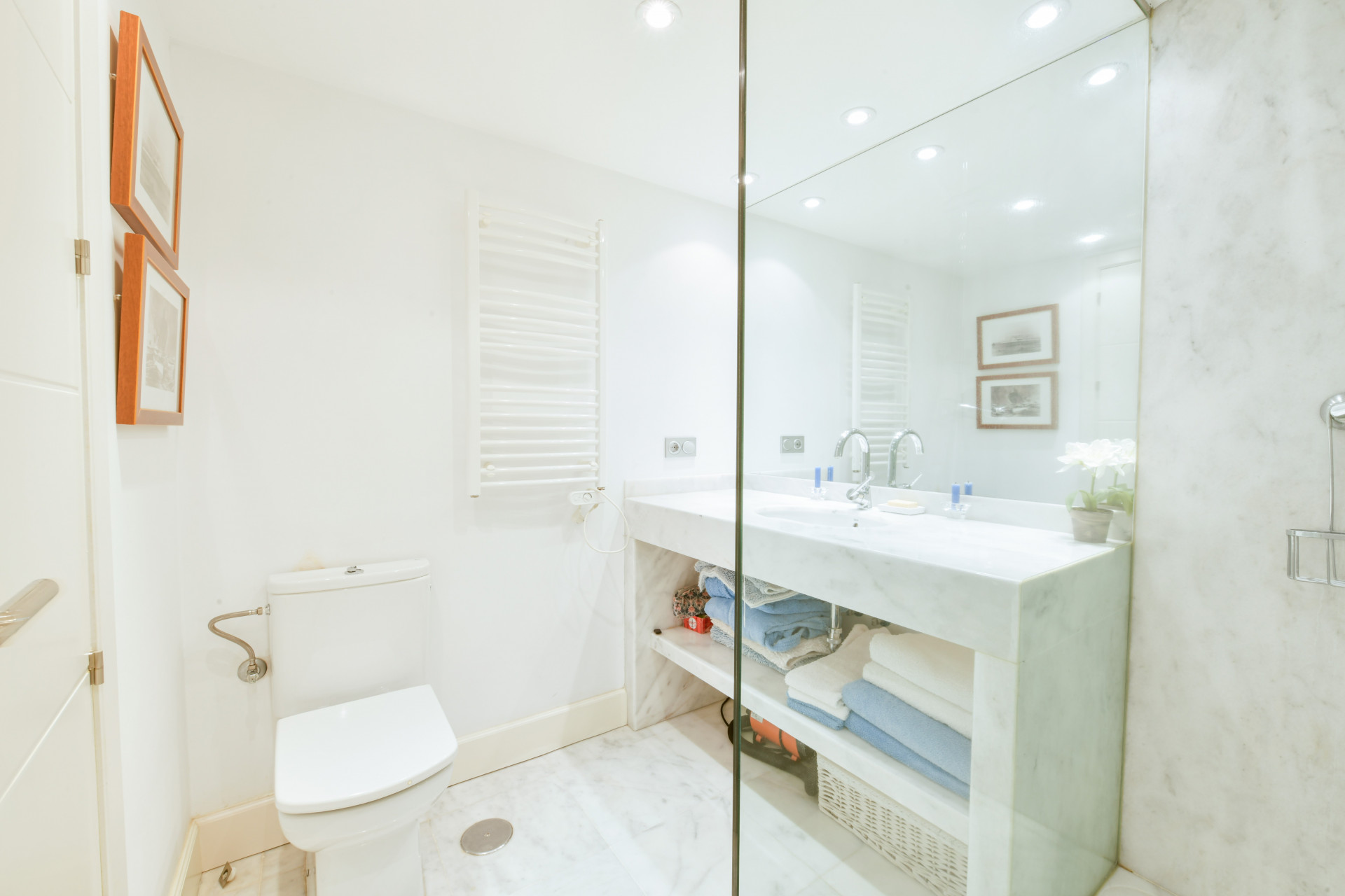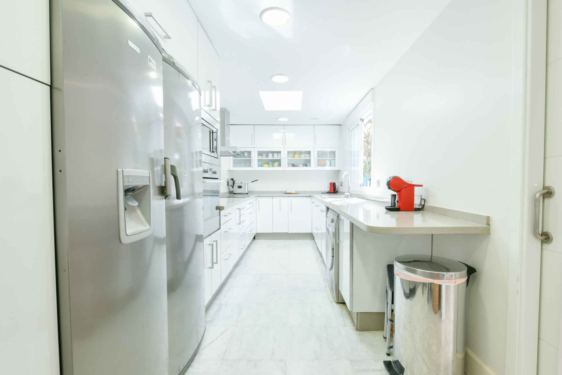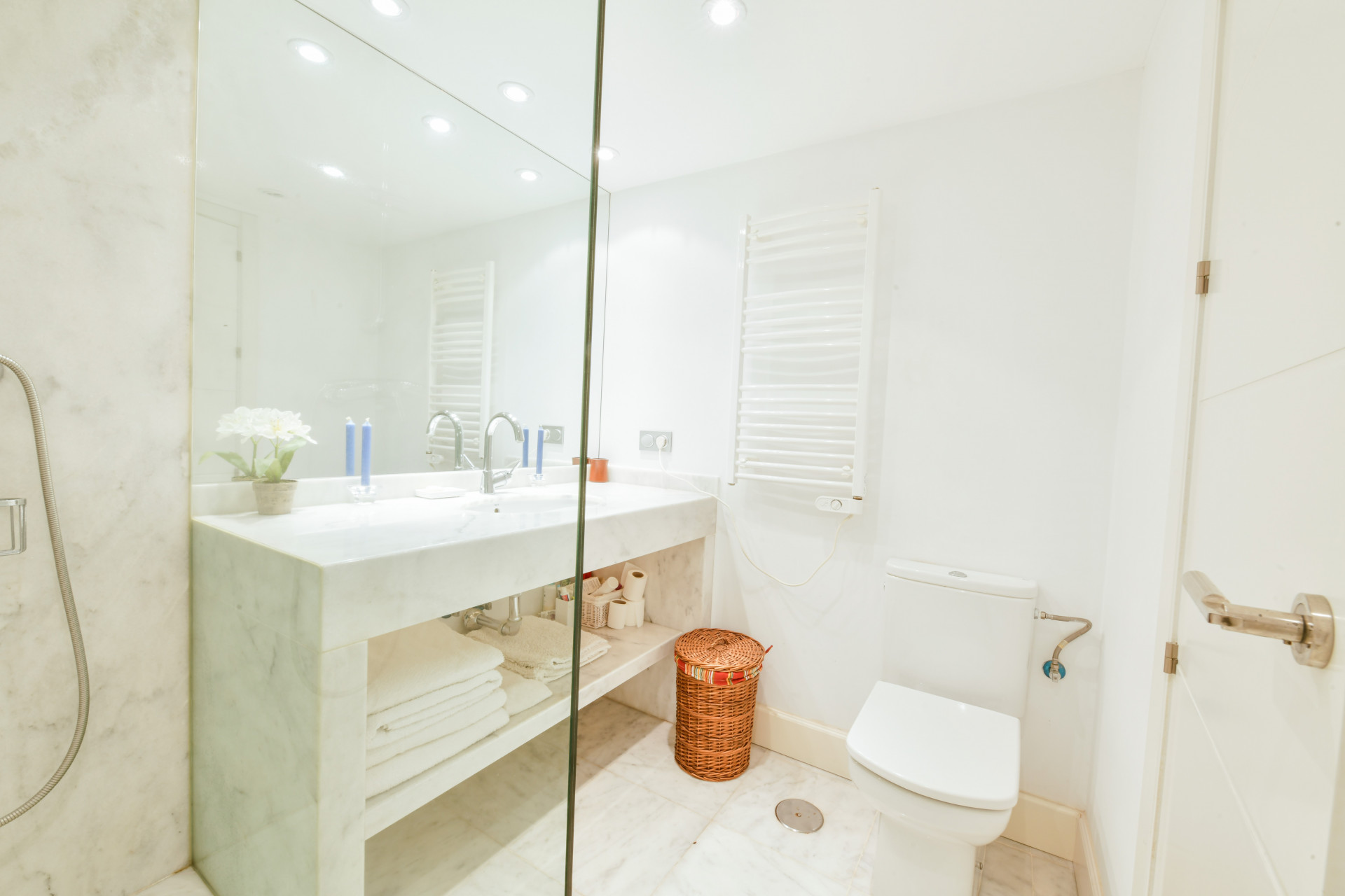 Maison de Ville, Marbellamar – Presented as an exclusive luxury townhouse, this property is located in the prestigious development, on Marbella’s sought-after Golden Mile, just 50 meters from the beach. Its privileged location allows easy walking access to all kinds of shops, restaurants, and the famous Marbella Club, offering a unique experience in one of the most sought-after areas of the Costa del Sol. The house has been completely renovated and is in excellent condition, notable for its tranquil setting and panoramic views of the sea and mountains that enhance its appeal. The home has a constructed area of 225 m² distributed across four spacious bedrooms, and a guest bedroom, all with en-suite bathrooms, as well as a guest toilet. The master bedroom is especially spacious and includes an elegant dressing room and an open bathroom with direct access to a private solarium, ideal for enjoying the sun and the views. Among the construction and comfort details are marble floors, double glazing, built-in wardrobes, an aerothermal system, individual air conditioning in all rooms, and solar panels for greater energy efficiency. The property is equipped with a private elevator that connects all floors, thus facilitating internal access. In the living area, the house offers a spacious living room, a fully equipped kitchen, a laundry room, and two private terraces. The terraces provide ideal spaces for leisure and relaxation. Furniture is optional, allowing the home to be adapted to personal preferences. The property also includes a private parking space. Development has excellent community facilities, such as a swimming pool, well-kept gardens, a paddle tennis court, a tennis court, a soccer field, and a playground, making it a perfect option for families. It also has a security guard. Its proximity to schools, shops, public transportation, and all necessary services guarantees comfortable and exclusive living by the sea in Marbella.