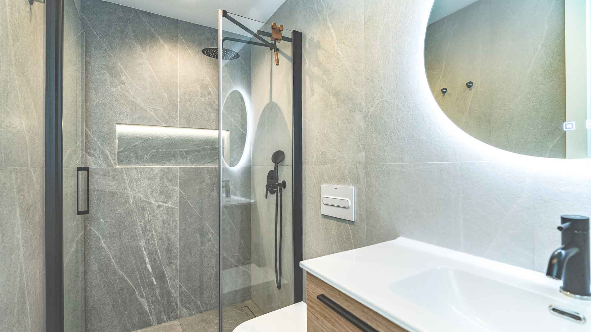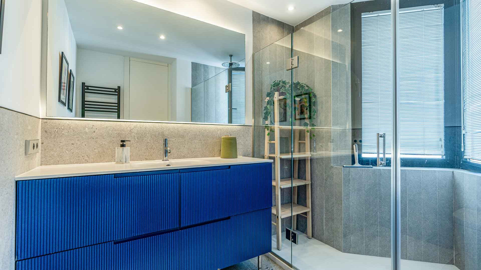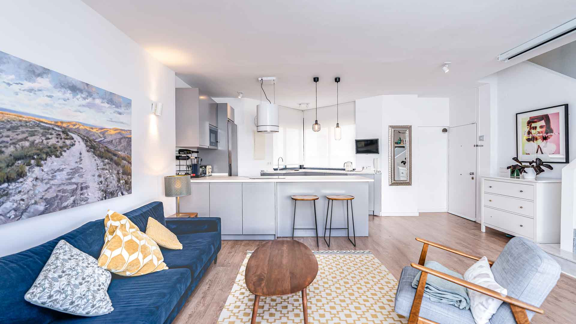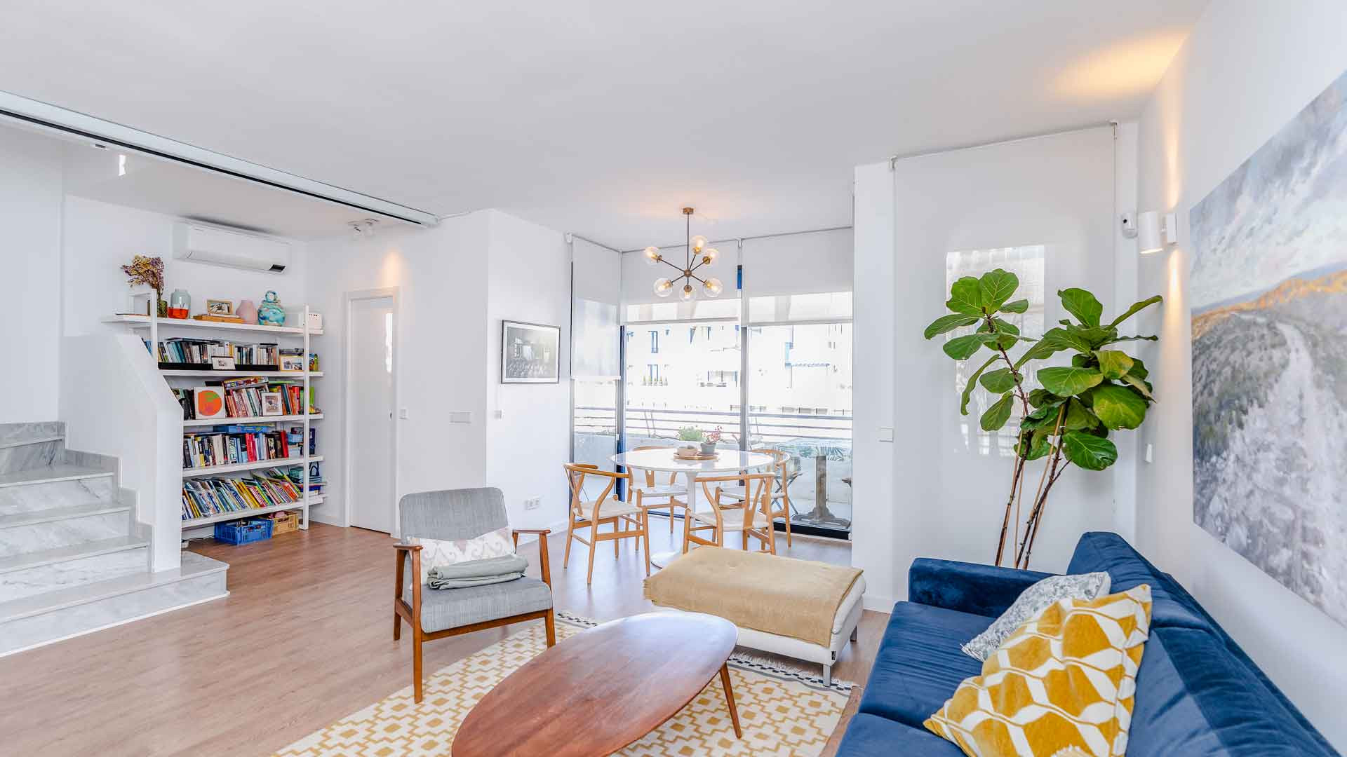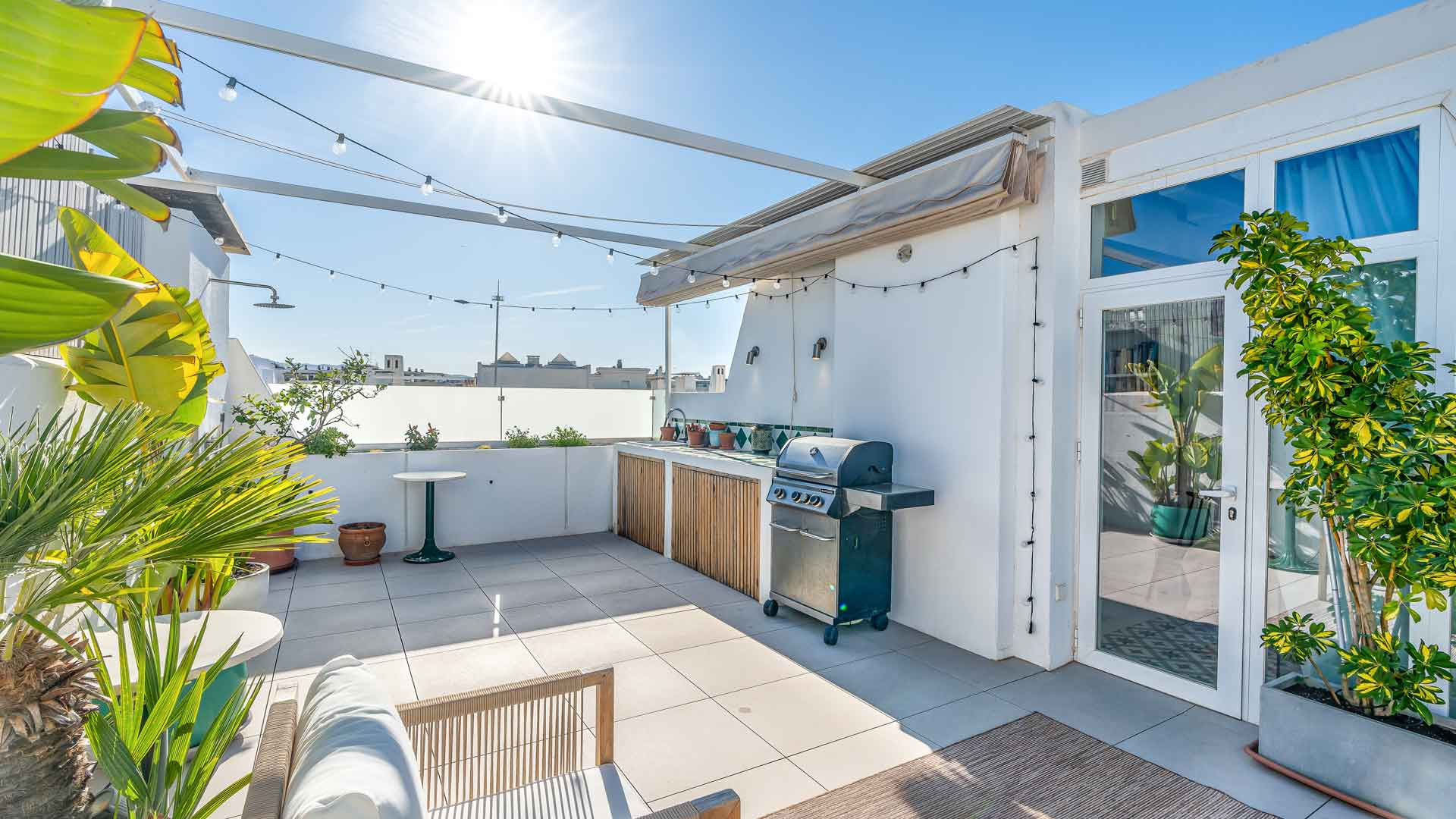 Appartement Terrasse, Marbella House – Penthouse in Marbella urbanization with sea views for sale. Located in the second line beach complex in Marbella, this penthouse offers an unbeatable combination of luxury, privacy and sea views. Situated just steps away from the Paseo Maritimo, this completely refurbished penthouse is located in one of the most desirable areas of Marbella. With a privileged orientation, each floor is designed to make the most of the surroundings, natural light and views of the Mediterranean. On the main floor, the open-plan living room opens onto a spacious terrace, ideal for relaxing or entertaining outdoors. The modern and fully equipped kitchen is stylishly integrated into the overall design of the property, offering functionality and elegance. On the same floor there is a toilet with natural light.