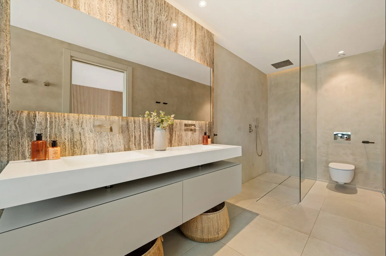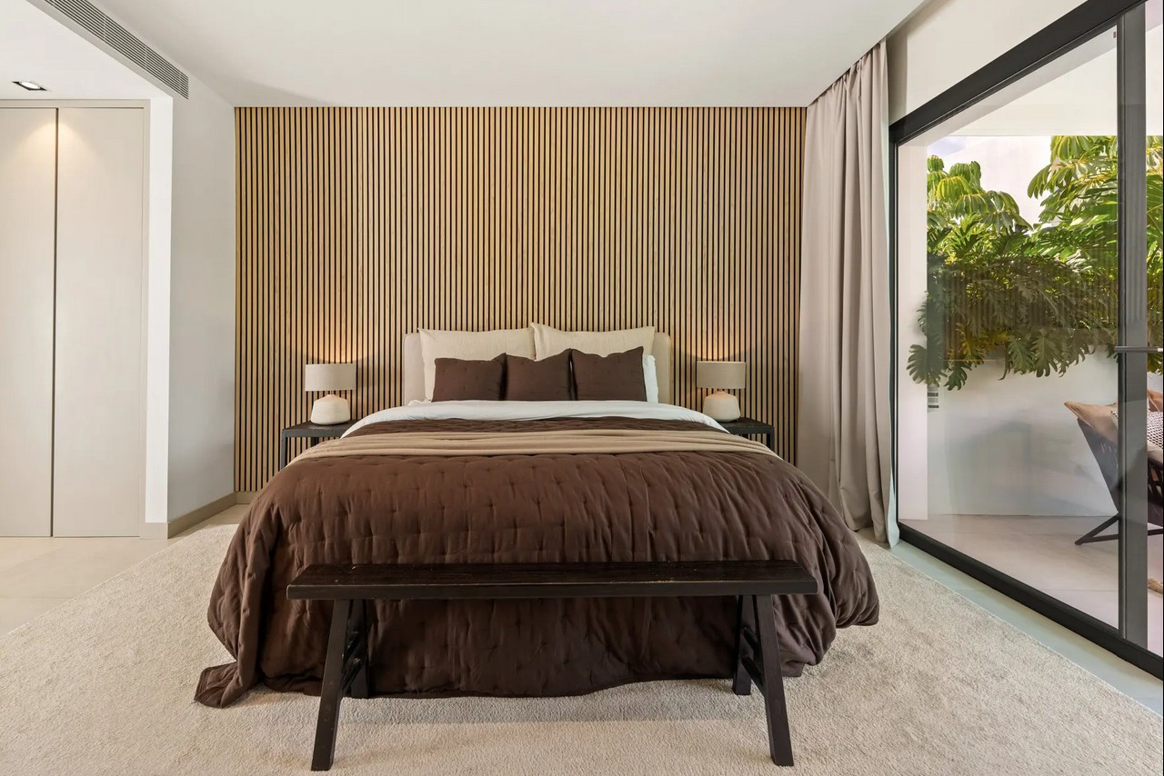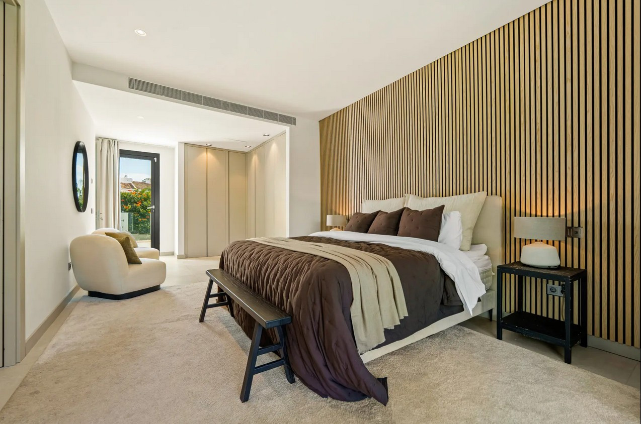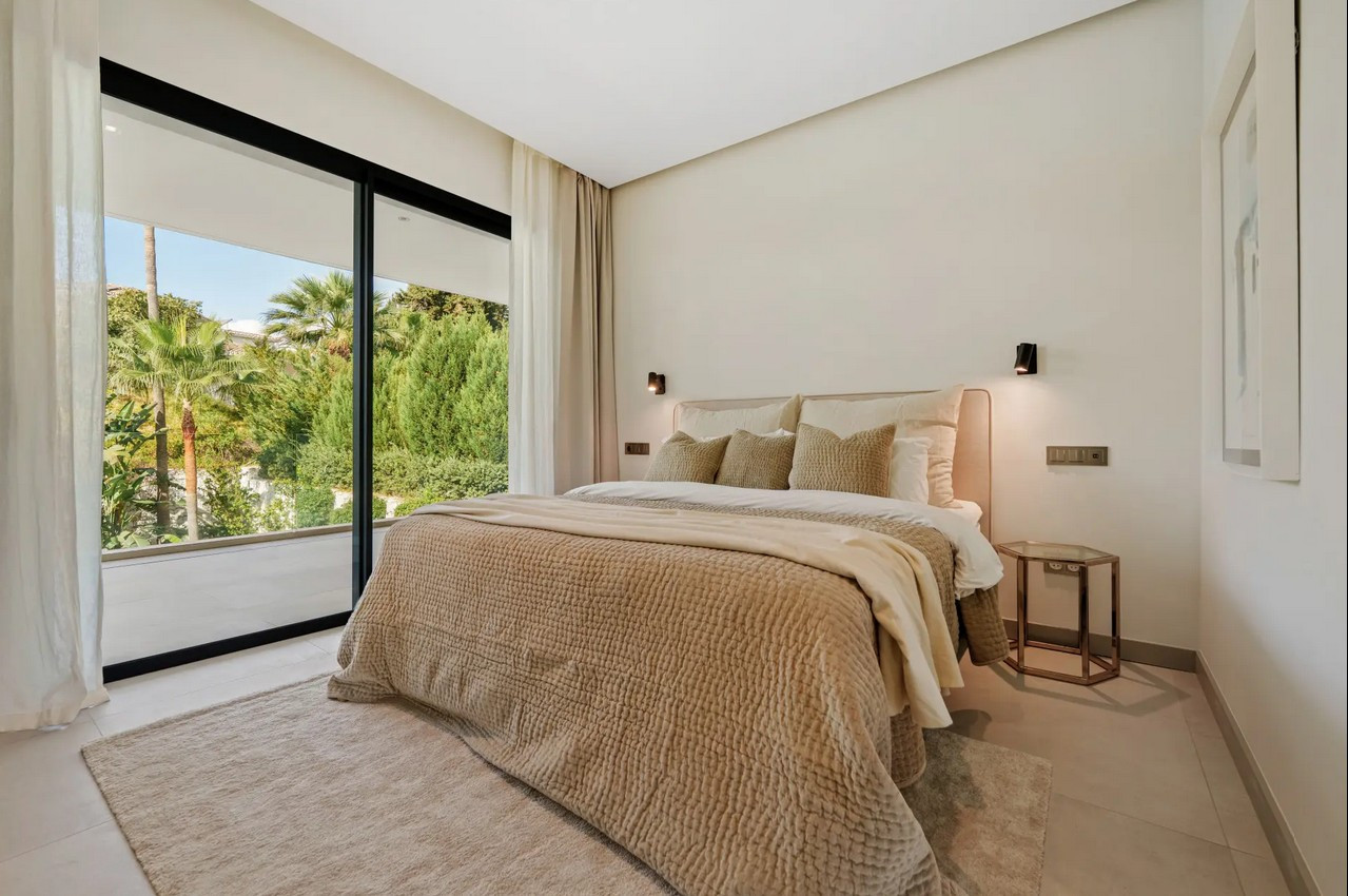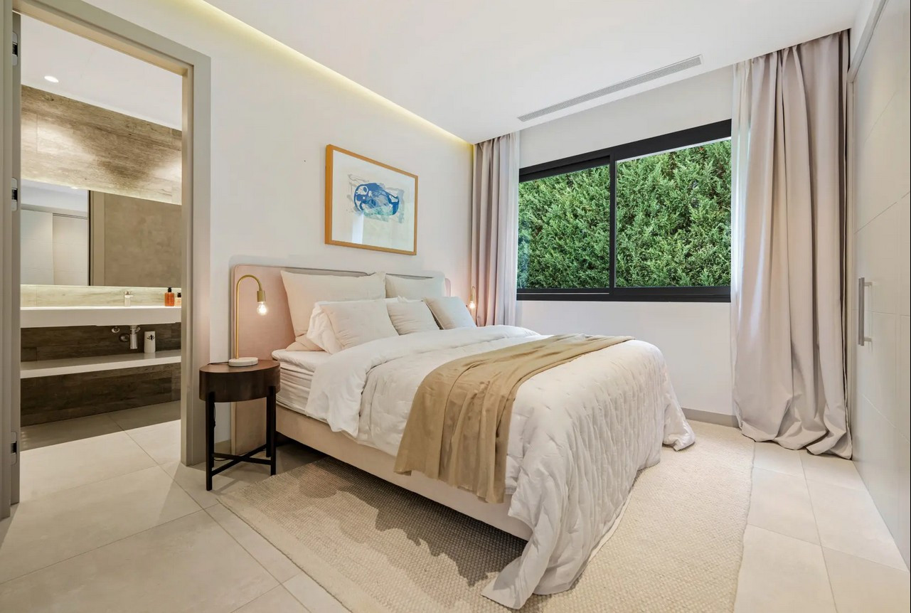 Villa, Nueva Andalucia – Located in the sought-after area of Nueva Andalucía, just minutes from Puerto Banús, is a beautifully presented contemporary villa combining style, comfort, and functionality. The home features open-plan living areas with large sliding doors that seamlessly connect the interior with the outdoor spaces. Natural light fills the spacious lounge and dining areas, while the modern kitchen is equipped with sleek cabinetry and a generous island for casual dining. The property offers multiple stunning terraces and a private garden with a pool, creating the perfect setting for relaxation and entertaining. The rooftop solarium adds an exceptional touch, complete with a jacuzzi, outdoor dining area, and built-in barbecue, all framed by panoramic views of the surrounding neighbourhood. Each bedroom is designed with sophistication and warmth, featuring fitted wardrobes and elegant ensuite bathrooms. Additional highlights include a private cinema and entertainment room, a fully equipped home gym, and a secure private garage.Is an ideal modern residence in one of Marbella’s most desirable locations, offering refined living close to beaches, golf, and all amenities.