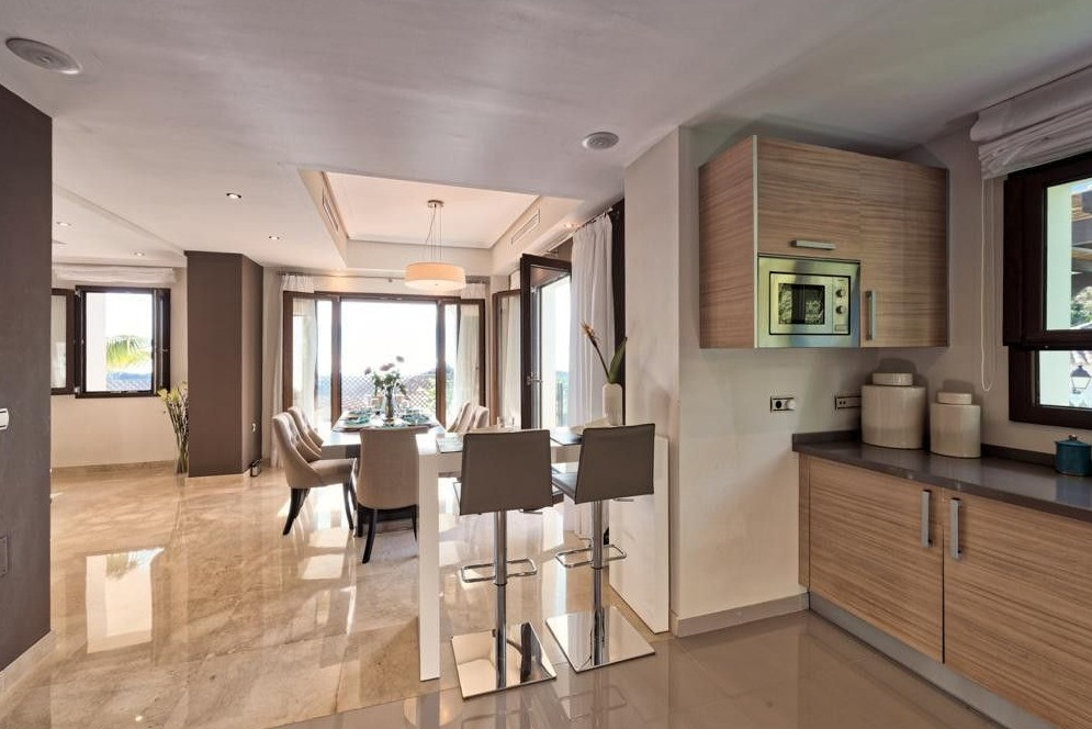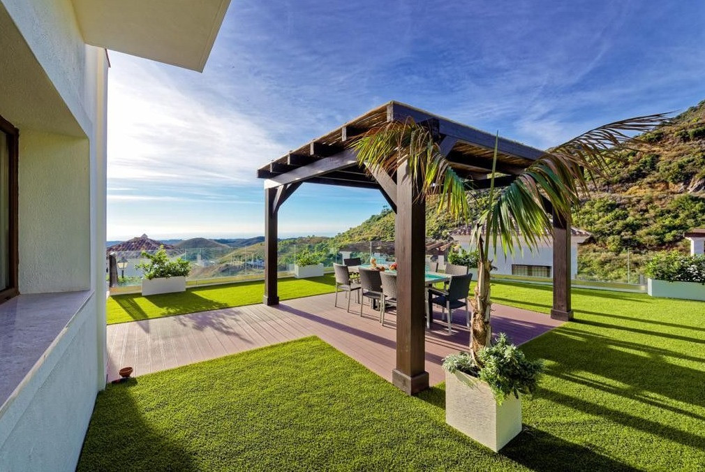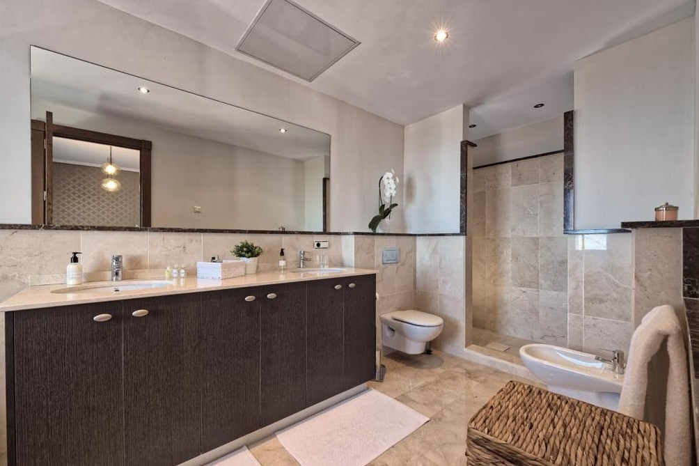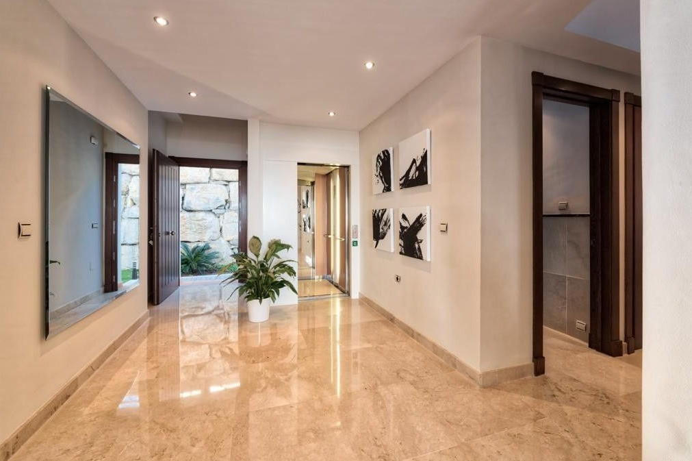 Villa, Benahavis Hills Country Club – Located in the prestigious gated and 24-hour secured urbanisation of Benahavis, this impressive 5-bedroom, 7-bathroom villa offers exceptional privacy, generous space, and panoramic views of the Mediterranean Sea and surrounding mountains. With only 40 villas in total, the community provides a serene and exclusive atmosphere surrounded by nature. Built in 2012, the property retains its original contemporary design, featuring bright interiors, open living areas, and plenty of potential for modern upgrades or personal touches. The villa is also equipped with an elevator, providing convenient access to all levels. Facing south, it enjoys sunlight throughout the day and spectacular evening sunsets. The exterior includes a large private and heated swimming pool and an open-air dining area, ideal for entertaining or simply relaxing while taking in the views. The spacious two-car garage provides direct access to the house. The huge basement already features a fully equipped guest suite, along with additional space that can be customized into a gym, cinema, or entertainment area, offering endless possibilities for expansion. Just five minutes from the charming village of Benahavis, renowned for its gastronomy and natural beauty, the location also offers easy access to renowned golf courses, top international schools, and the luxury destinations of Marbella and Puerto Banús. This villa perfectly combines comfort, space, and privacy in one of the Costa del Sol’s most sought-after gated developments.