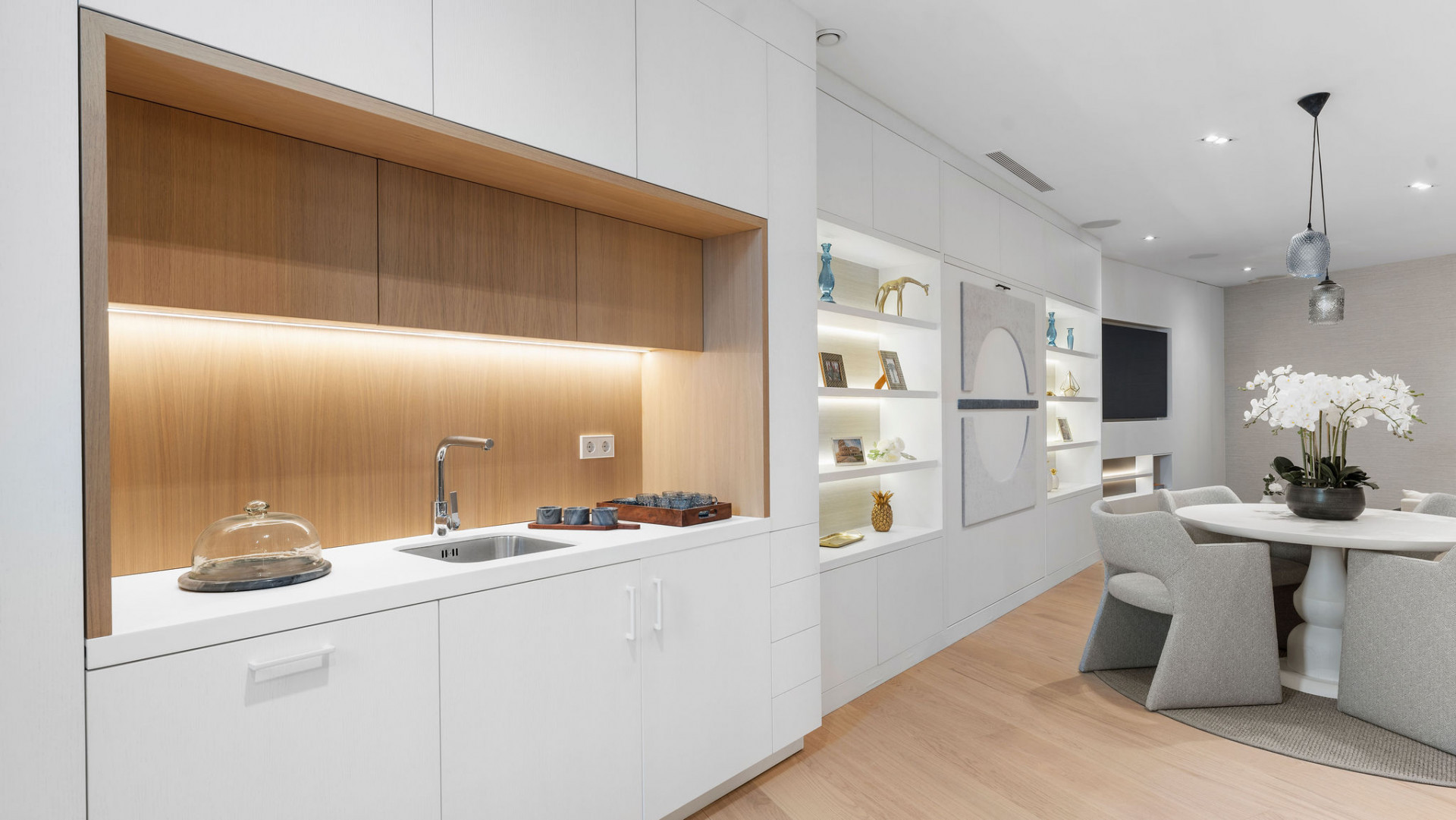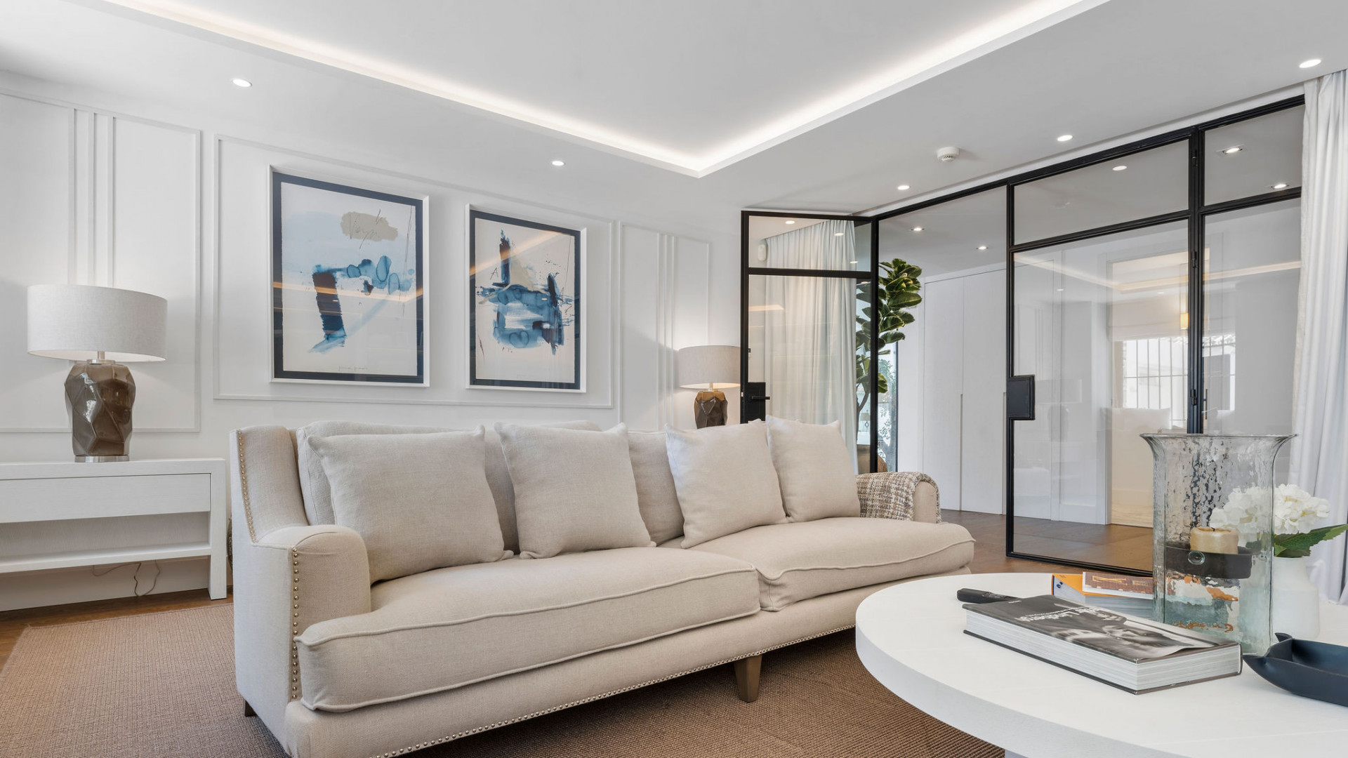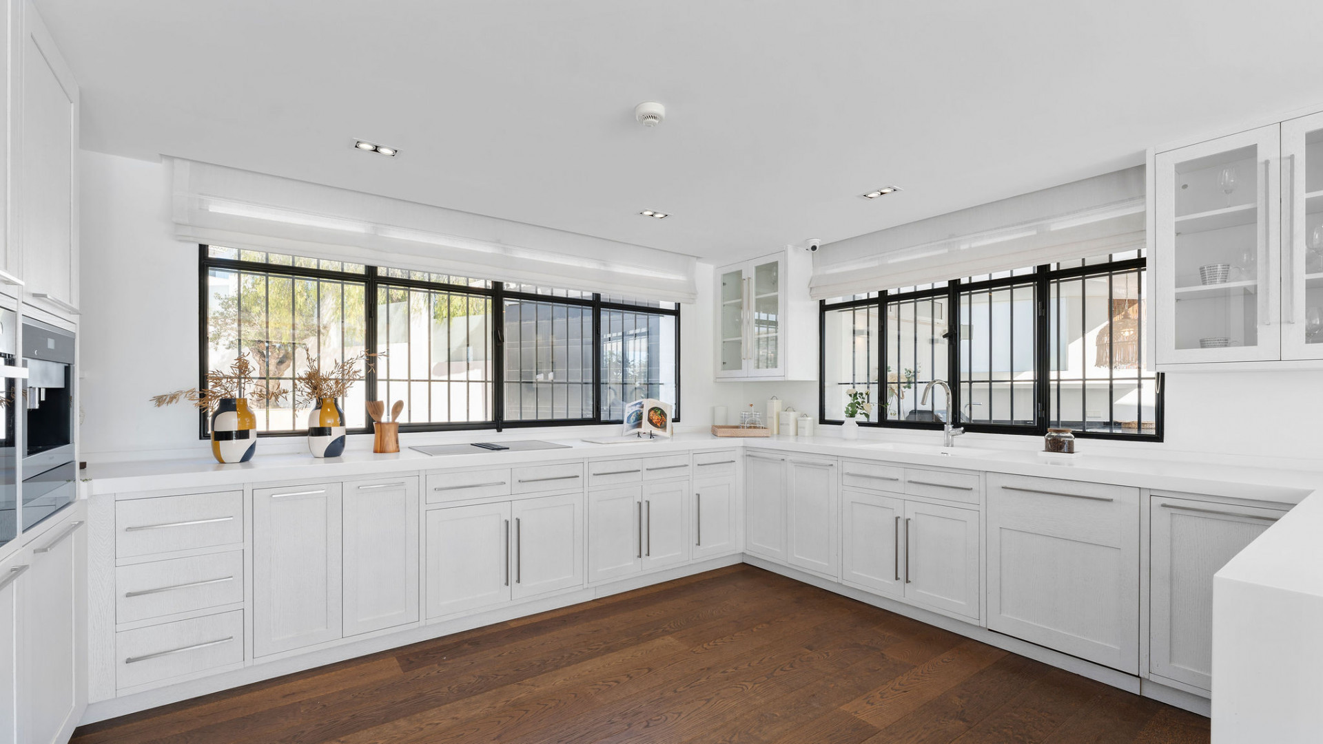 Villa, Los Naranjos – This villa in Los Naranjos, Nueva Andalucía, Marbella exudes luxury on the Costa del Sol. The property, designed by the renowned Antima, provides an unparalleled lifestyle experience by seamlessly blending modern elegance with the tranquility of its surroundings. The villa, which is located right on the golf course, has breathtaking panoramic views and is a true haven for golf enthusiasts and those looking for a peaceful retreat. The villa has 650 m² of built space and 140 m² of terraces, all on a 1,824 m² plot. It has seven spacious bedrooms, eight luxurious bathrooms, and two additional guest toilets, five of which are en-suite. The open-plan living room and kitchen, complete with a cutting-edge home automation system, are designed to be both comfortable and sophisticated. An ethanol fireplace provides warmth and refinement to the contemporary interior. For those who value relaxation and wellness, the villa includes a heated swimming pool, jacuzzi, sauna, and a dedicated spa area. Fitness enthusiasts will appreciate the fully equipped gym, while the entertainment room, which includes a bar area and a private cinema, provides numerous opportunities for relaxation and socializing. A games room provides additional entertainment for residents and guests of all ages. The exterior is equally impressive, with a private landscaped garden and multiple terraces that provide breathtaking views of the mountains, garden, and pool. Both covered and uncovered terraces are ideal for alfresco dining and barbecues. A guest apartment, a home office, and a carport garage are among the additional features, which improve both comfort and functionality. This villa, which is conveniently located near amenities, transportation links, and a variety of dining options, is ideal for experiencing the best of Marbella’s vibrant lifestyle.