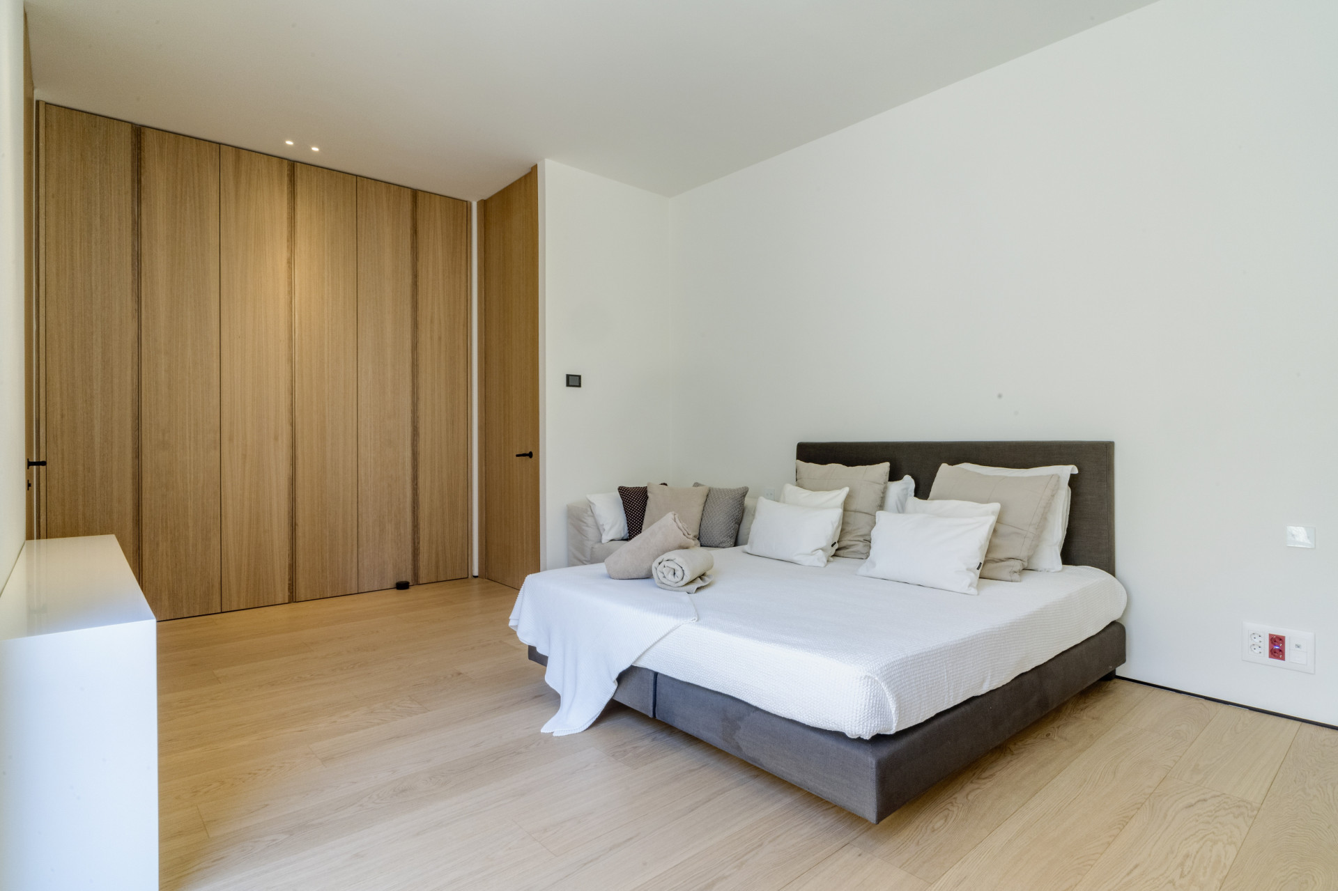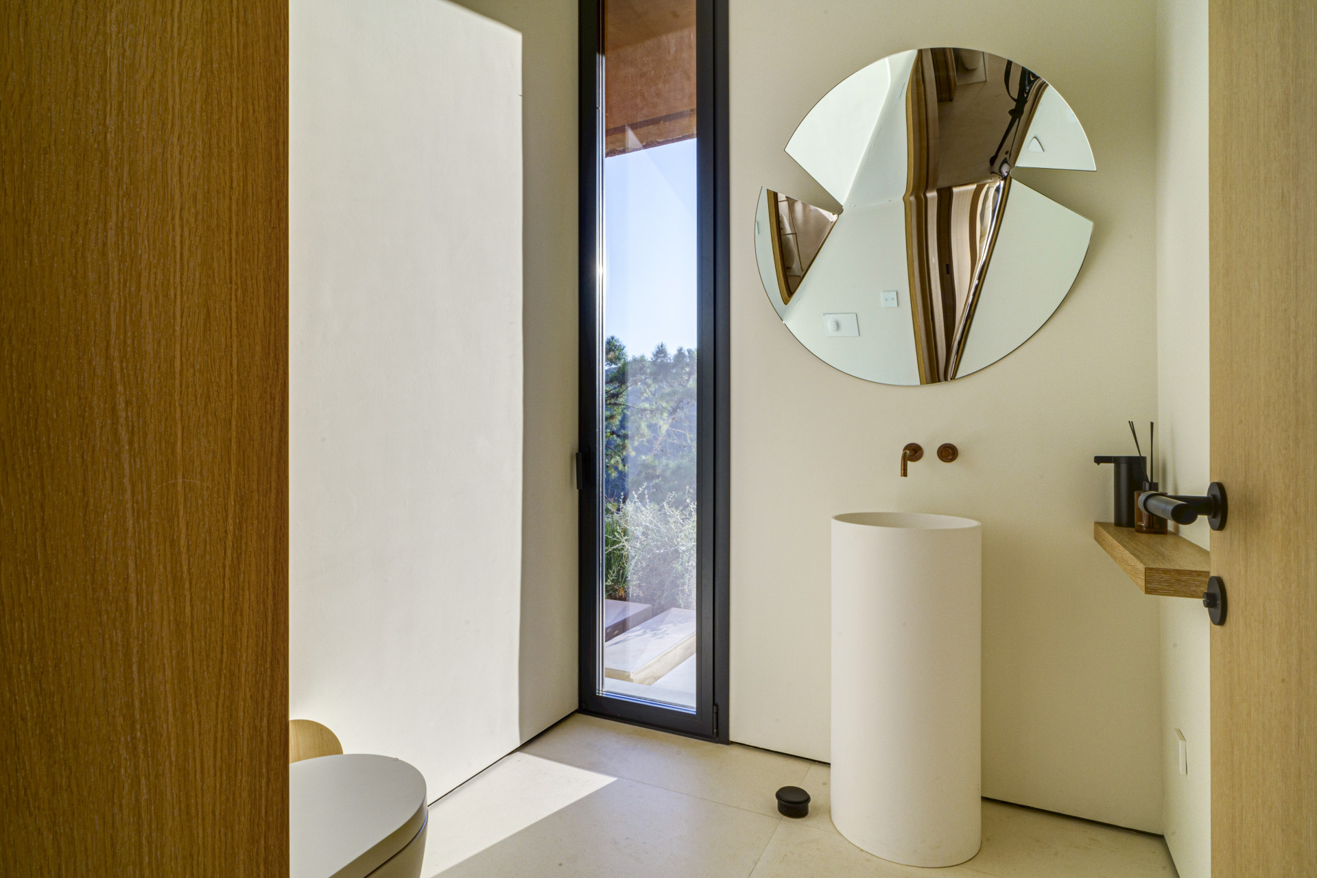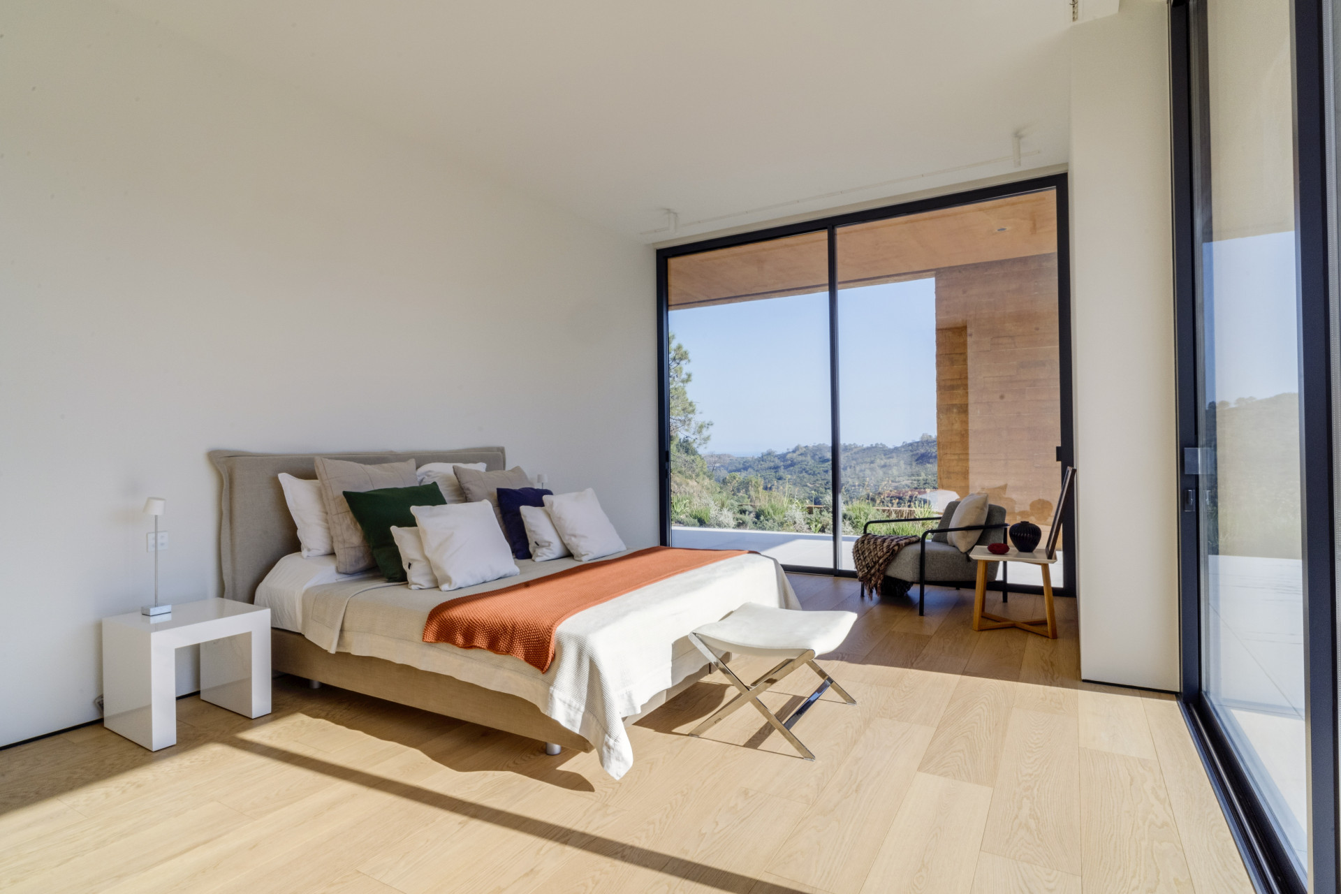 This exceptional five-bedroom villa, located in the prestigious gated community of Monte Mayor in Benahavís, Málaga, exemplifies residential luxury on the Costa del Sol. Designed by Ignacio Vicens of the renowned architectural studio Vicens & Ramos, the property is built using oxidized concrete and natural stone both inside and out, blending seamlessly with the surrounding green landscape that ensures complete privacy and no immediate neighbors. With spectacular mountain views, partial sea views, and river views, the villa is perfectly positioned for those seeking unparalleled quality, an exclusive lifestyle, and the region’s celebrated climate and gastronomy. With a generous built area of 602 m² and 200 m² of terraces set on a 3,200 m² plot, the villa is meticulously finished to the highest standards. The interior features five en-suite bedrooms and a total of seven bathrooms, each fitted with Iconico taps and Iconic smart sanitary ware, as well as large-format Inalco porcelain finishes. Natural oak carpentry is present throughout the home, from the oversized pivot entrance door to custom wall paneling, fitted wardrobes, and a spacious walk-in dressing room. The bedrooms are finished with large-format Astorga oak parquet flooring, while the living areas showcase 120×120 Piedra Paloma natural stone, complemented by impressive 3.08 m-high Technal windows. Comfort is guaranteed with underfloor heating, aerothermal energy, air conditioning, and a fireplace, while advanced amenities such as a gym, Turkish bath (hammam), fully equipped basement, and a dedicated office space cater to both relaxation and productivity. Outdoor living is equally impressive, featuring a private saltwater infinity pool equipped with the latest technology, multiple covered and uncovered terraces with panoramic and garden views, and a glass-walled courtyard with a carob tree. Natural plants adorn the terraces and rooftops, enhancing the villa’s integration with the landscape. Green areas surround the plot, ensuring uninterrupted views and tranquility. The private garden is ideal for enjoying the Costa del Sol lifestyle, and the villa’s proximity to the village of Benahavís and renowned restaurants further enhances its appeal for lovers of gastronomy and healthy living. Practical features include a garage for three large vehicles with a Tesla charger, three machine rooms for the pool and irrigation systems, a laundry room, double glazing, solar panels, and 24-hour security with an armored door and alarm system. The villa is brand new and ideal for discerning buyers seeking a combination of luxury, privacy, security, and top-tier amenities in one of the most sought-after locations on the Costa del Sol, less than 10 minutes from the Marbella Club Golf Resort.