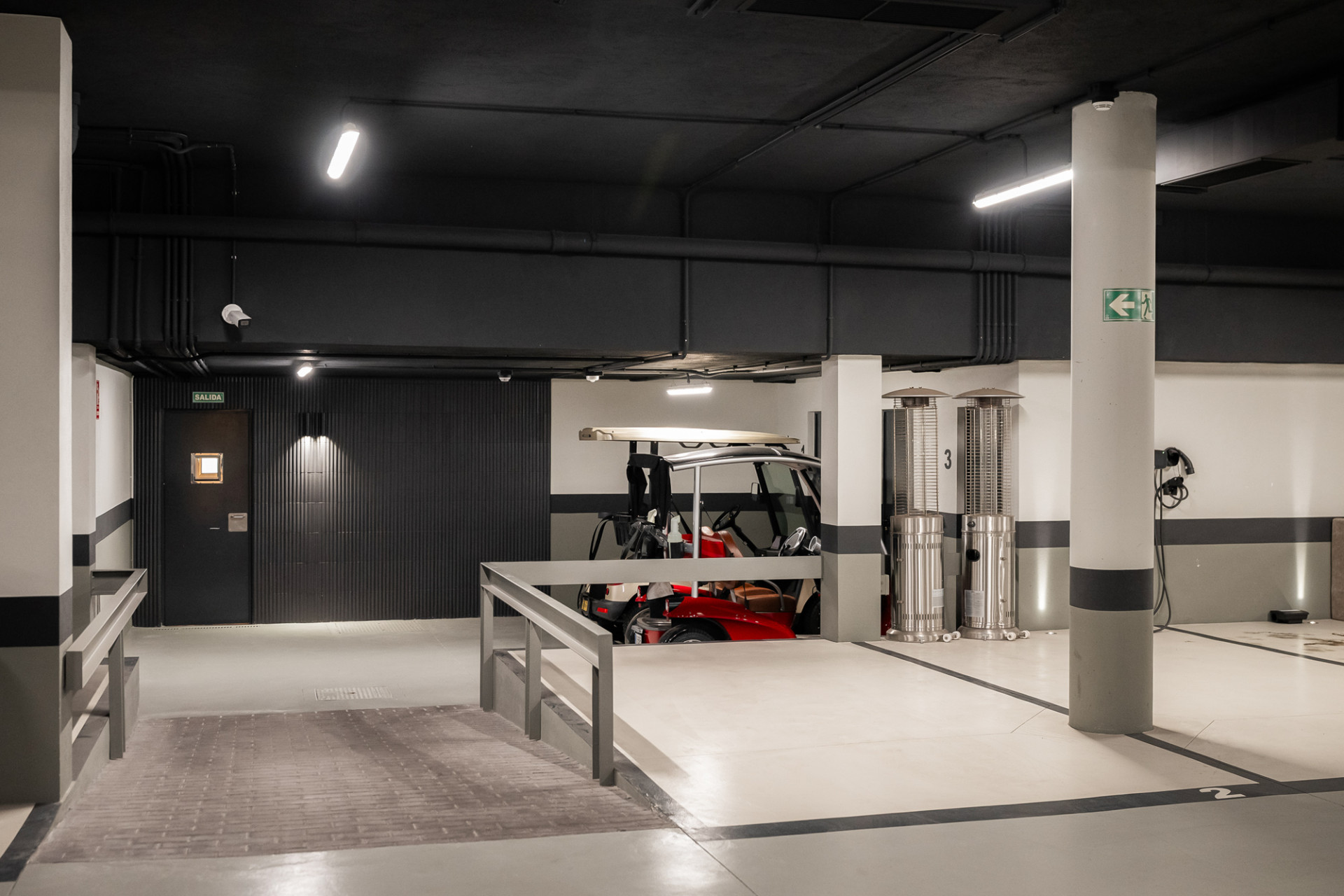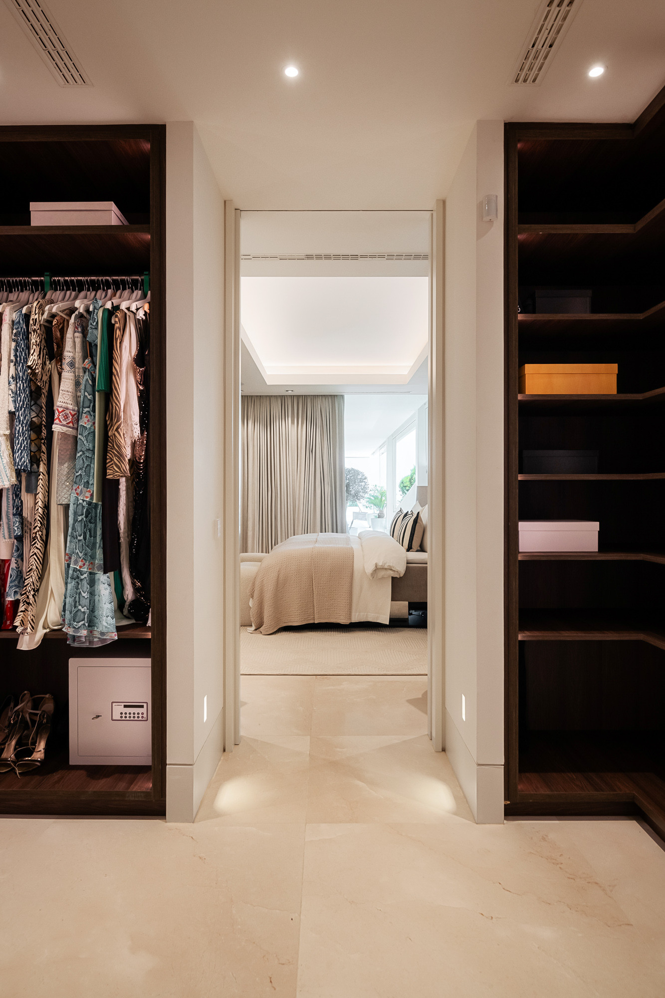 Appartement, La Quinta – Sea views, bold lines, and absolute privacy in La Quinta. This apartment offers the feel of a private villa—with panoramic views, generous outdoor space, and refined interiors. Located in a boutique gated development of just seven homes, it includes 24-hour security and access to a spa, gym, sauna, and steam room. Fully automated and quietly exclusive, it’s a home designed for high-end living—ideal for those seeking space, technology, and tranquility. A central hall divides the layout. On one side, the social spaces: an open-plan kitchen with Gaggenau and Miele appliances, a floor-to-ceiling wine display, and automated windows that open fully to merge interior and exterior. An L-shaped terrace wraps the space with sea views, a lounge, a dining area, a jacuzzi, an outdoor shower, and a summer kitchen—surrounded by landscaped greenery that brings the atmosphere of a private villa. On the other side is the private wing: the master suite with a walk-in wardrobe and full bathroom, plus two en-suite bedrooms overlooking landscaped surroundings. A separate laundry room adds convenience. Smart systems, premium materials, and two garage spaces complete the home—along with a storage room and a registered electric buggy with private parking.