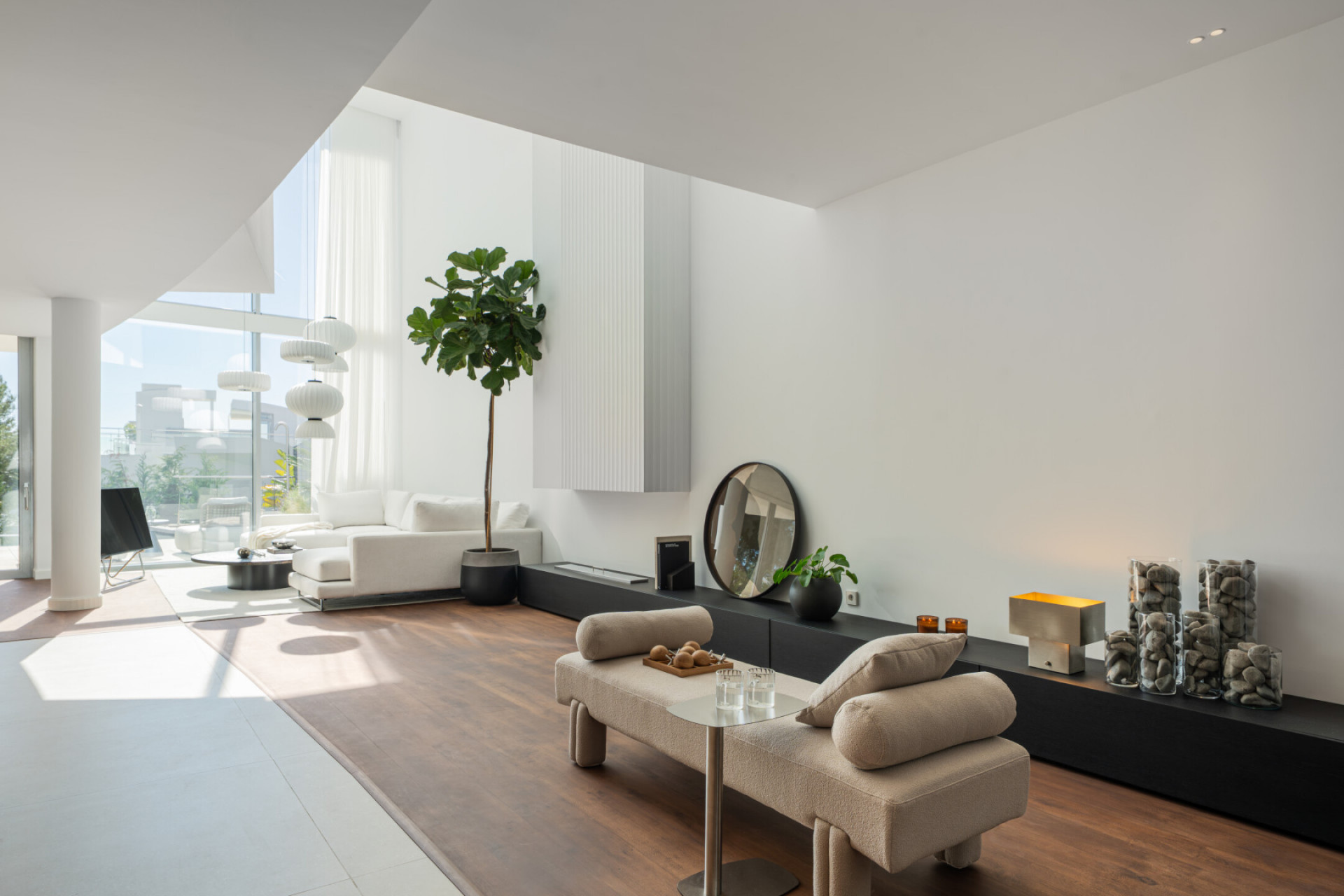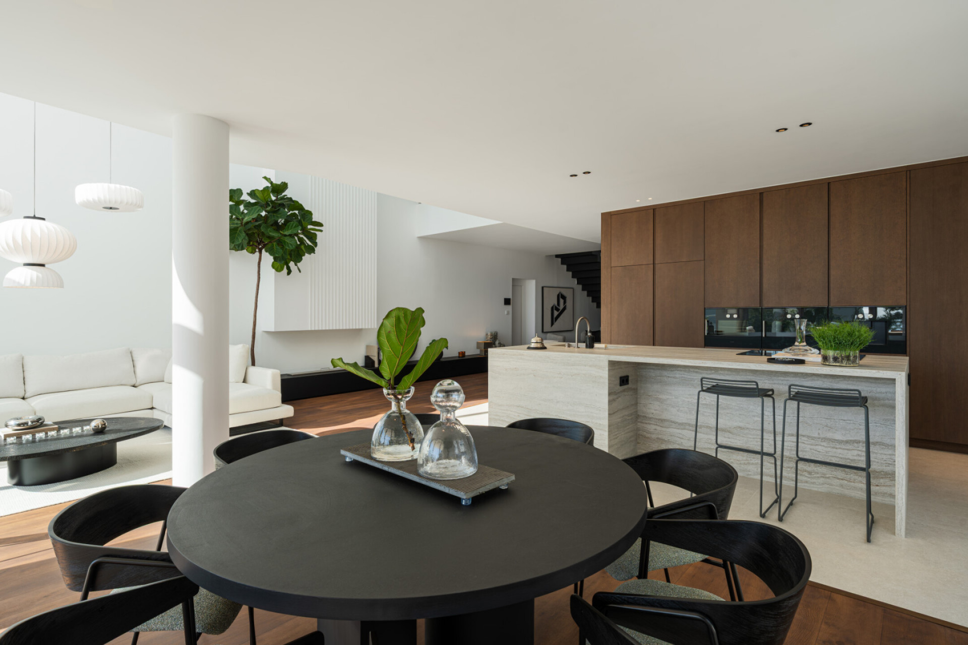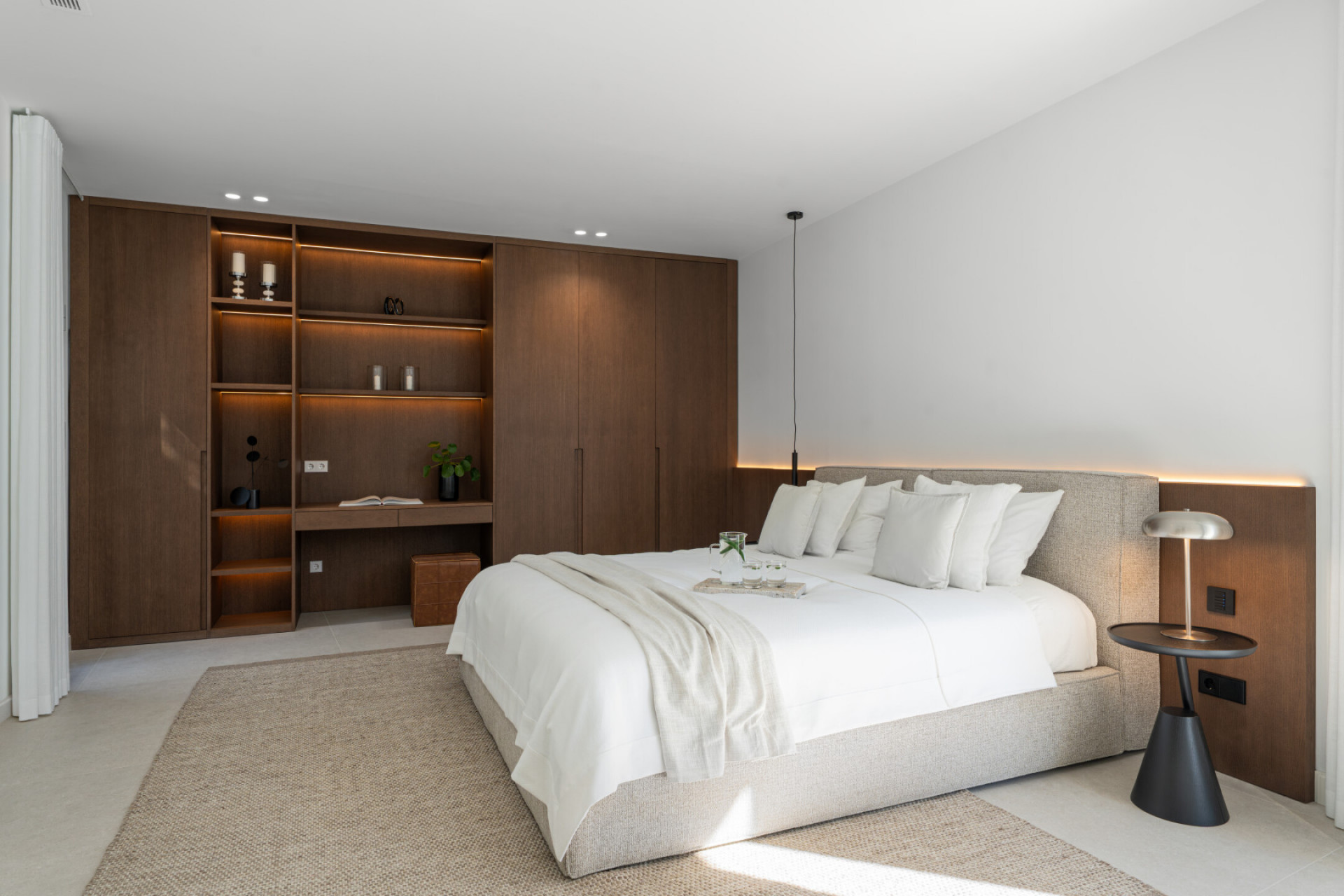 Maison Jumelée, Sierra Blanca – A four-bedroom semi-detached house in Sierra Blanca, offering four bathrooms and a guest toilet, arranged over multiple levels with two ensuite bedrooms and open-plan living at ground level opening to a private terrace and pool, a first floor dedicated to a principal suite and guest ensuite, a rooftop solarium with jacuzzi and barbecue framing open sea and mountain views, and a lower level with wine cellar, laundry and direct access to private parking, all connected by a lift. The structure is clear from the outset. Guests have their own space on the entrance level, where two of the three guest bedrooms are located. The master bedroom sits above, separated and calm. The solarium occupies the top, exposed to the horizon. Recently renovated with a Scandinavian approach, the interiors favour light, proportion and practicality. The kitchen, dining and living areas function as one continuous space, extending directly onto the terrace and private pool. Underfloor heating runs throughout. A wine cellar, lift access to every level and private parking for up to three cars address the everyday details. The solarium, with its open views, jacuzzi and barbecue, raises a simple question: where else would you host, unwind or watch the light change across the coast? Within a gated community in Sierra Blanca, privacy is built into the setting. Security is controlled, the environment residential and composed. Shared spa and gym facilities are on hand when desired. The Golden Mile and Marbella town are minutes away, yet the immediate surroundings remain quiet. Do you want proximity without noise, security without feeling enclosed? This location answers both. If you are seeking a refined home in Sierra Blanca that combines discretion, views and functional design, this stunning property is the one for you.