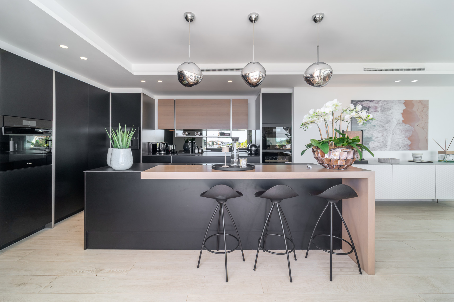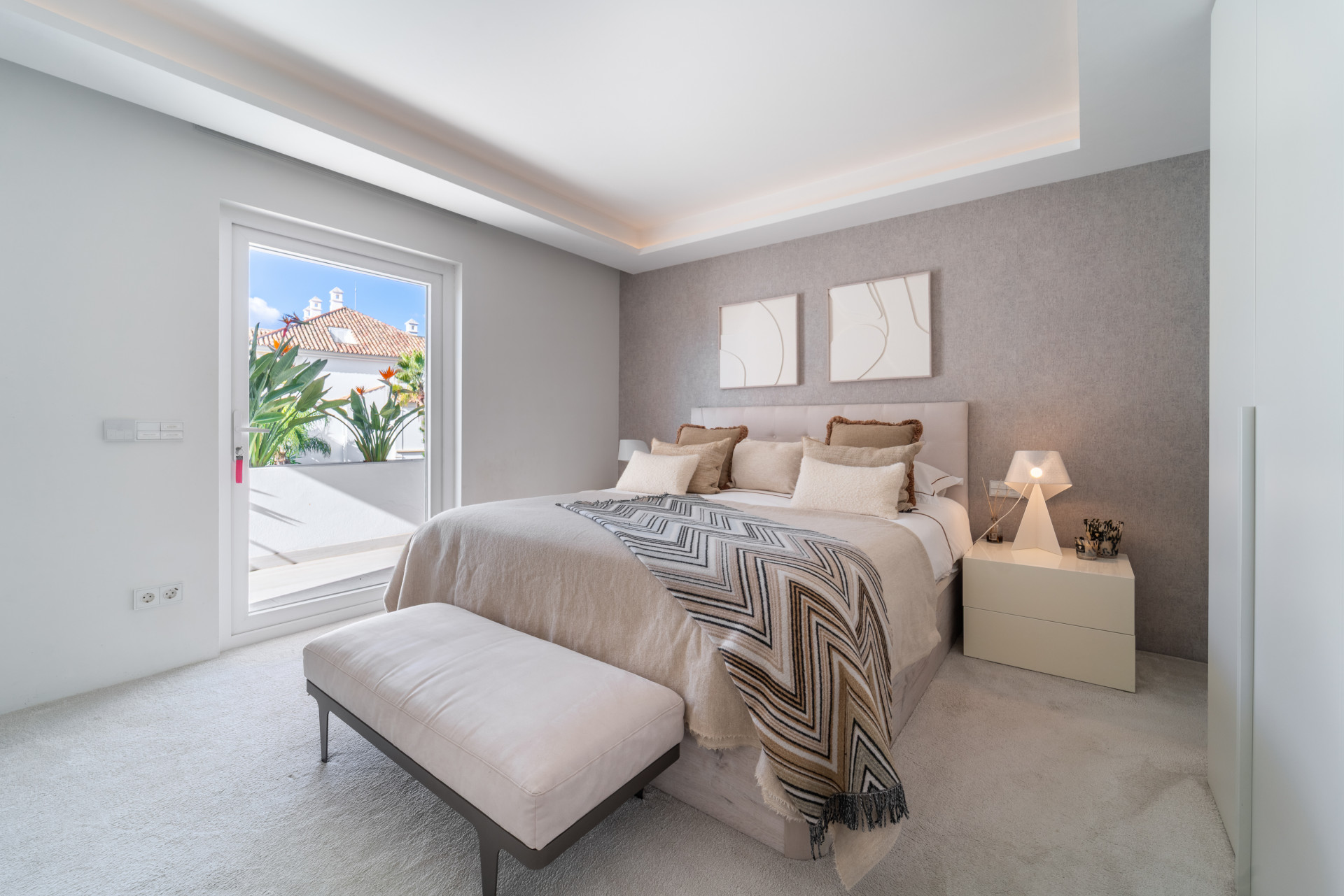 Duplex Penthouse, Monte Paraiso – An exceptional duplex penthouse set within the prestigious gated community of Monte Paraíso, in the heart of Marbella’s Golden Mile, where refined living meets absolute privacy just moments from Puente Romano and the Mediterranean coastline. Recently renovated to an impeccable standard, this elegant three-bedroom residence unfolds across two levels, offering a seamless blend of contemporary design, comfort, and sophistication. The main floor reveals a bright open-plan living and dining area with a bioethanol fireplace, naturally extending onto a generous private terrace with captivating views of La Concha and the sea, complete with an outdoor kitchen and electric awnings for effortless year-round living. Two beautifully appointed en-suite bedrooms, a guest toilet, and refined finishes throughout complete this level, while the upper floor is entirely dedicated to a magnificent principal suite with vaulted ceilings, a private panoramic terrace, and an en-suite bathroom designed as a sanctuary, where the bathtub is perfectly positioned to embrace views stretching towards Africa and Gibraltar. Additional features include AirZone climate control, underfloor heating in bathrooms, electric blinds, home automation, two large parking spaces and a storage room, all within a resort-style community offering lush gardens, indoor and outdoor pools, spa facilities, sports amenities and 24-hour security.