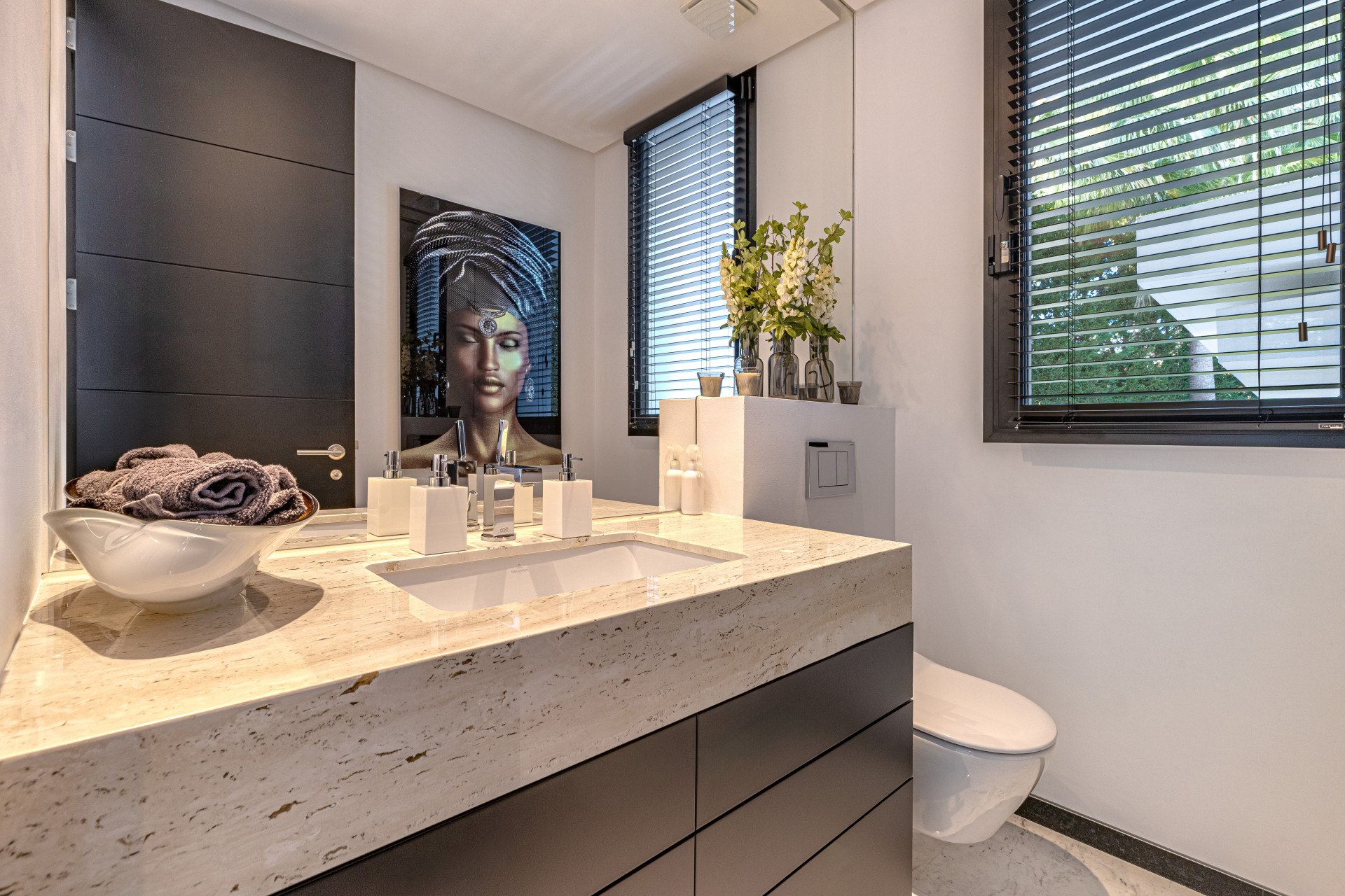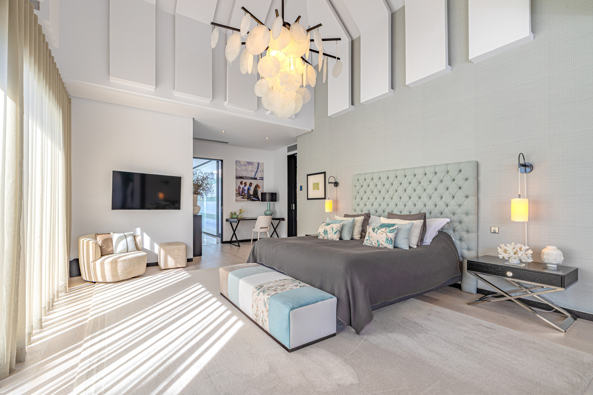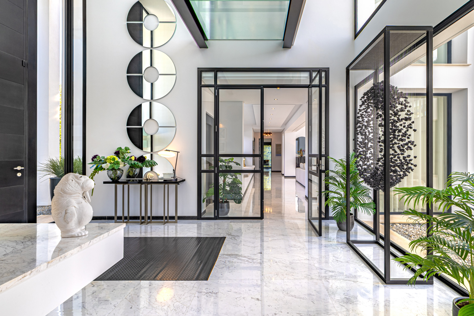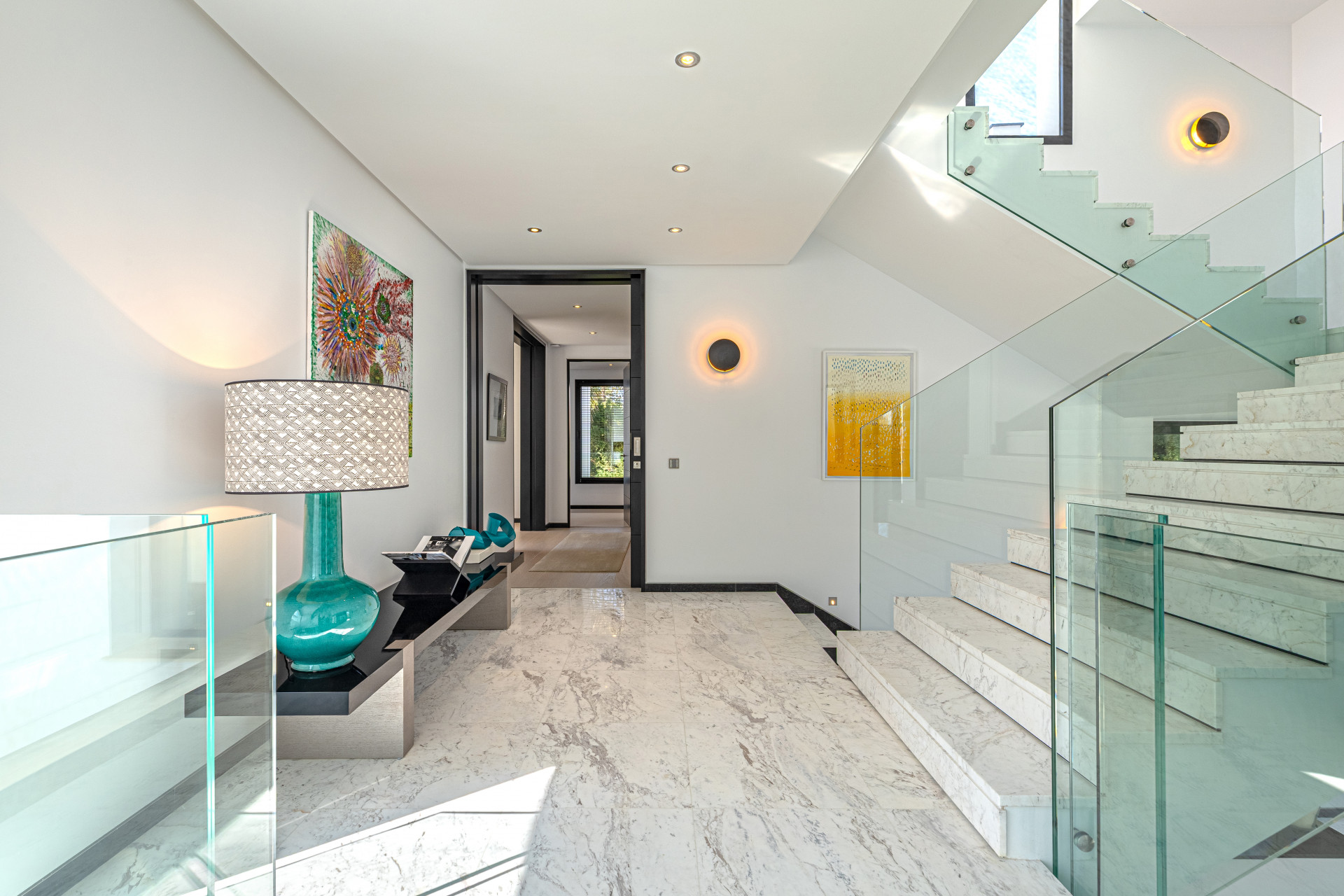 Villa, Guadalmina Baja – A luxury villa constructed to the highest standards of quality within the prestigious enclave of Guadalmina Baja. Featuring a south-facing, modern architectural design with serene views of the private garden and swimming pool. The entrance hall opens into a sophisticated living area featuring a fireplace, defined by vaulted wooden beamed ceilings and expansive windows that create a seamless visual flow to the dining room. This interior elegance transitions effortlessly to the outdoors, where generous open and covered terraces provide an idyllic setting for embracing the Mediterranean lifestyle at any hour. The villa’s main hall leads to a modern living room with a fireplace, characterized by high wooden beamed ceilings and large windows that visually connect with the dining room. Access is through an elegant entrance patio. The gourmet kitchen is magnificent and fully equipped with a central island and a separate laundry area. From the kitchen, there is direct access to spacious terraces, both open and covered, perfect for the Mediterranean lifestyle. Definitely worth viewing!