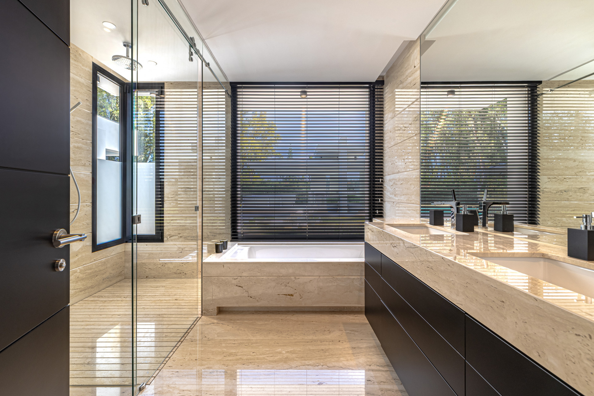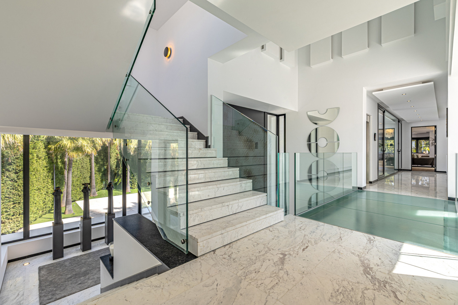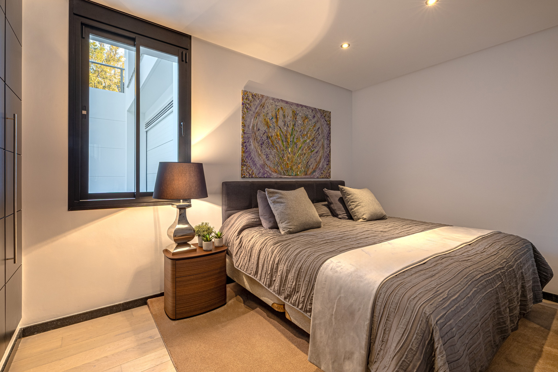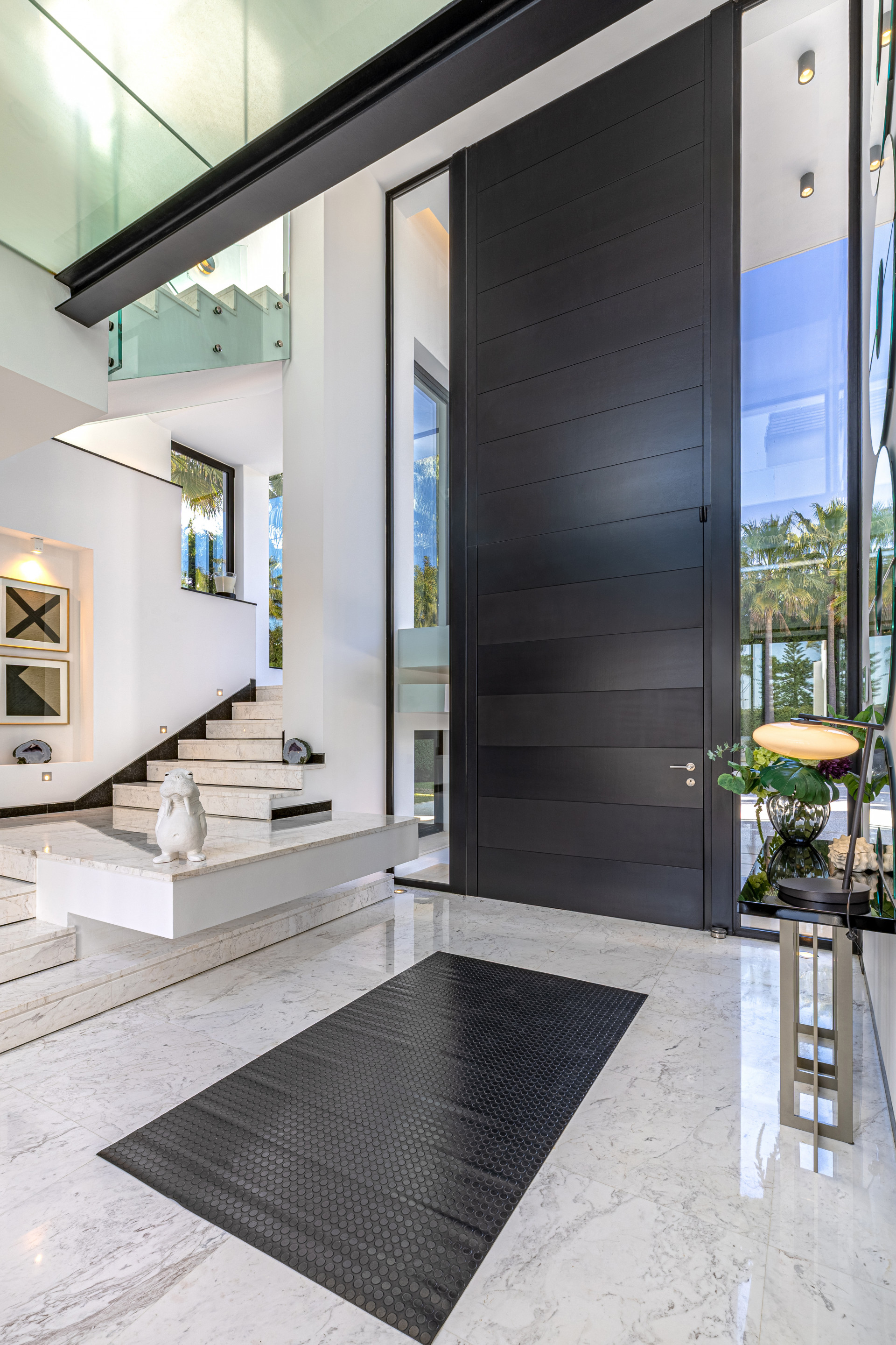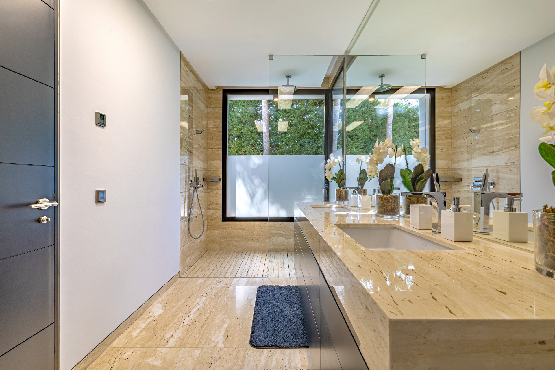 Villa, Guadalmina Baja – A luxury villa constructed to the highest standards of quality within the prestigious enclave of Guadalmina Baja. Featuring a south-facing, modern architectural design with serene views of the private garden and swimming pool. The entrance hall opens into a sophisticated living area featuring a fireplace, defined by vaulted wooden beamed ceilings and expansive windows that create a seamless visual flow to the dining room. This interior elegance transitions effortlessly to the outdoors, where generous open and covered terraces provide an idyllic setting for embracing the Mediterranean lifestyle at any hour. The villa’s main hall leads to a modern living room with a fireplace, characterized by high wooden beamed ceilings and large windows that visually connect with the dining room. Access is through an elegant entrance patio. The gourmet kitchen is magnificent and fully equipped with a central island and a separate laundry area. From the kitchen, there is direct access to spacious terraces, both open and covered, perfect for the Mediterranean lifestyle. Definitely worth viewing!