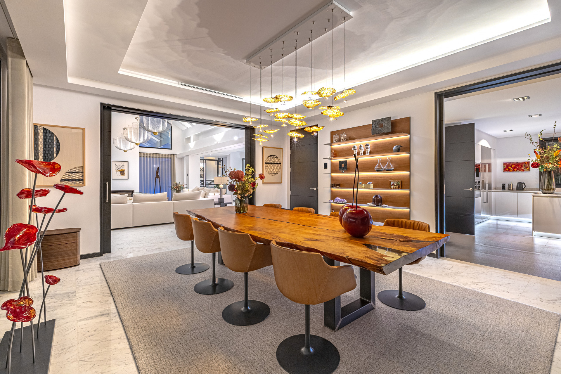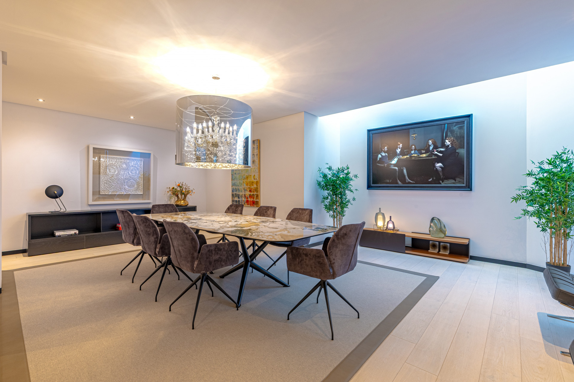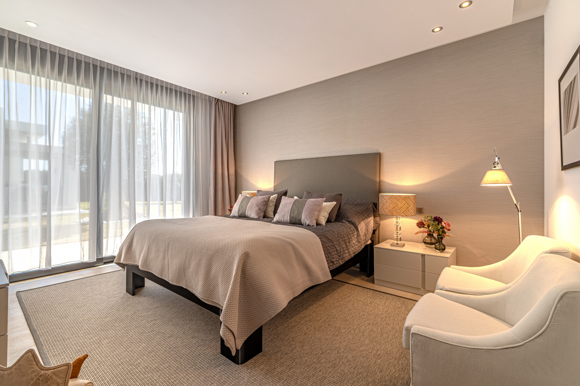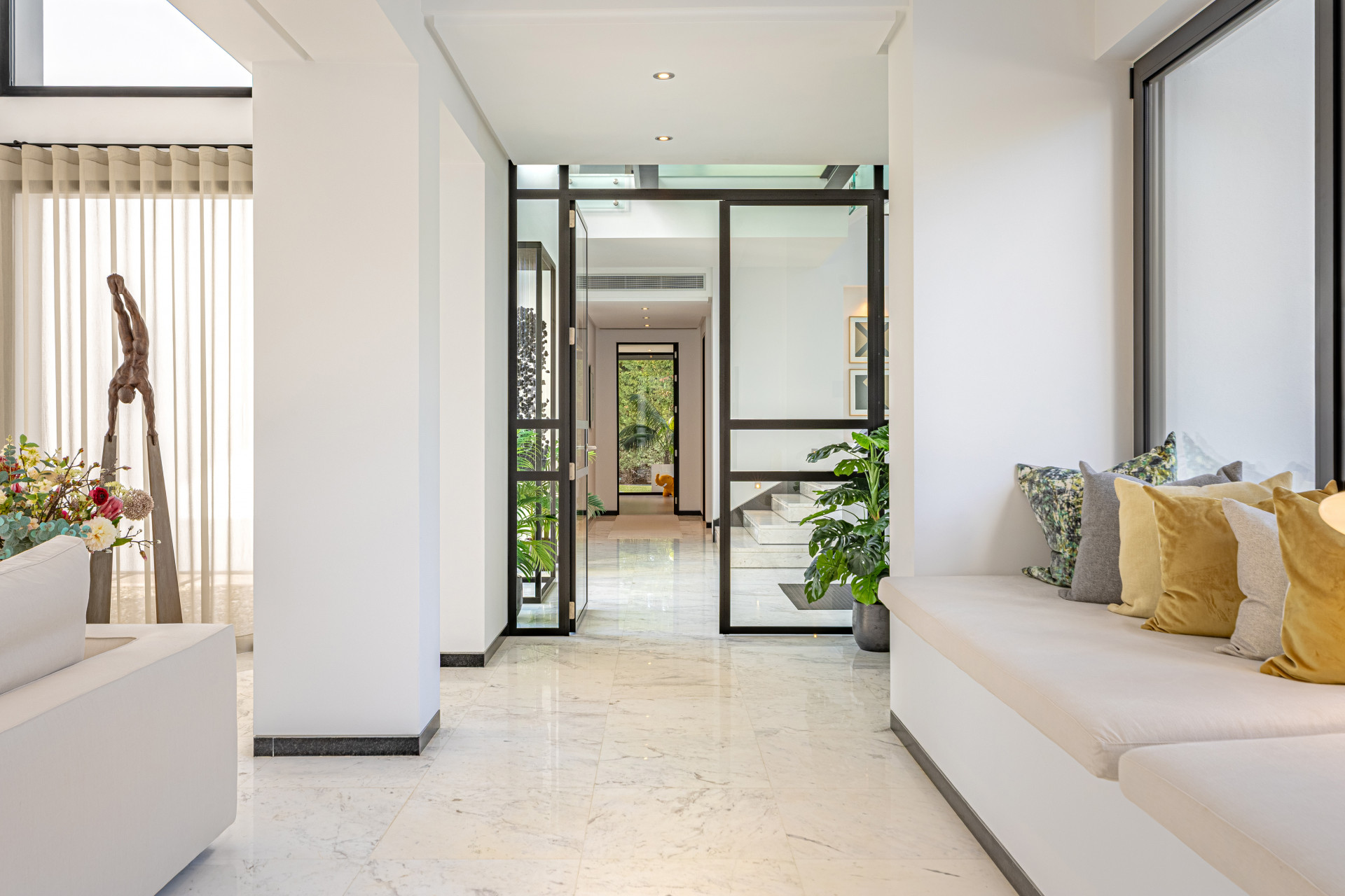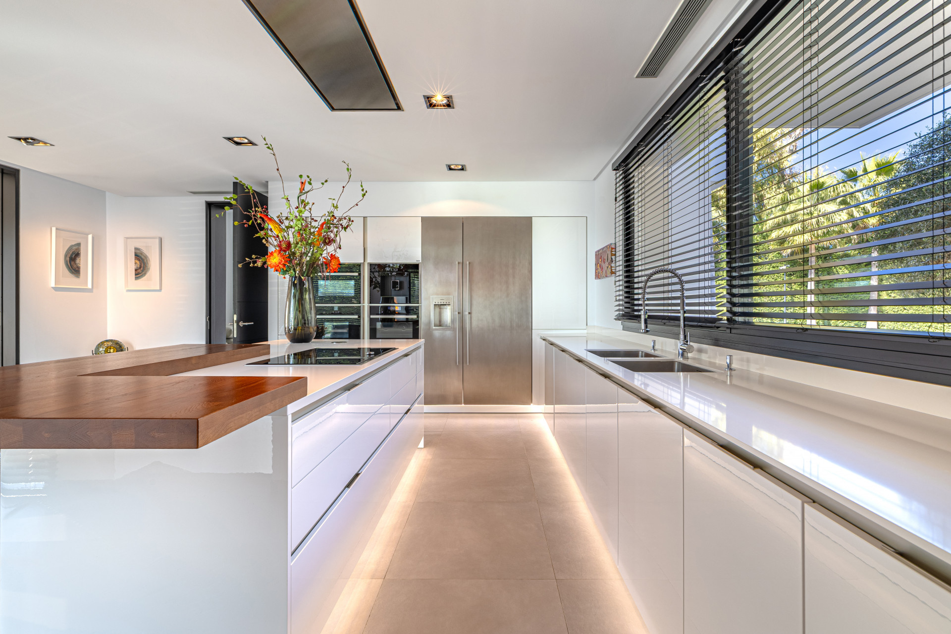 Villa, Guadalmina Baja – A luxury villa constructed to the highest standards of quality within the prestigious enclave of Guadalmina Baja. Featuring a south-facing, modern architectural design with serene views of the private garden and swimming pool. The entrance hall opens into a sophisticated living area featuring a fireplace, defined by vaulted wooden beamed ceilings and expansive windows that create a seamless visual flow to the dining room. This interior elegance transitions effortlessly to the outdoors, where generous open and covered terraces provide an idyllic setting for embracing the Mediterranean lifestyle at any hour. The villa’s main hall leads to a modern living room with a fireplace, characterized by high wooden beamed ceilings and large windows that visually connect with the dining room. Access is through an elegant entrance patio. The gourmet kitchen is magnificent and fully equipped with a central island and a separate laundry area. From the kitchen, there is direct access to spacious terraces, both open and covered, perfect for the Mediterranean lifestyle. Definitely worth viewing!