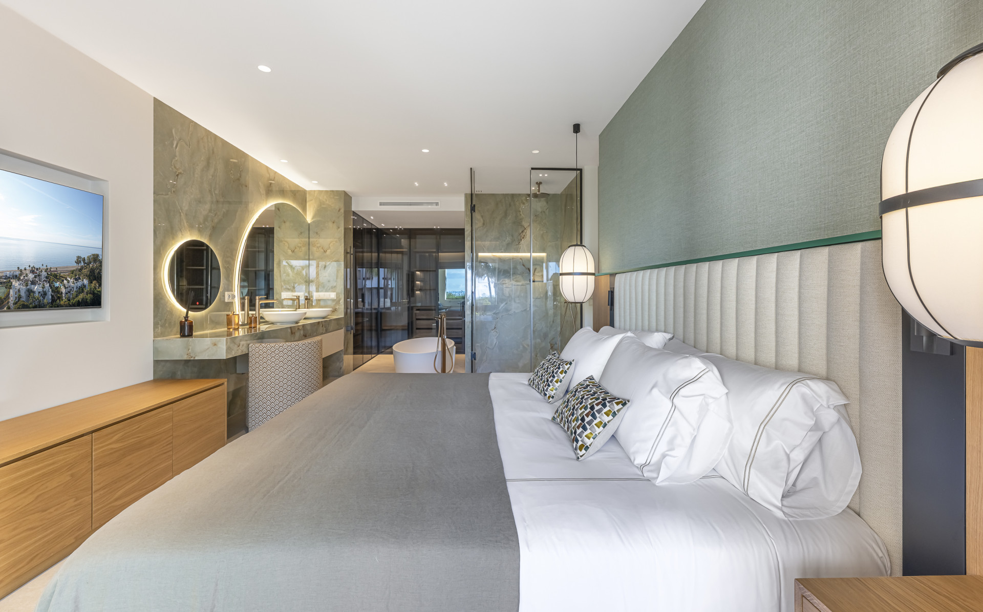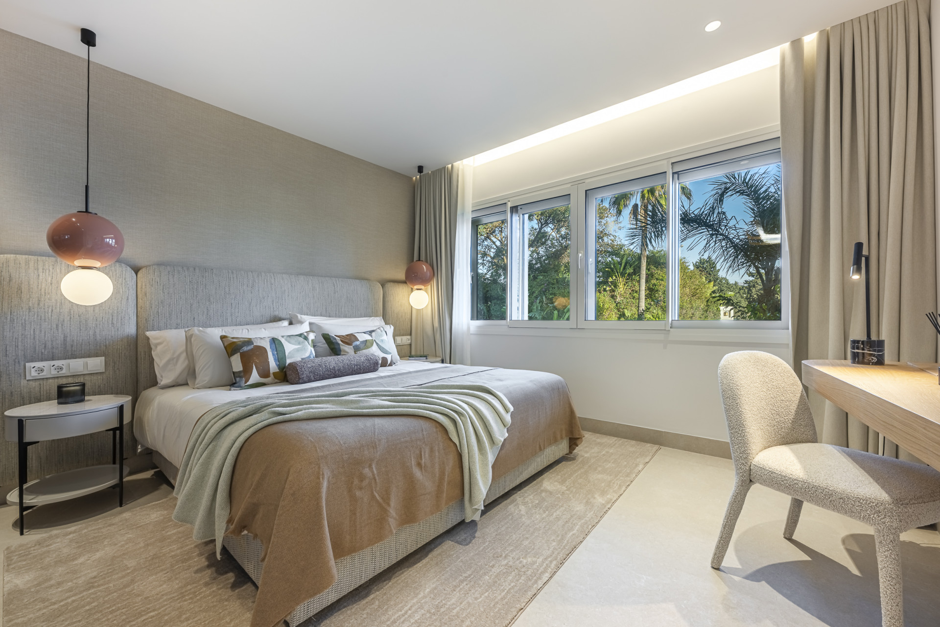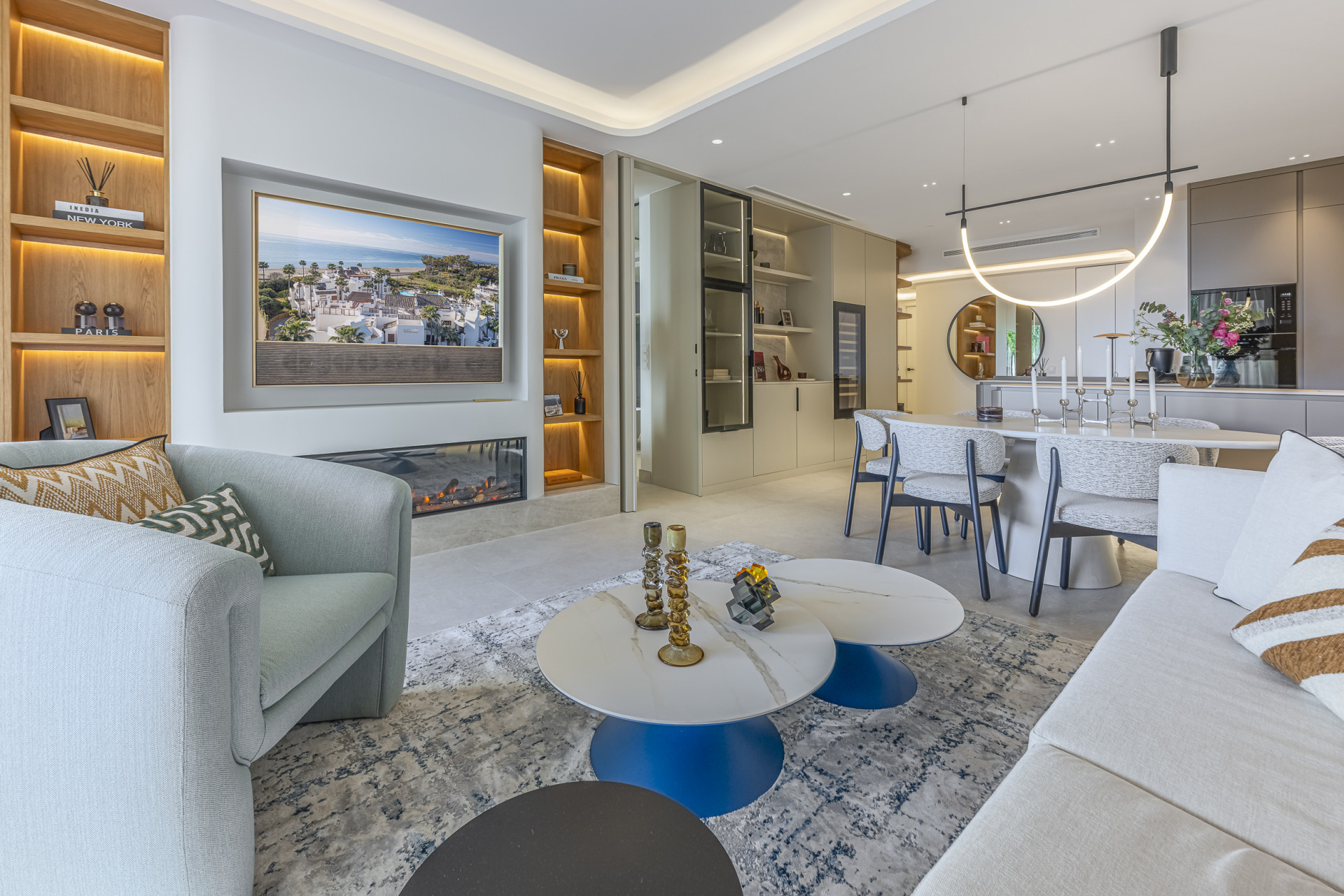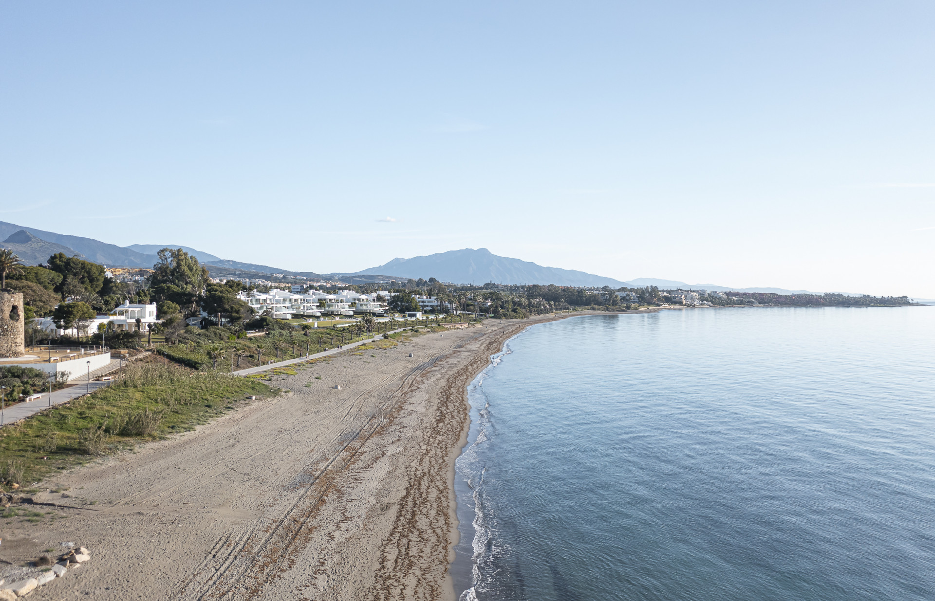 Appartement, Estepona – This fully refurbished apartment enjoys lovely views of both the surrounding landscape and the sea. Featuring underfloor heating throughout and a beautiful terrace, it offers enhanced comfort and a seamless indoor-outdoor living experience. Its contemporary design and premium finishes create a refined and practical living space in every detail. The apartment is enhanced by a range of luxurious features, including an open-plan designer kitchen fitted with premium German appliances, high-quality flooring, elegant contemporary furnishings, an electric fireplace, a Bang & Olufsen sound system, and bespoke built-in wardrobes. An exclusive residential community ideally positioned between Marbella and Estepona. Residents enjoy a stunning pool area complete with a snack bar, beautifully maintained tropical gardens, and 24/7 security. Its exceptional location provides direct access to one of the area’s most desirable beaches.