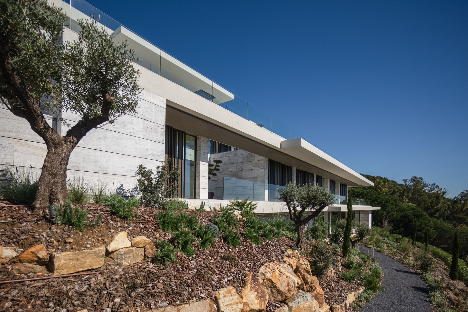 Villa, Sotogrande – Esta propiedad única se destaca como una verdadera obra maestra donde la luz, los materiales naturales y la elegante simplicidad crean un ambiente de vida acogedor y sereno. Ubicado en una parcela sustancial de 4.405 metros cuadrados, ofrece una impresionante superficie construida de 2.338 metros cuadrados, que incluye terrazas bellamente diseñadas. La propiedad consta de siete amplios dormitorios y siete lujosos baños, distribuidos en varios niveles para garantizar la comodidad y privacidad de cada miembro de la familia y de los invitados. Un garaje privado con capacidad para cuatro vehículos subraya la funcionalidad y exclusividad de la finca. La villa ha sido diseñada para encarnar un santuario de paz, donde las líneas entre la vida interior y exterior se difuminan con gracia. Amplios ventanales que van del suelo al techo enmarcan vistas panorámicas del mar Mediterráneo y Gibraltar, permitiendo que la luz natural inunde los interiores y creando una conexión constante con el impresionante paisaje. Cada espacio dentro de la casa se considera cuidadosamente para optimizar el flujo de luz y aire, lo que mejora la eficiencia energética de la propiedad y refuerza su compromiso con una vida sostenible. El jardín diseñado profesionalmente es una característica destacada, cuidadosamente diseñado para exhibir una amplia variedad de especies nativas y mediterráneas. Este exuberante espacio verde no sólo proporciona un telón de fondo vibrante y en evolución durante todo el año, sino que también contribuye a la creación de un hábitat sostenible, promoviendo la biodiversidad y una fuerte conexión con el entorno natural. La filosofía de diseño prioriza la preservación de la riqueza natural de la zona, asegurando que la villa se sienta integrada en lugar de impuesta al paisaje.