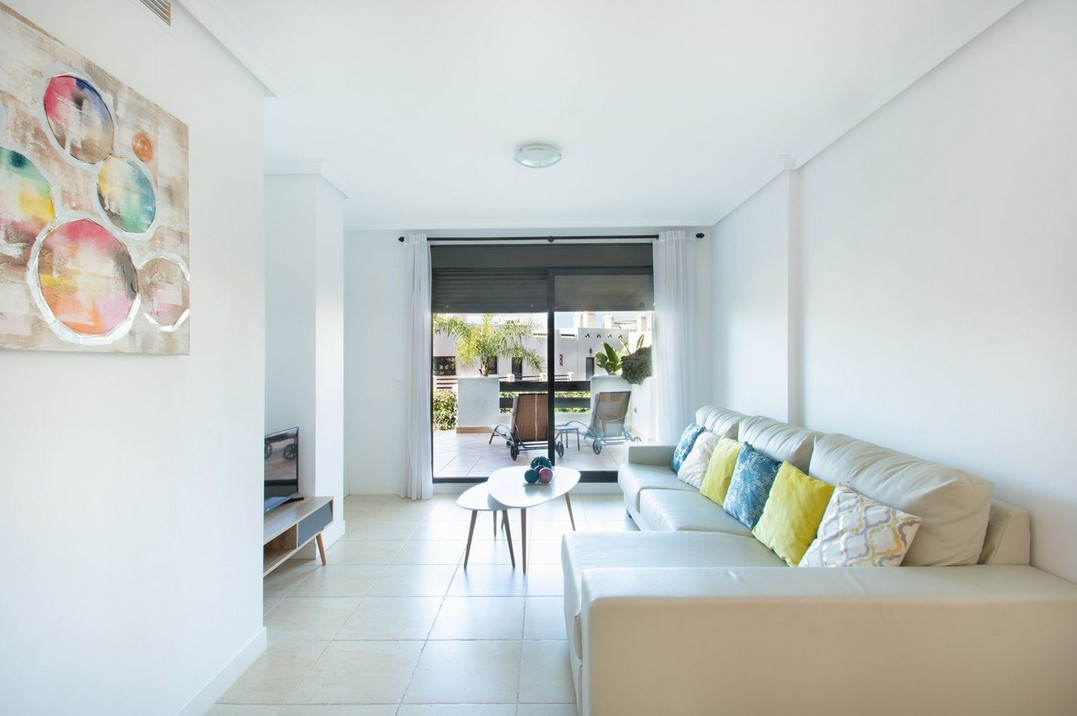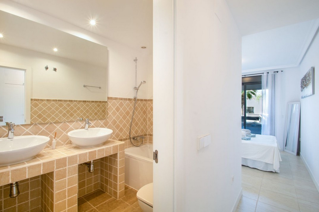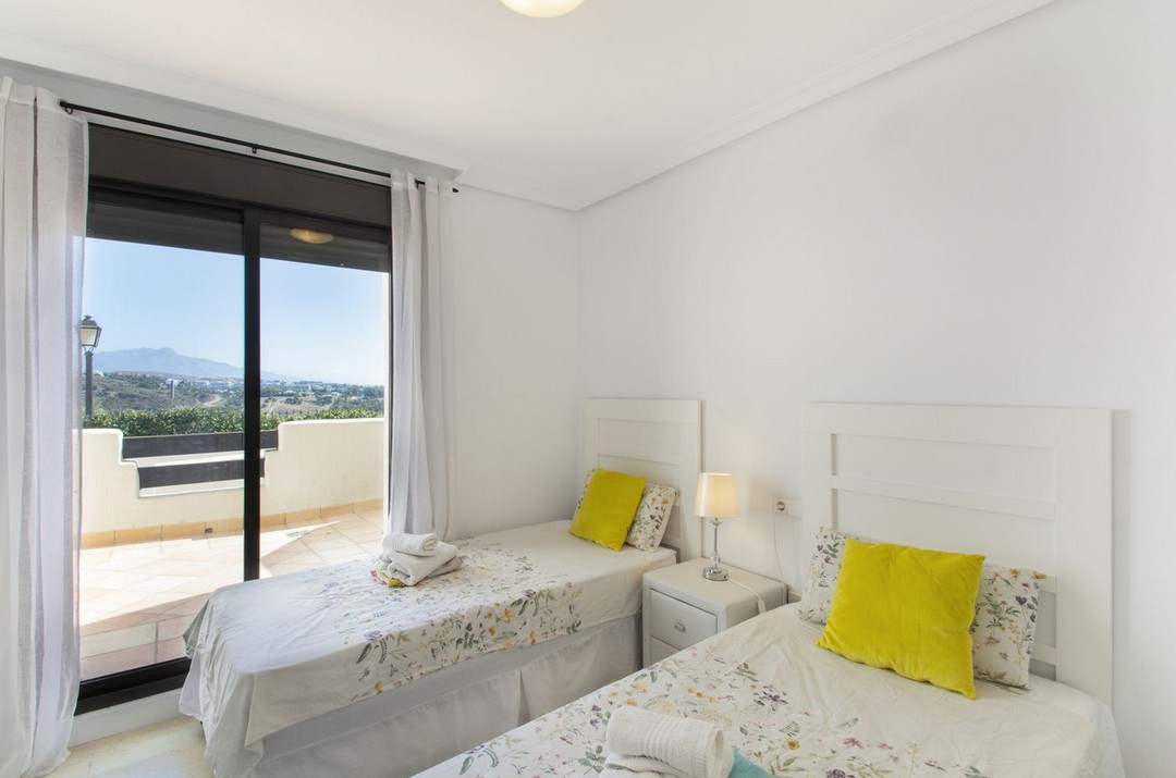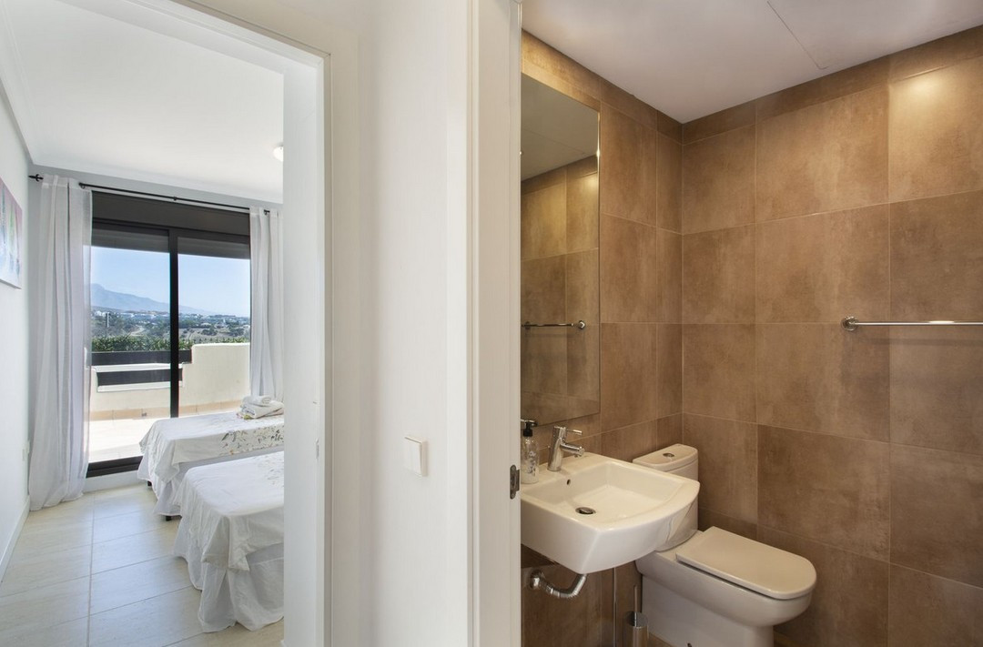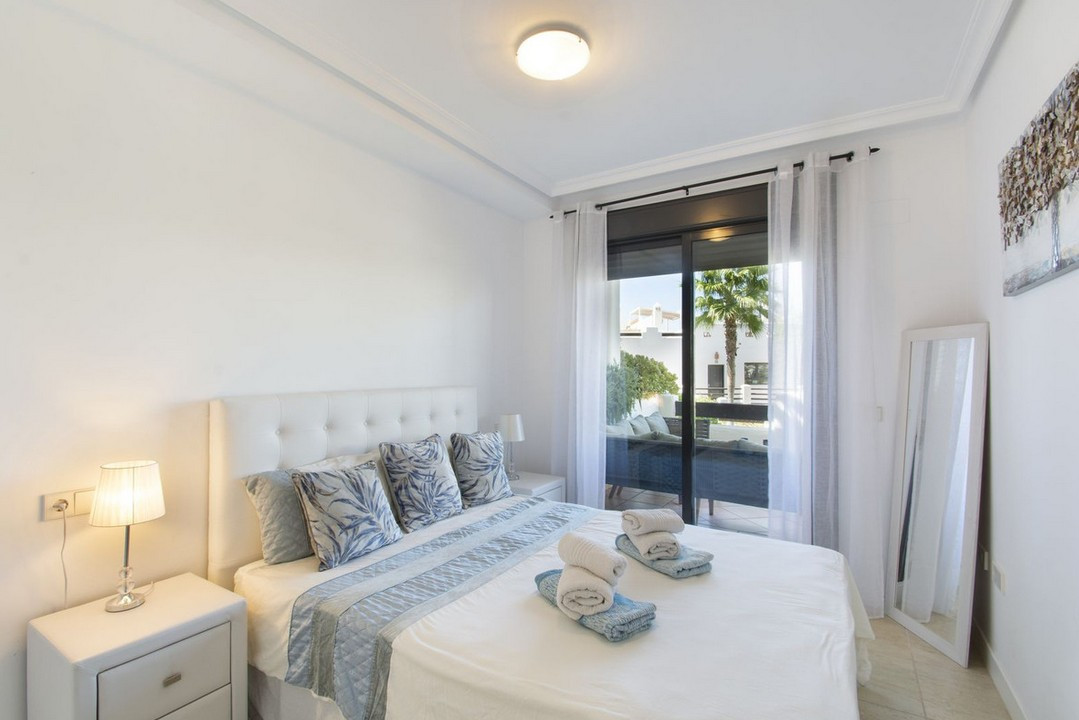 Apartamento Planta Baja, Selwo – ¡Fantástico apartamento en la Nueva Milla de Oro, Estepona! Precioso apartamento en planta baja. Dispone de 2 dormitorios y dos baños, el principal con baño en suite. Desde el dormitorio secundario se accede a la terraza, que ofrece unas preciosas vistas al mar. Desde el dormitorio principal se accede a la terraza principal, que a su vez da acceso al jardín privado. Amplia cocina totalmente equipada con acceso a la terraza con vistas al mar. Amplio salón-comedor con acceso a la terraza principal y al jardín. La propiedad incluye una plaza de aparcamiento subterráneo y un trastero. Comunidad con preciosos jardines, seguridad 24 horas y piscina comunitaria.