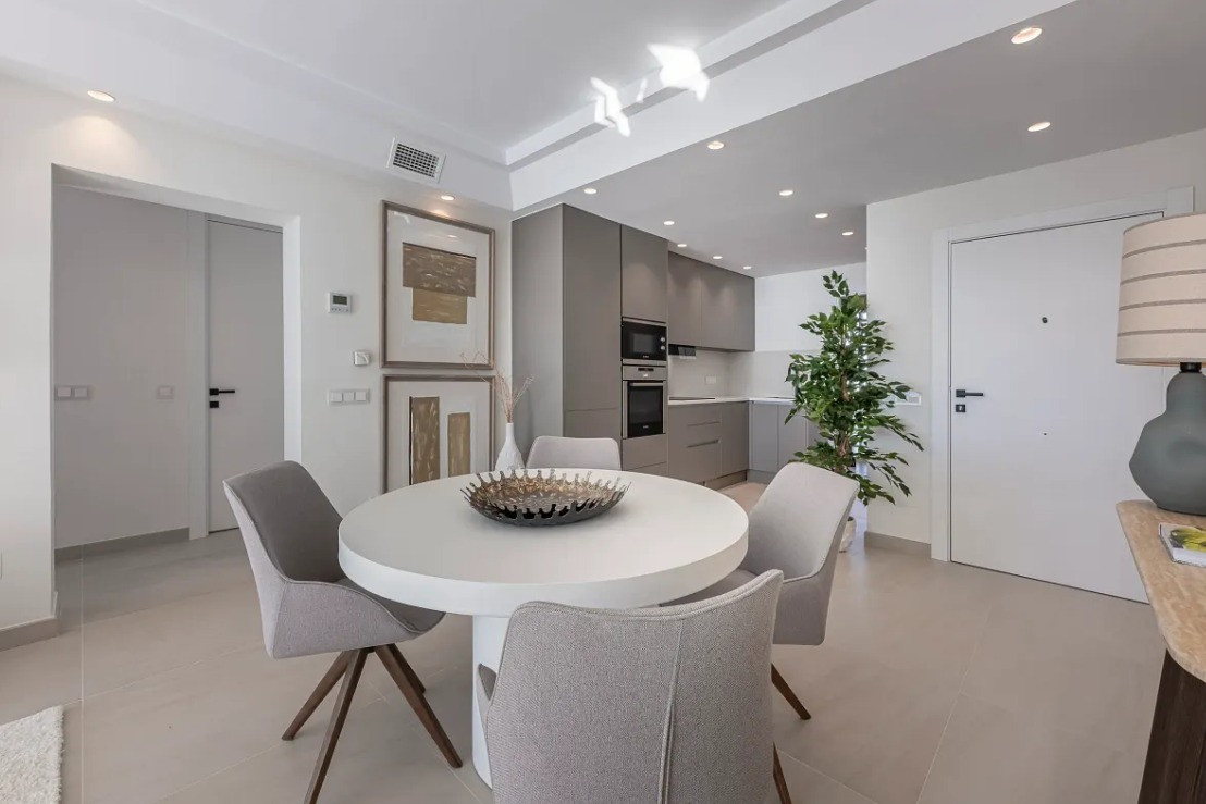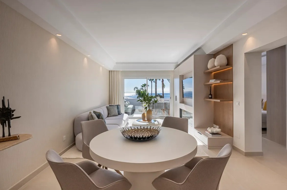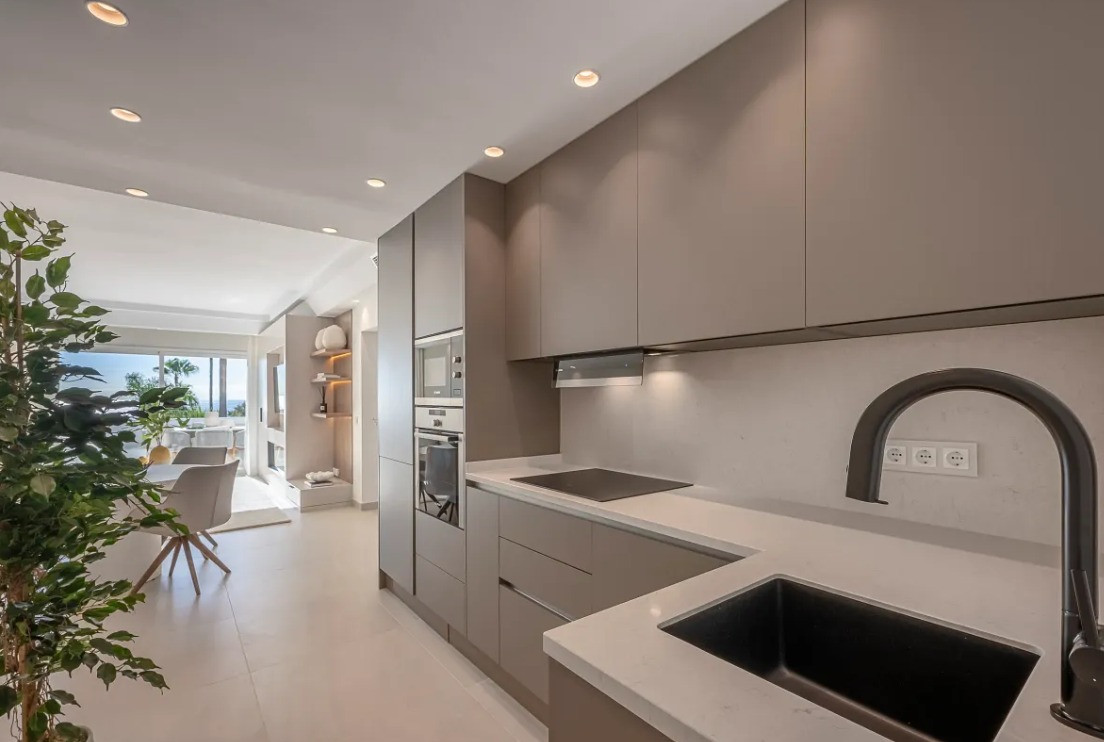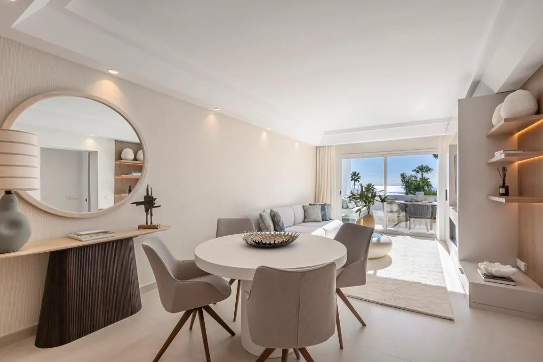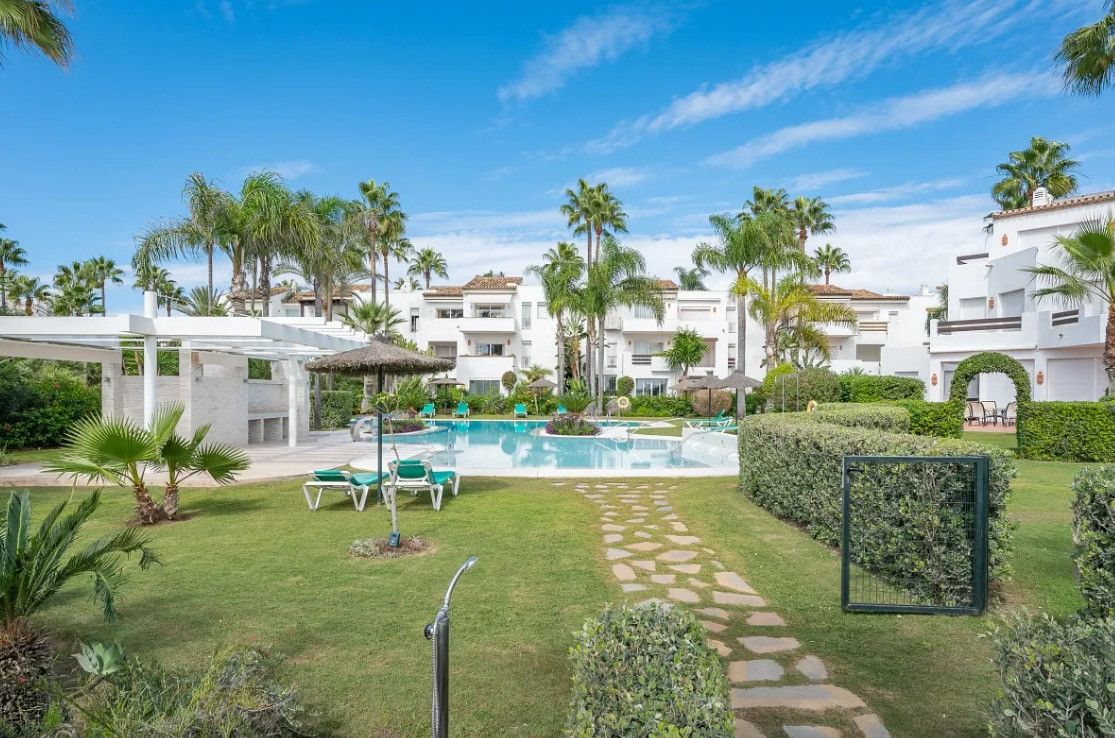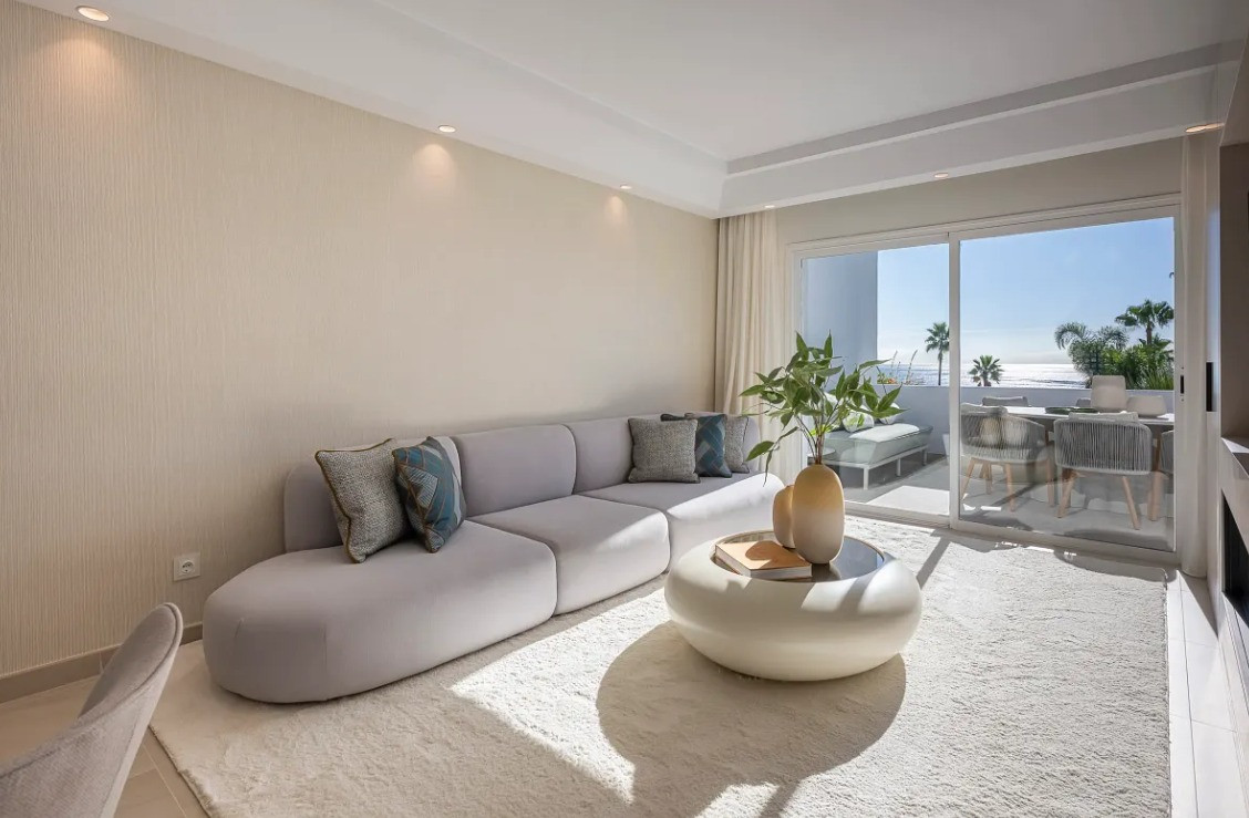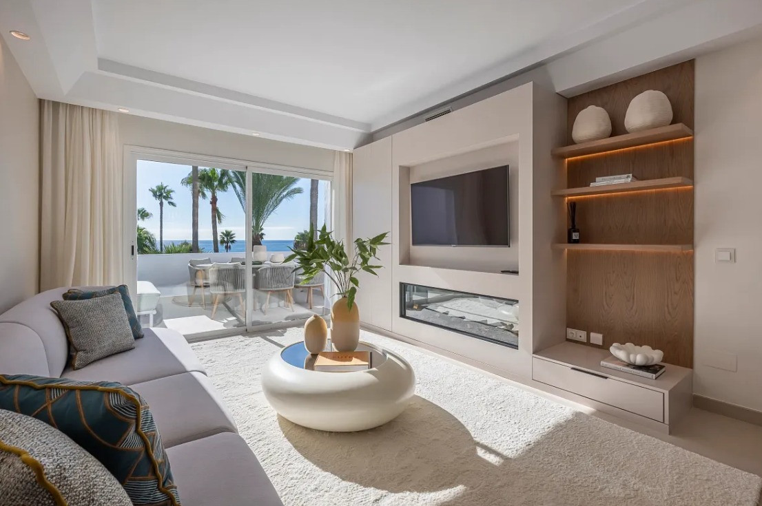 Apartamento, Costalita – Presenta una refinada combinación de vida costera moderna y lujo discreto; un apartamento a estrenar de 2 dormitorios a solo unos pasos de las doradas arenas del Mediterráneo. Ubicado en una exclusiva urbanización estilo resort, segura y con un mantenimiento impecable, ofrece un ambiente tranquilo y sofisticado rodeado de jardines maduros, piscinas resplandecientes y el inconfundible encanto de la Nueva Milla de Oro de Estepona. La luminosa distribución diáfana del apartamento crea una inmediata sensación de amplitud, con la sala de estar y el comedor extendiéndose hacia una generosa terraza orientada al suroeste que ofrece espectaculares vistas al mar y largas y cálidas tardes. La suave luz natural inunda el interior durante todo el día, resaltando una paleta de tonos cálidos y acabados contemporáneos. Una elegante chimenea eléctrica añade un toque acogedor, brindando confort y personalidad. La moderna cocina combina un diseño minimalista con un alto rendimiento, equipada con electrodomésticos alemanes de alta gama y una Thermomix, garantizando comodidad diaria y placer culinario. Los dos dormitorios son amplios y están decorados con gusto, cada uno con acceso a un baño contemporáneo con accesorios de primera calidad. Un lavadero independiente aporta practicidad, y la distribución general se ha planificado pensando en el confort, la comodidad y una fluidez armoniosa. Ubicado en una de las urbanizaciones costeras más exclusivas, donde los residentes disfrutan de acceso directo a la playa, un ambiente tranquilo y una excelente proximidad a prestigiosos campos de golf, una animada oferta gastronómica y el vibrante estilo de vida de la Costa del Sol. Con su fusión de carácter andaluz y sofisticación costera moderna, este apartamento representa una residencia ideal, una elegante casa de vacaciones o una sólida inversión a largo plazo en una zona de alta demanda.
