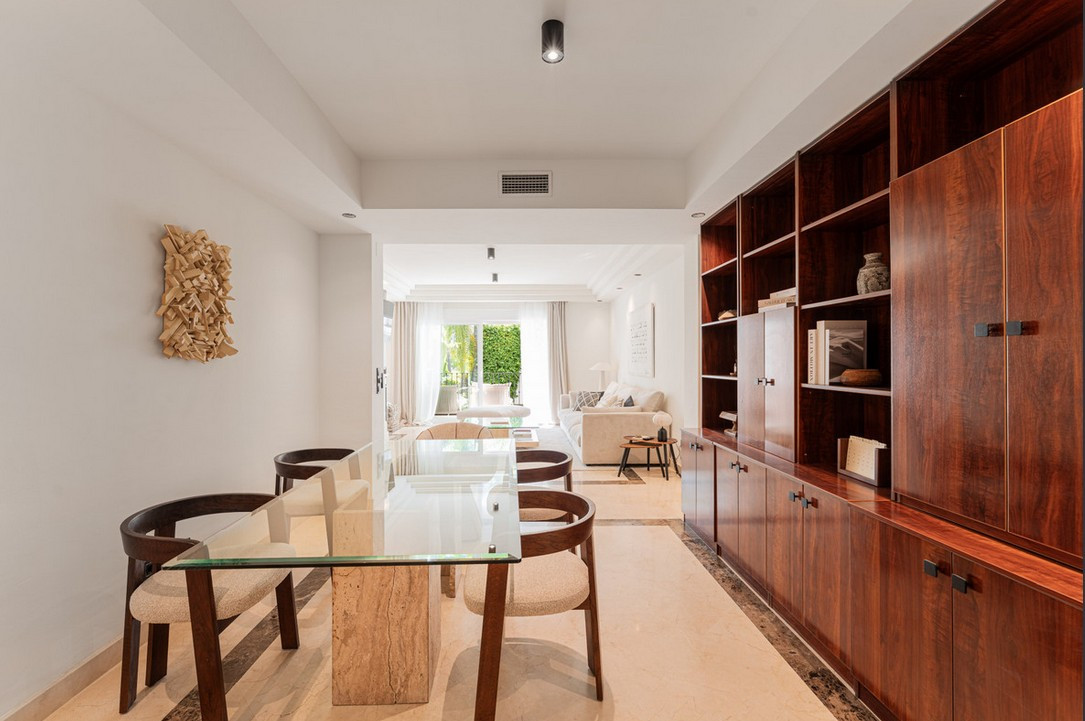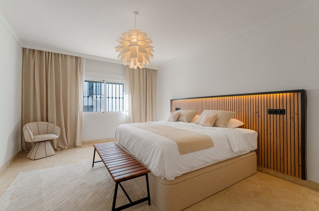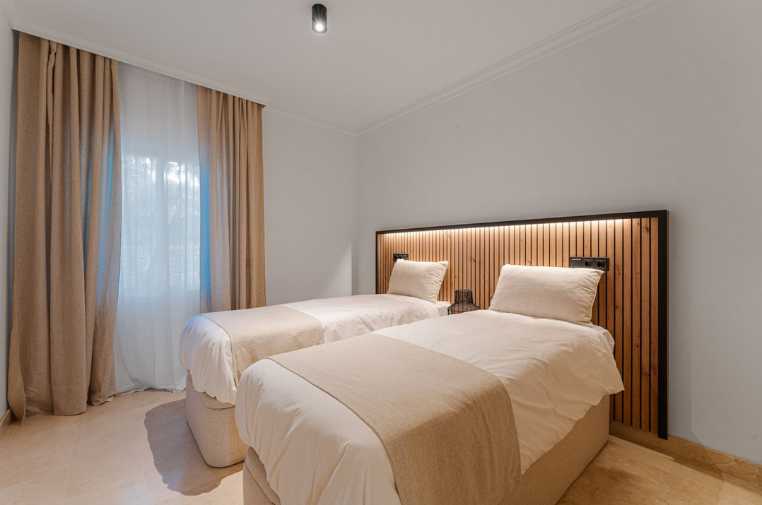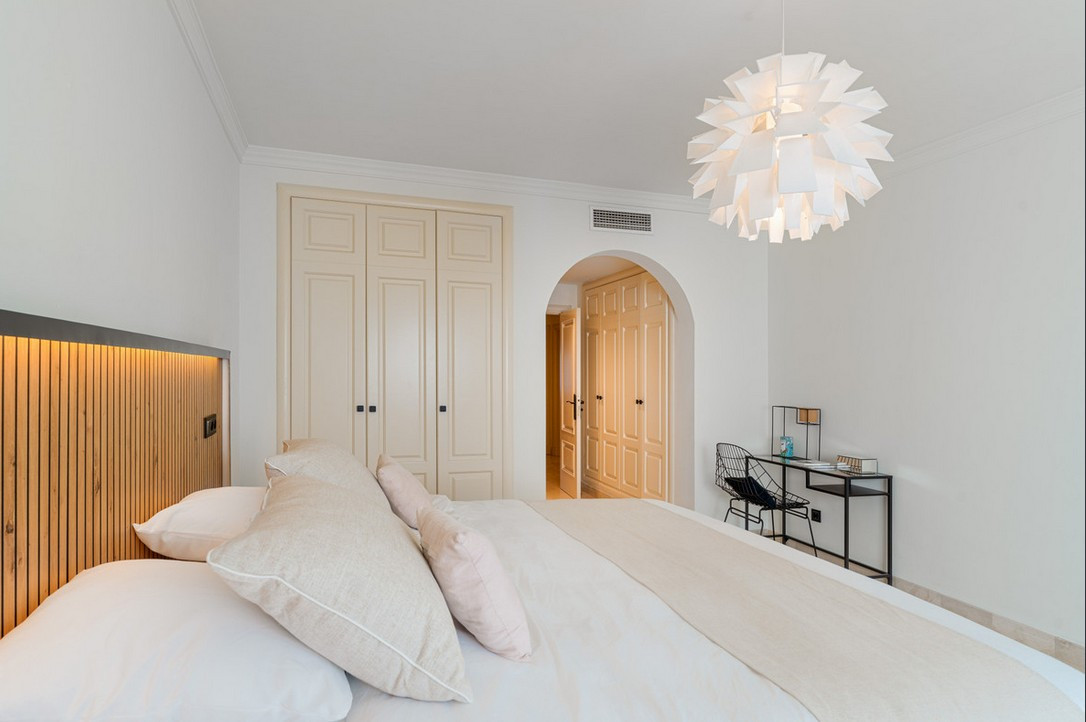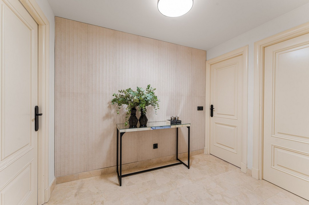 Apartamento, Sierra Blanca – Apartamento elegante de tres dormitorios y tres baños en venta en una exclusiva comunidad privada en la Milla de Oro de Marbella. Combina un estilo refinado, funcionalidad moderna y una ubicación privilegiada que ofrece una experiencia de vida excepcional en uno de los enclaves más prestigiosos de la Costa del Sol. Construido en 2004 y renovado en 2025, el apartamento cuenta con 178 m² distribuidos en una sola planta, optimizando el espacio, la funcionalidad y un estilo de vida sofisticado sin renunciar al lujo. Al entrar, un amplio comedor conduce a un luminoso salón con chimenea y acceso a una terraza orientada al sur con vistas a la piscina y a los jardines comunitarios. La cocina, totalmente renovada y equipada, incluye zona de desayuno y lavadero independiente. Las tres suites dobles privadas han sido diseñadas para ofrecer un ambiente de absoluta serenidad y exclusividad. Dos de los dormitorios cuentan con elegantes baños en suite con calefacción por suelo radiante, lo que crea una sensación de bienestar durante todo el año. El tercer dormitorio tiene un baño completo justo al lado, con acabados de los mismos estándares de lujo. Ofrece uso privado a la vez que da servicio al resto de la vivienda. Cada dormitorio incorpora amplios armarios a medida, lo que realza la estética limpia y refinada del apartamento. La suite principal destaca por su amplio vestidor y baño estilo spa, un santuario de calma y sofisticación. Los interiores exhiben una estética contemporánea atemporal, con suelos de mármol y una paleta de colores que combina calidez y modernidad. El resultado es un ambiente lujoso y acogedor, donde cada material ha sido cuidadosamente seleccionado para realzar tanto la forma como la función. Los residentes disfrutan de un entorno seguro y tranquilo, complementado con servicios excepcionales. La comunidad ofrece seguridad las 24 horas, circuito cerrado de televisión y servicio de conserjería. Dos amplias piscinas comunitarias y hermosos jardines enmarcan vistas panorámicas de la costa mediterránea, Gibraltar e incluso la costa africana en días despejados.
