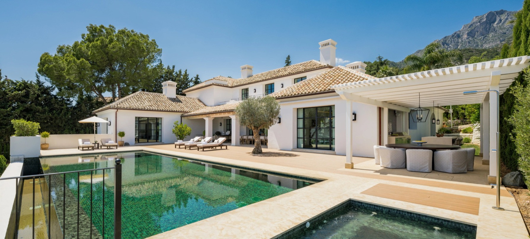 Вилла, Cascada de Camojan – This exceptional villa is the epitome of ultra-luxury living, offering not only the highest standards of elegance and comfort but also unmatched security. Nestled in one of Marbella’s most prestigious locationsat the top of the Golden Mile it forms part of a newly developed, ultra-private double-gated community of just five residences. Designed to offer the perfect blend of sophistication, tranquility, and seclusion, this is a dream home for those who value an elevated lifestyle in Marbella. Enjoying an enviable setting, the villa provides an unparalleled living experience. It is just minutes from the world-renowned five-star hotels Puente Romano and Marbella Club, as well as the glamorous Puerto Banús. Residents benefit from proximity to luxury amenities, pristine beaches, international schools, and Marbella’s charming old town—all while enjoying complete privacy in an exclusive enclave. Elevated above the coast, the villa boasts breathtaking panoramic views of the Mediterranean Sea. The lush, beautifully landscaped plot is surrounded by mature Mediterranean gardens, highlighted by majestic olive trees. Expansive outdoor spaces include a stunning heated pool with jacuzzi, a stylish chill-out zone perfect for sunbathing, a fully-equipped outdoor gas kitchen, and a spacious, elegant terrace—ideal for entertaining guests or simply relaxing in a peaceful setting year-round. Inside, the villa features five luxurious en-suite bedrooms, six bathrooms and one guest bedroom in the second building. It was all designed with exquisite attention to detail by acclaimed interior architect Rina Rankova. Every space is enhanced by cutting-edge home automation and state-of-the-art security, including video entry, an advanced alarm system, and perimeter surveillance cameras. Built to the highest standards, the home includes a gourmet kitchen with Lacanche appliances, a haven for culinary enthusiasts. Additional features include a private gym, two cozy fireplaces, a cinema room, a games room, wet and dry sauna, and a generous space easily adaptable into a home office or library. This villa is truly a sanctuary where refined living meets modern convenience in one of Marbella’s most coveted addresses.