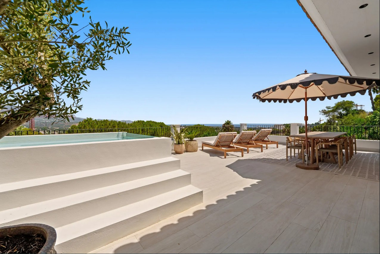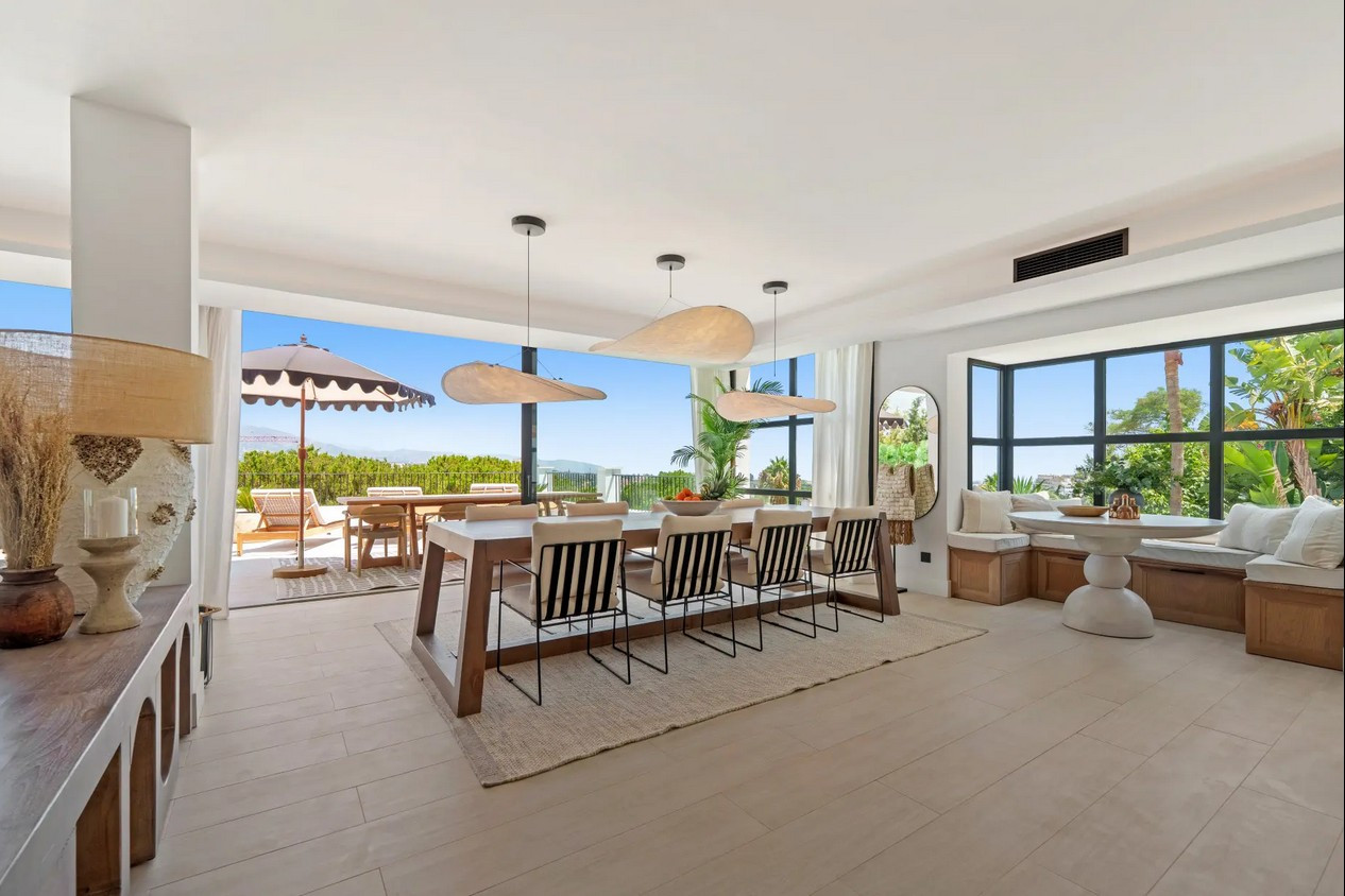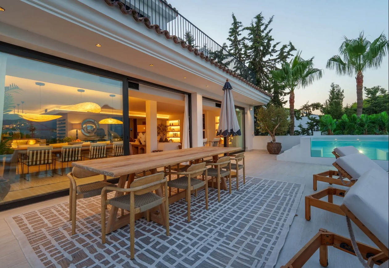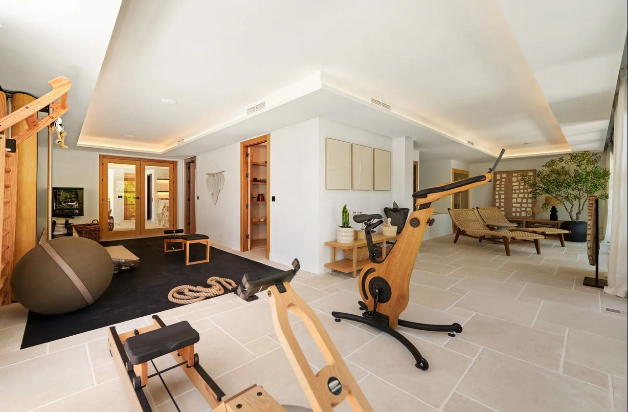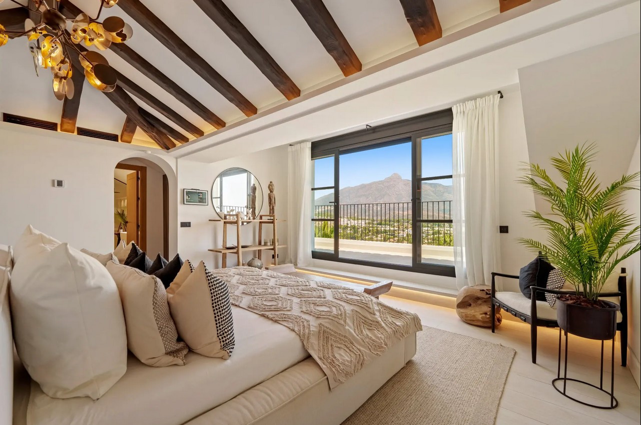 Вилла, Новая Андалусия – In the heart of the prestigious Nueva Andalucía, just minutes from world-class golf courses, Puerto Banús, and Marbella’s finest dining and shopping, stands as a masterpiece of modern Mediterranean living. This extraordinary five-level villa captures panoramic views of the Mediterranean Sea and the iconic La Concha mountain, blending timeless Andalusian charm with cutting-edge contemporary elegance. The property offers six luxurious bedrooms and seven impeccably designed bathrooms, each crafted with the highest-quality materials and finishes. Expansive open-plan living areas flow effortlessly onto sun-drenched terraces, creating a seamless connection between indoors and out. A state-of-the-art gourmet kitchen, flooded with natural light, serves as the perfect hub for both intimate family meals and grand entertaining. The interior design is a harmonious fusion of sophistication and warmth, combining neutral tones, natural textures, and bespoke furnishings to create a serene yet luxurious atmosphere. Handpicked décor pieces, artisanal lighting, and thoughtfully integrated shelving add character and charm, while large windows frame the captivating views and invite abundant daylight into every space. The result is a home that feels both contemporary and timeless, with a refined aesthetic that enhances its architectural beauty. Is designed for a lifestyle of wellness, leisure, and indulgence. A private home gym allows for daily workouts without leaving the comfort of home, while the exclusive wine bodega provides the perfect space to showcase and enjoy a curated collection. For entertainment, the villa boasts a home cinema and an additional leisure room, ideal for hosting gatherings with family and friends. The outdoor spaces are nothing short of spectacular. Beautifully landscaped gardens surround a private swimming pool, complemented by a sunken lounge with ambient lighting and multiple shaded dining and relaxation areas. From sunrise breakfasts overlooking the sea to evening cocktails framed by mountain silhouettes, every moment here is elevated by the breathtaking surroundings. Completing this exceptional property is a spacious private garage with room for multiple vehicles, along with bespoke interior details such as artisan lighting, elegant flooring, and carefully curated décor throughout. Is more than just a residence—it is a statement of prestige, comfort, and refined lifestyle on the Costa del Sol.