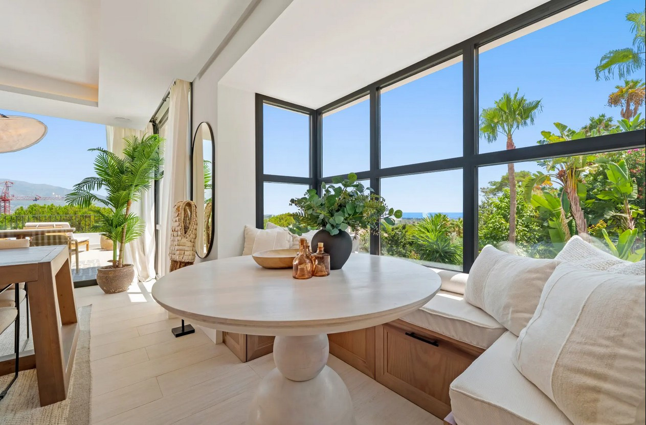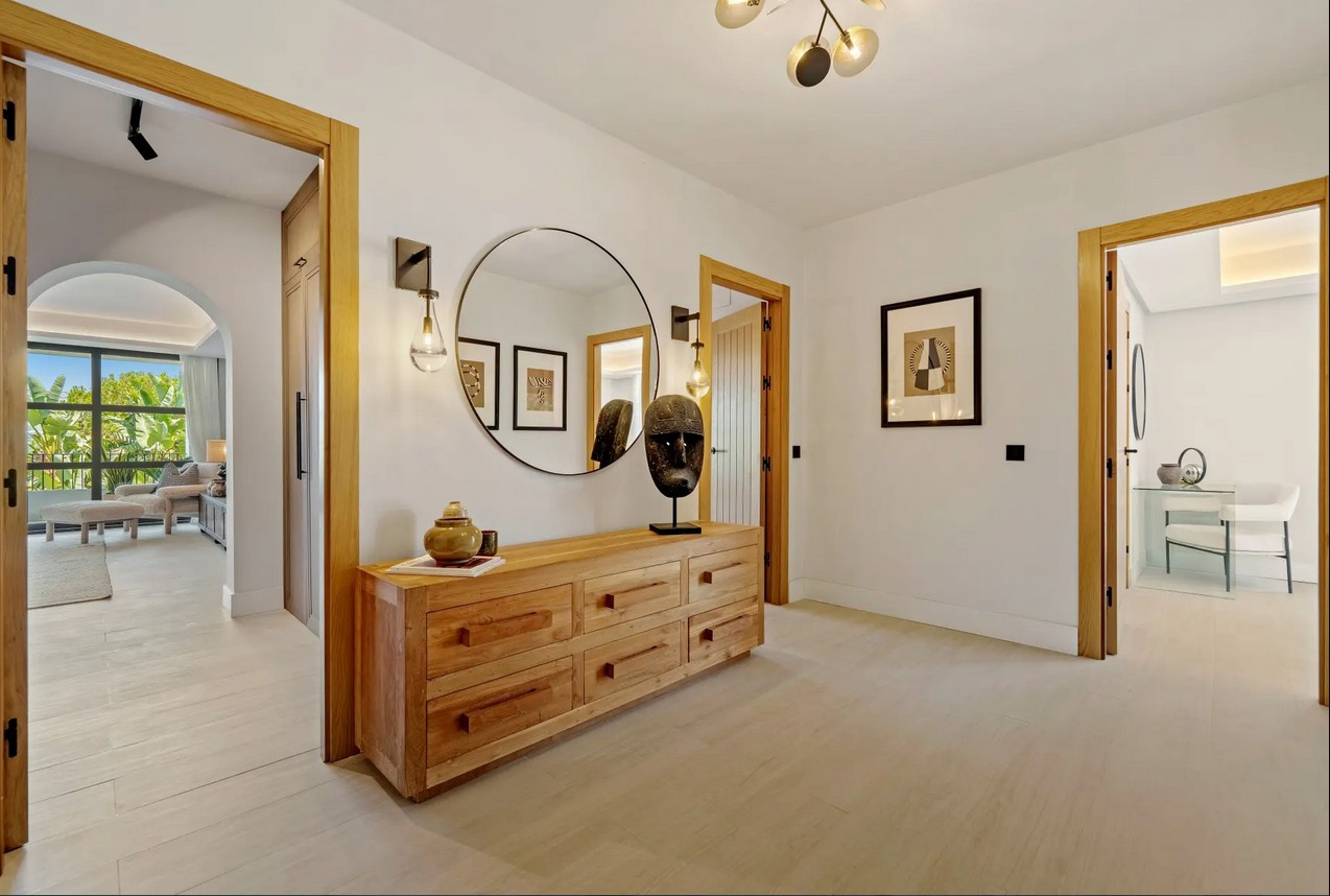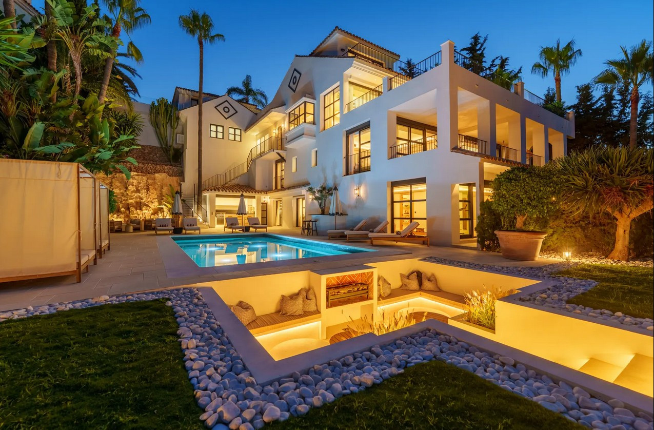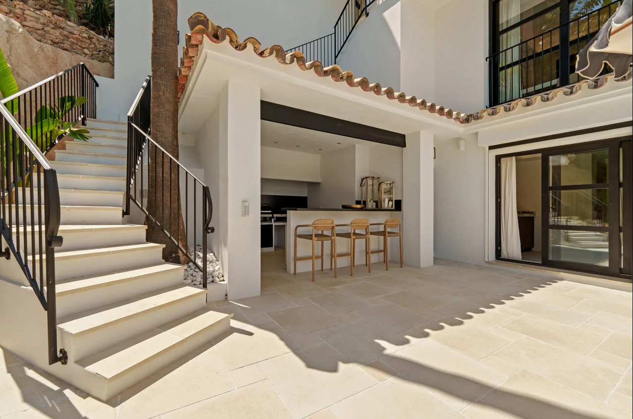 Вилла, Новая Андалусия – In the heart of the prestigious Nueva Andalucía, just minutes from world-class golf courses, Puerto Banús, and Marbella’s finest dining and shopping, stands as a masterpiece of modern Mediterranean living. This extraordinary five-level villa captures panoramic views of the Mediterranean Sea and the iconic La Concha mountain, blending timeless Andalusian charm with cutting-edge contemporary elegance. The property offers six luxurious bedrooms and seven impeccably designed bathrooms, each crafted with the highest-quality materials and finishes. Expansive open-plan living areas flow effortlessly onto sun-drenched terraces, creating a seamless connection between indoors and out. A state-of-the-art gourmet kitchen, flooded with natural light, serves as the perfect hub for both intimate family meals and grand entertaining. The interior design is a harmonious fusion of sophistication and warmth, combining neutral tones, natural textures, and bespoke furnishings to create a serene yet luxurious atmosphere. Handpicked décor pieces, artisanal lighting, and thoughtfully integrated shelving add character and charm, while large windows frame the captivating views and invite abundant daylight into every space. The result is a home that feels both contemporary and timeless, with a refined aesthetic that enhances its architectural beauty. Is designed for a lifestyle of wellness, leisure, and indulgence. A private home gym allows for daily workouts without leaving the comfort of home, while the exclusive wine bodega provides the perfect space to showcase and enjoy a curated collection. For entertainment, the villa boasts a home cinema and an additional leisure room, ideal for hosting gatherings with family and friends. The outdoor spaces are nothing short of spectacular. Beautifully landscaped gardens surround a private swimming pool, complemented by a sunken lounge with ambient lighting and multiple shaded dining and relaxation areas. From sunrise breakfasts overlooking the sea to evening cocktails framed by mountain silhouettes, every moment here is elevated by the breathtaking surroundings. Completing this exceptional property is a spacious private garage with room for multiple vehicles, along with bespoke interior details such as artisan lighting, elegant flooring, and carefully curated décor throughout. Is more than just a residence—it is a statement of prestige, comfort, and refined lifestyle on the Costa del Sol.