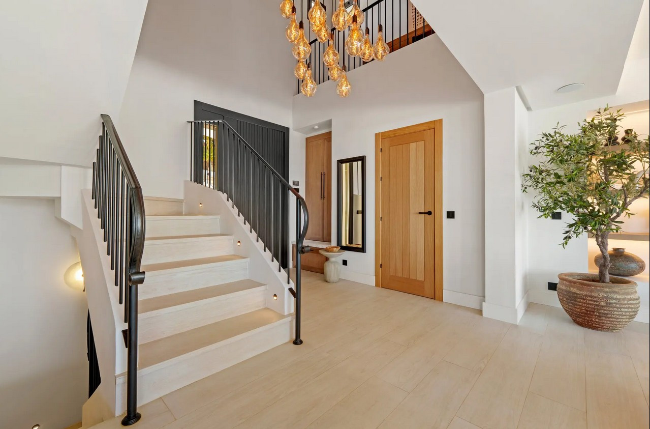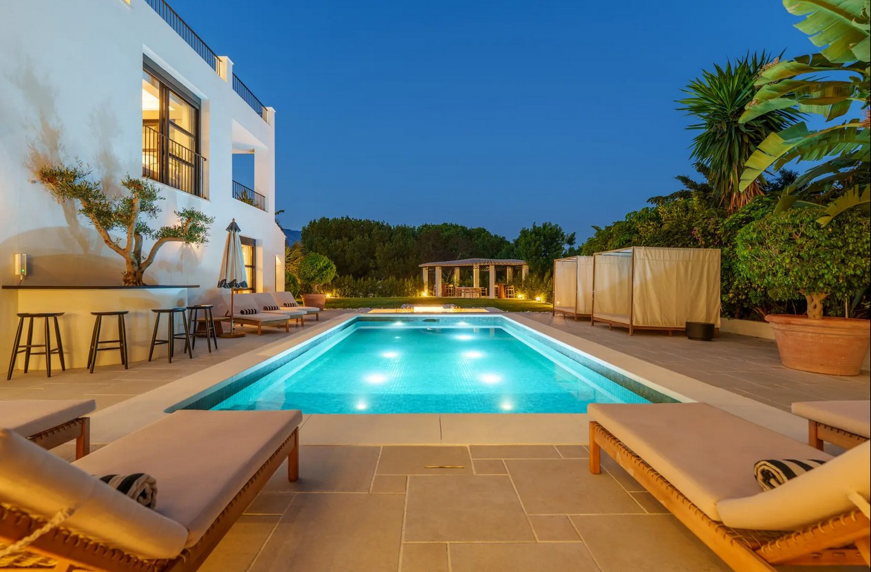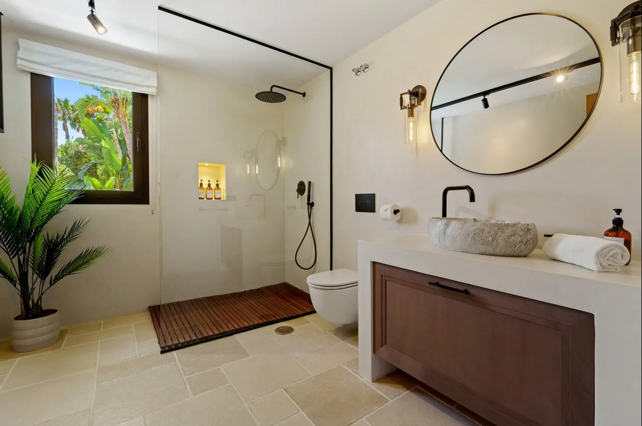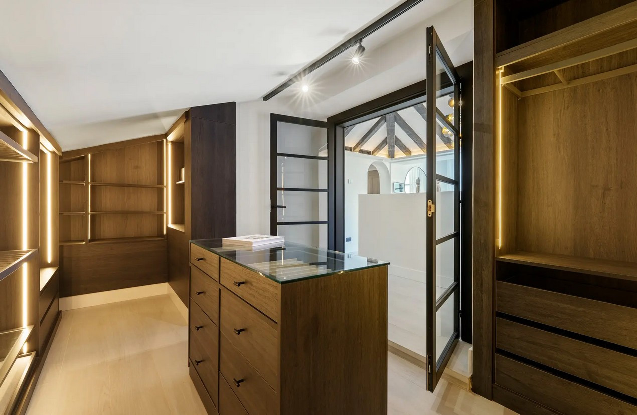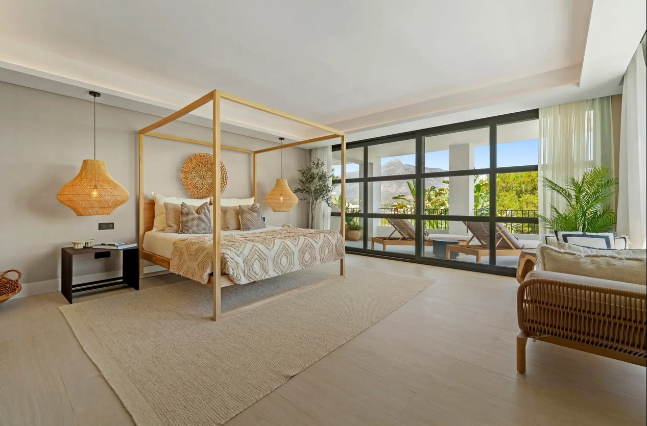 Вилла, Новая Андалусия – In the heart of the prestigious Nueva Andalucía, just minutes from world-class golf courses, Puerto Banús, and Marbella’s finest dining and shopping, stands as a masterpiece of modern Mediterranean living. This extraordinary five-level villa captures panoramic views of the Mediterranean Sea and the iconic La Concha mountain, blending timeless Andalusian charm with cutting-edge contemporary elegance. The property offers six luxurious bedrooms and seven impeccably designed bathrooms, each crafted with the highest-quality materials and finishes. Expansive open-plan living areas flow effortlessly onto sun-drenched terraces, creating a seamless connection between indoors and out. A state-of-the-art gourmet kitchen, flooded with natural light, serves as the perfect hub for both intimate family meals and grand entertaining. The interior design is a harmonious fusion of sophistication and warmth, combining neutral tones, natural textures, and bespoke furnishings to create a serene yet luxurious atmosphere. Handpicked décor pieces, artisanal lighting, and thoughtfully integrated shelving add character and charm, while large windows frame the captivating views and invite abundant daylight into every space. The result is a home that feels both contemporary and timeless, with a refined aesthetic that enhances its architectural beauty. Is designed for a lifestyle of wellness, leisure, and indulgence. A private home gym allows for daily workouts without leaving the comfort of home, while the exclusive wine bodega provides the perfect space to showcase and enjoy a curated collection. For entertainment, the villa boasts a home cinema and an additional leisure room, ideal for hosting gatherings with family and friends. The outdoor spaces are nothing short of spectacular. Beautifully landscaped gardens surround a private swimming pool, complemented by a sunken lounge with ambient lighting and multiple shaded dining and relaxation areas. From sunrise breakfasts overlooking the sea to evening cocktails framed by mountain silhouettes, every moment here is elevated by the breathtaking surroundings. Completing this exceptional property is a spacious private garage with room for multiple vehicles, along with bespoke interior details such as artisan lighting, elegant flooring, and carefully curated décor throughout. Is more than just a residence—it is a statement of prestige, comfort, and refined lifestyle on the Costa del Sol.